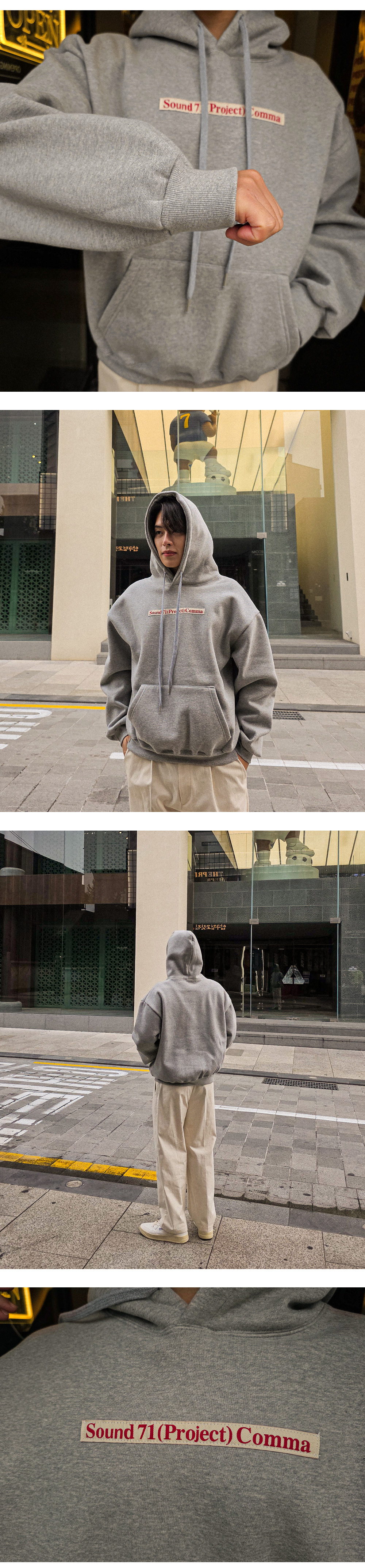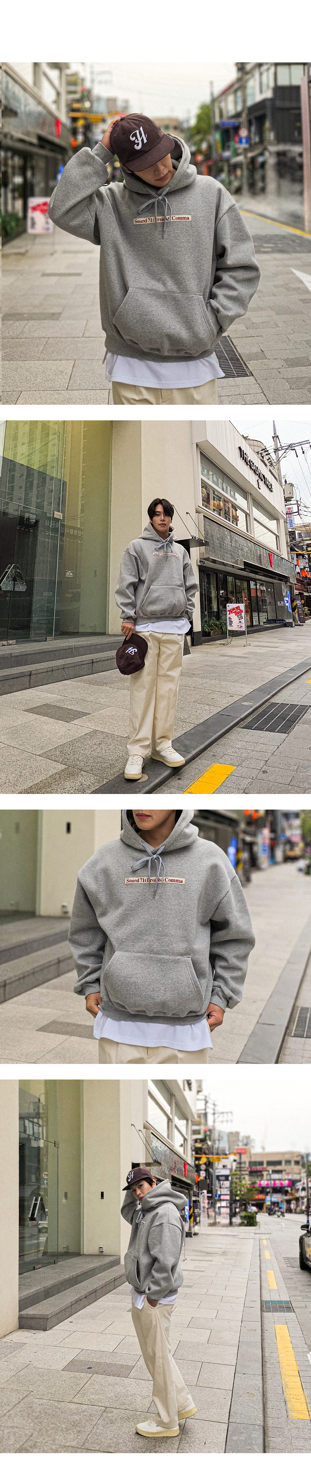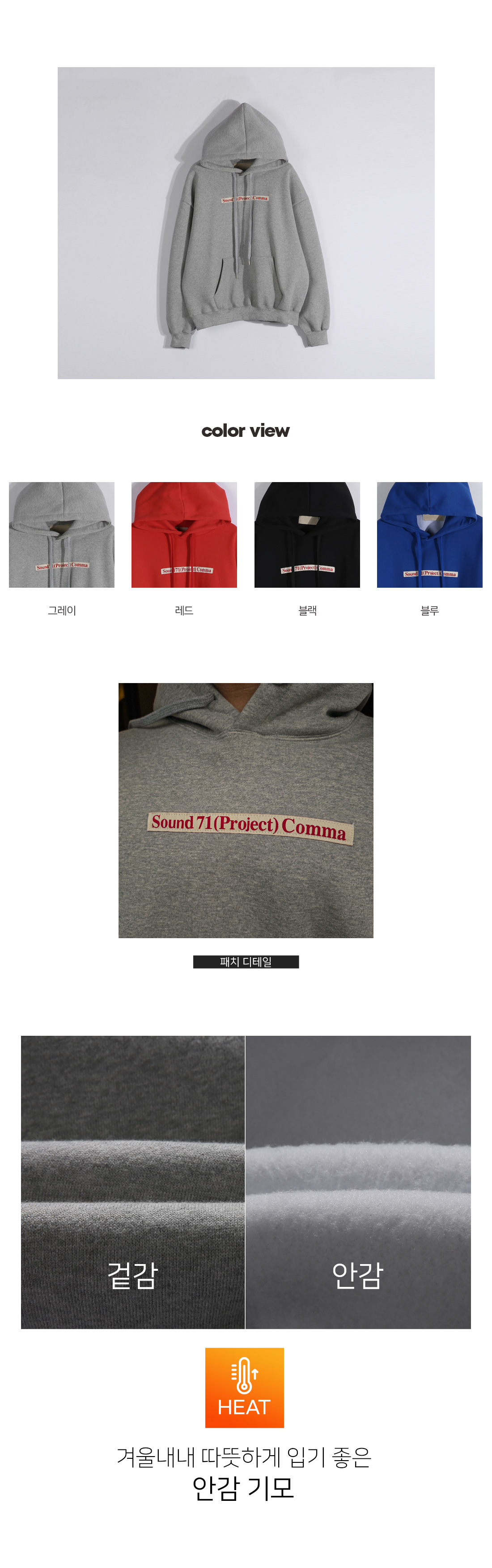 레터링 패치로 포인트를 준 기모 후드 티셔츠입니다.