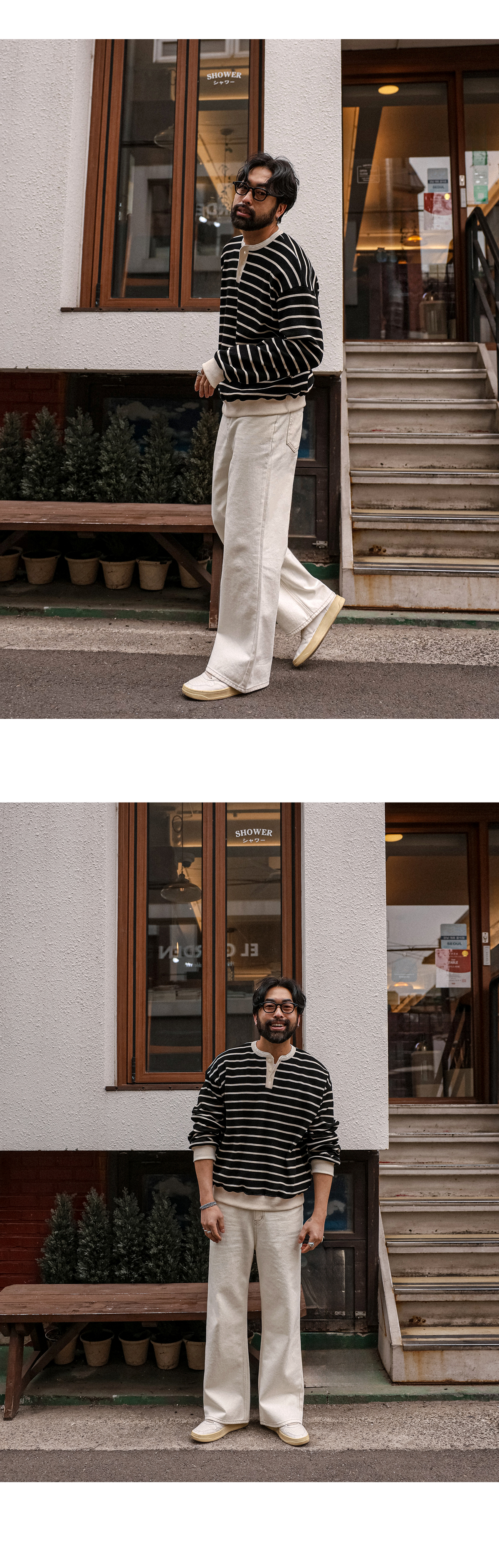 두고두고 활용하기 좋은 면팬츠 입니다. 지금부터 가을까지도 활용하기 좋은 두께감은 물론 기본 디자인에 스티치 포인트를 더해주었고 어디에도 매치하기 편한 크림 컬러로 데이트룩,휴양지룩,캐주얼룩등 활용하기 좋은 아이템이며 핏 또한 세미와이드핏으로 좀더 여유있는 피팅감을 느끼실수 있습니다. SIZE S,M,L-XL,2XL,3XL,4XL-5XL 모델착용 [KIHOON]색상 : 크림 / 사이즈 : M,L-XL