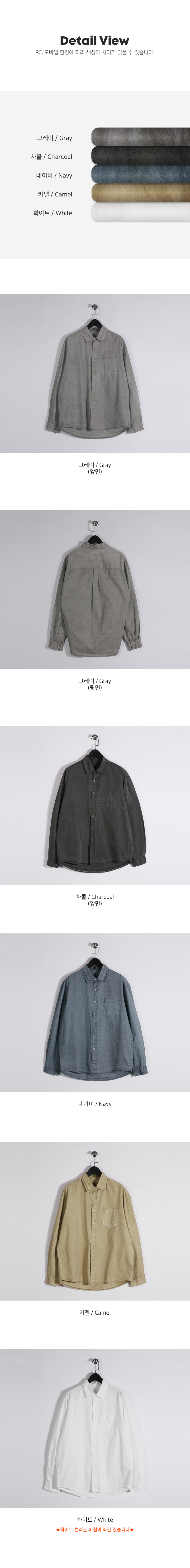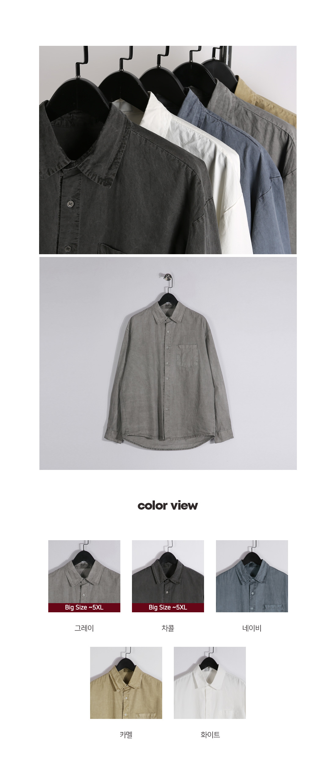 피그먼트 워싱으로 제작된 셔츠입니다. 살짝 얇은듯 얇지않는 두께감으로 제작되었고 피그먼트 워싱으로 일반 셔츠와는 다른 빈티지한 느낌을 주고 포켓으로 수납활용이 가능하며 루즈한 핏으로 제작되어 안에 티셔츠와 레이어드해 셔츠 자켓으로도 활용하기 좋은 아이템입니다. SIZE L-XL,2XL-3XL,4XL-5XL 모델착용 [KIHOON]색상 : 그레이 / 사이즈 : 2XL-3XL ![]() ![]() ![]() ![]() ![]() ![]() ![]() ![]() ![]()