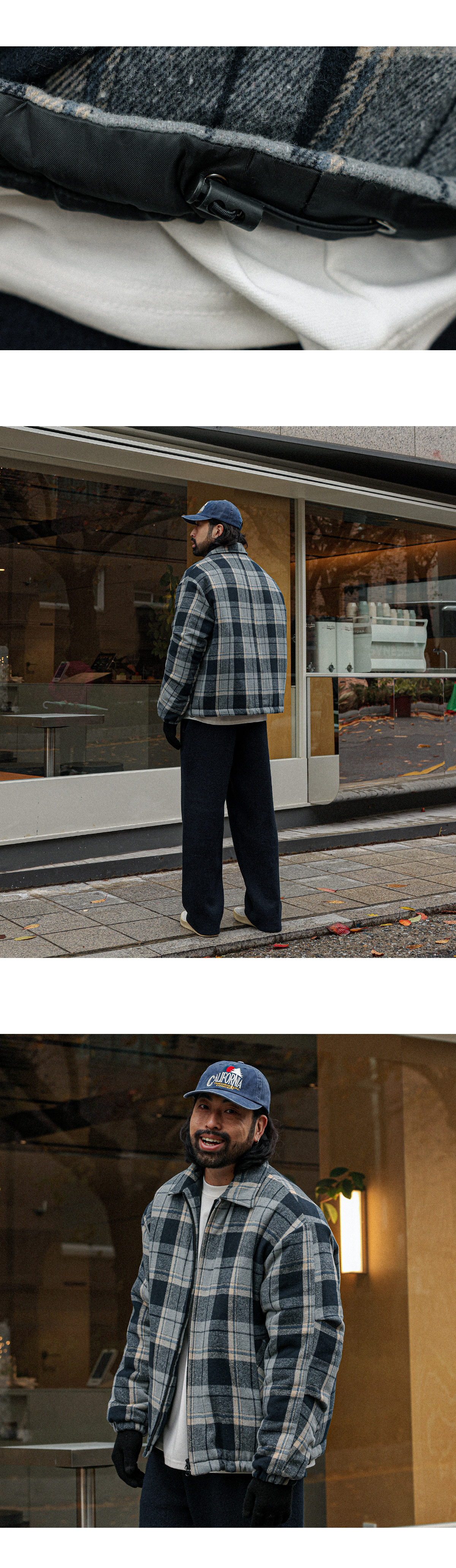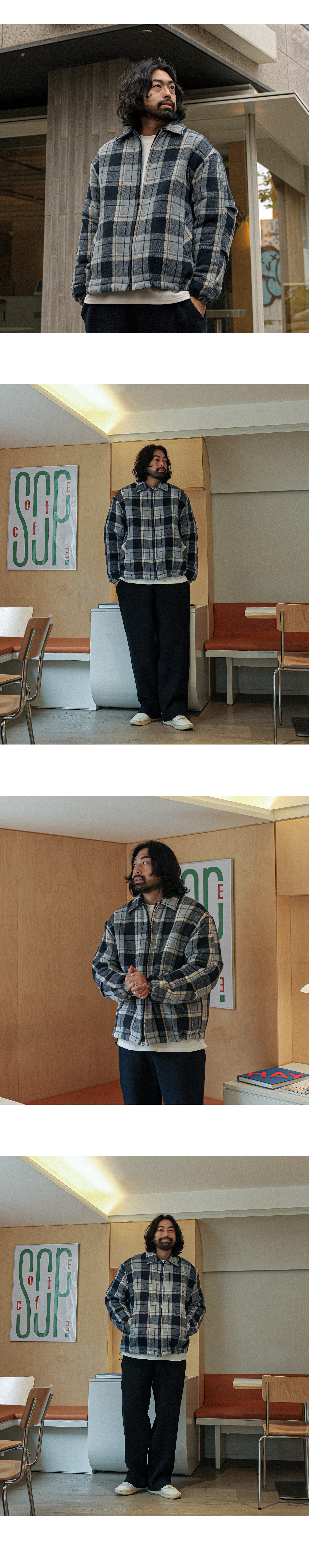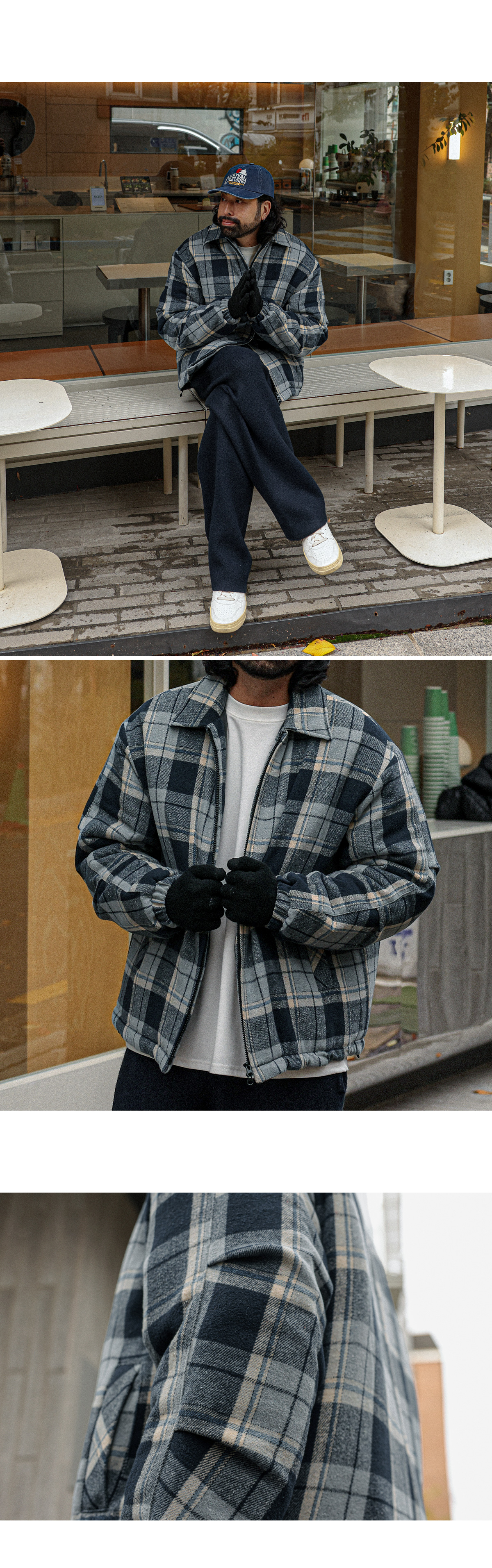 포인트 주기 좋은 체크 패딩입니다. 겨울 내내 착용하기 좋은 두께감은 물론 체크 원단으로 제작되어 유니크한 분위기를 주고 데님팬츠, 면팬츠, 트레이닝 팬츠 등 다양한 하의와 매치하여 데일리룩, 캐주얼룩, 꾸안꾸룩 등 여러 연출이 가능하고 핏 또한 루즈핏으로 여유있는 착용감을 느끼실 수 있습니다. SIZE FREE 모델착용 [KIHOON]색상 : 네이비톤 / 사이즈 : FREE ![]() ![]() ![]() ![]() ![]() ![]() ![]() ![]()