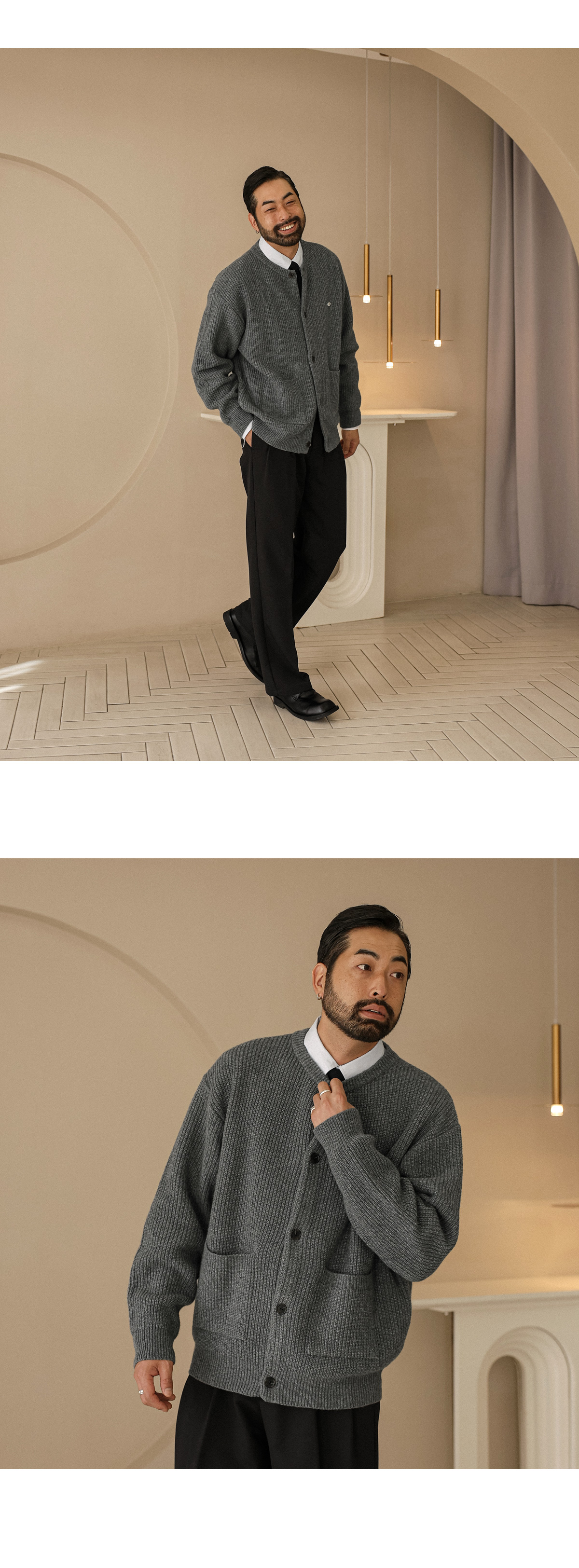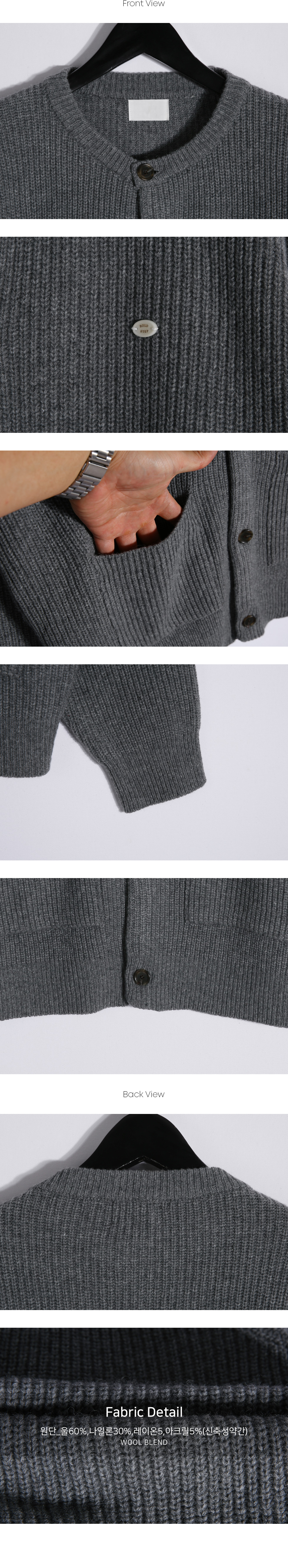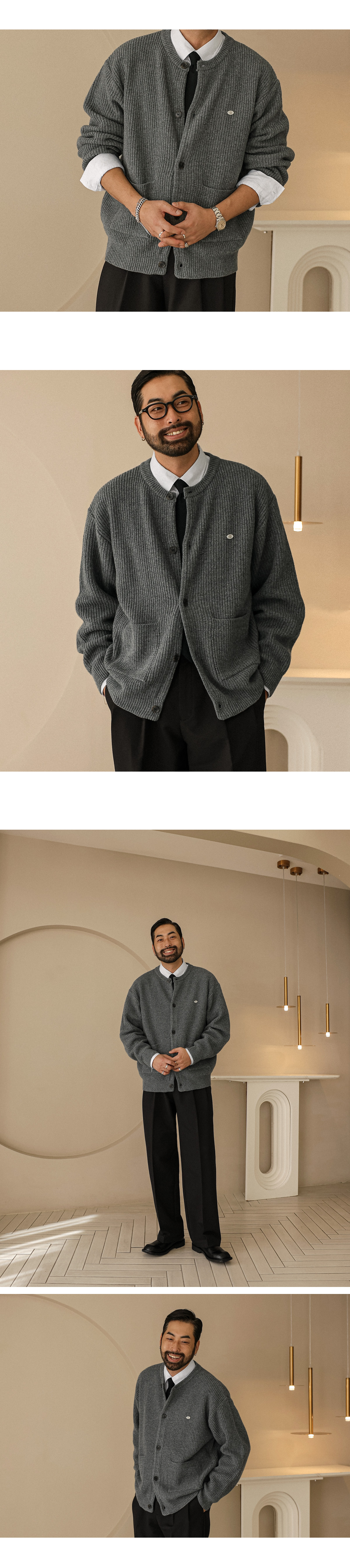 부드러운 조직감이 돋보이는 고급 니트 가디건입니다. 적당한 두께감으로 단독 착용은 물론, 아우터 안 레이어드용으로도 활용하기 좋습니다. 여유감 있는 세미 오버핏과 니트 특유의 신축성 덕분에 착용 시 자연스럽게 흐르는 실루엣이 매력적입니다. 전면에는 실용적인 포켓 디테일이 자리해 단조로움을 덜어내며, 버튼 포인트로 작은 디테일까지 신경쓴 디자인입니다. 다양한 하의와 손쉽게 매치되어 데일리 캐주얼룩은 물론, 셔츠와 함께 매치시엔 단정하고 세련된 스타일링도 가능합니다. SIZE FREE 모델착용 [KIHOON]색상 : 그레이 / 사이즈 : FREE ![]() ![]() ![]() ![]() ![]() ![]() ![]() ![]()
