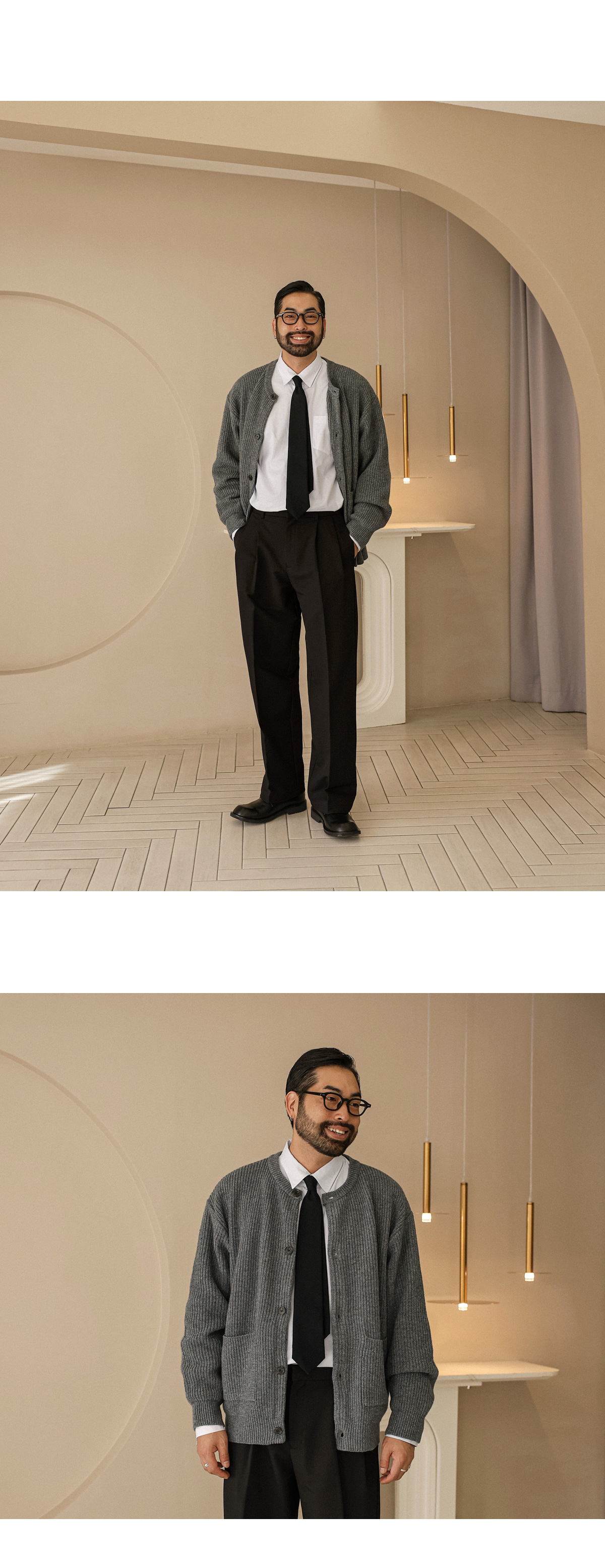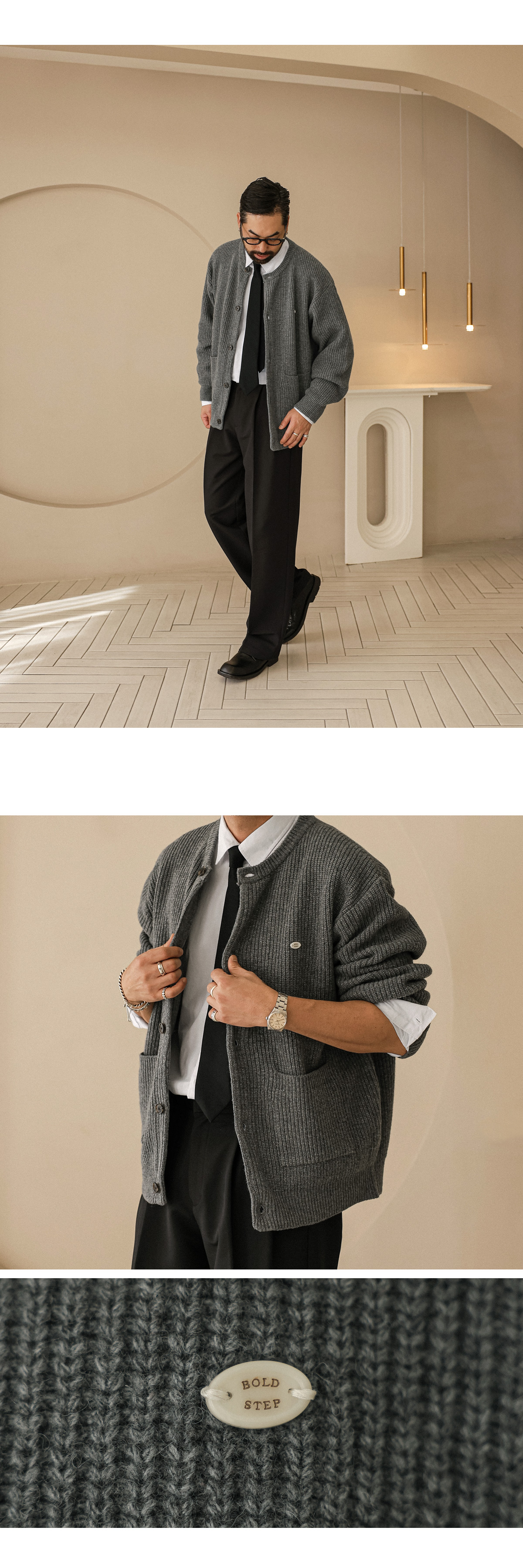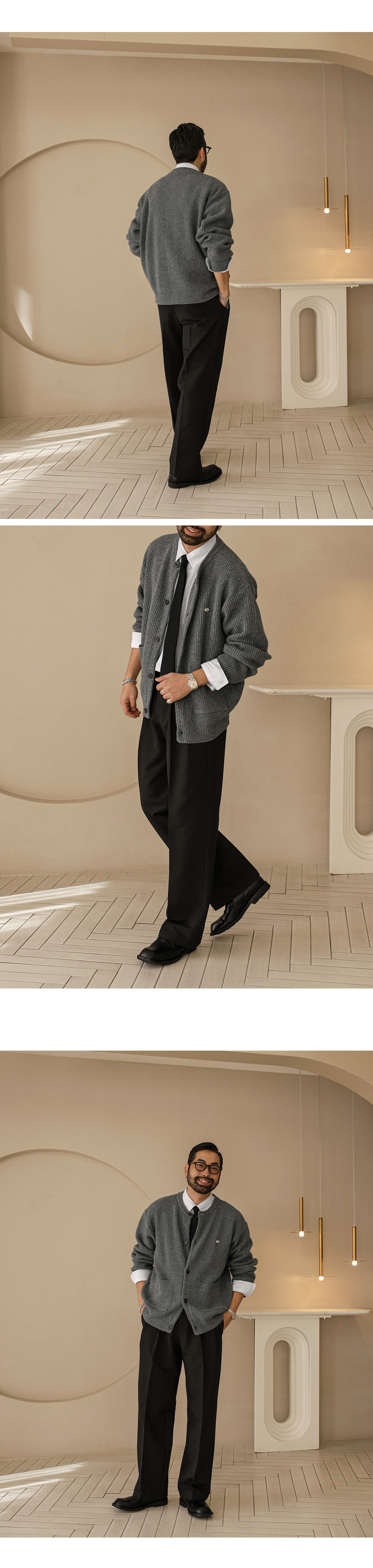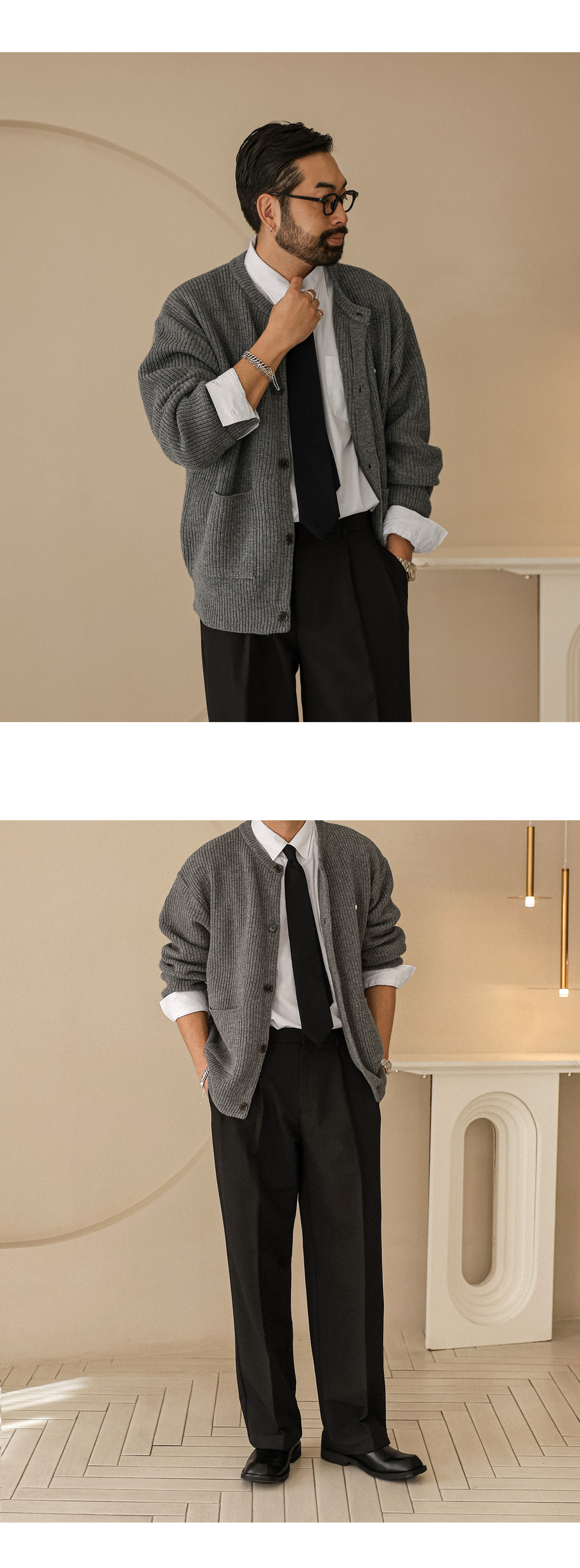 부드러운 조직감이 돋보이는 고급 니트 가디건입니다. 적당한 두께감으로 단독 착용은 물론, 아우터 안 레이어드용으로도 활용하기 좋습니다. 여유감 있는 세미 오버핏과 니트 특유의 신축성 덕분에 착용 시 자연스럽게 흐르는 실루엣이 매력적입니다. 전면에는 실용적인 포켓 디테일이 자리해 단조로움을 덜어내며, 버튼 포인트로 작은 디테일까지 신경쓴 디자인입니다. 다양한 하의와 손쉽게 매치되어 데일리 캐주얼룩은 물론, 셔츠와 함께 매치시엔 단정하고 세련된 스타일링도 가능합니다. SIZE FREE 모델착용 [KIHOON]색상 : 그레이 / 사이즈 : FREE ![]() ![]() ![]() ![]() ![]() ![]() ![]() ![]()