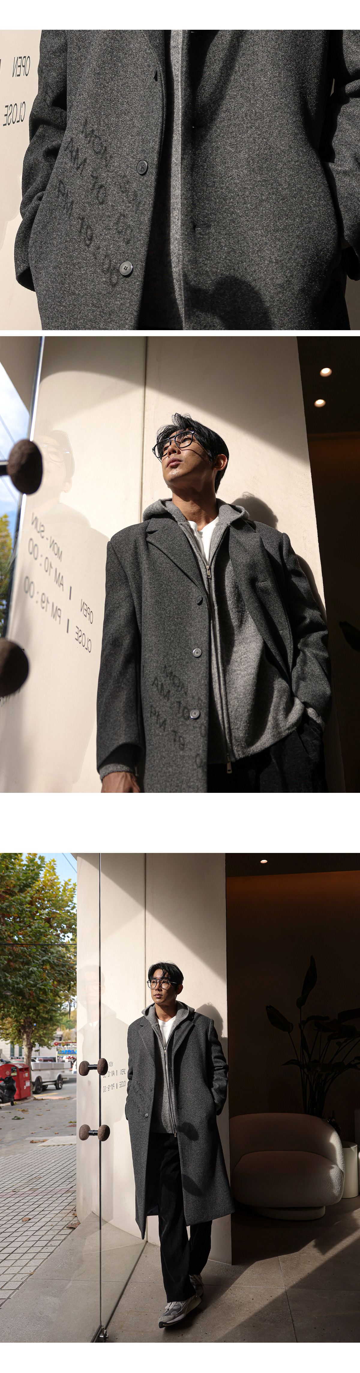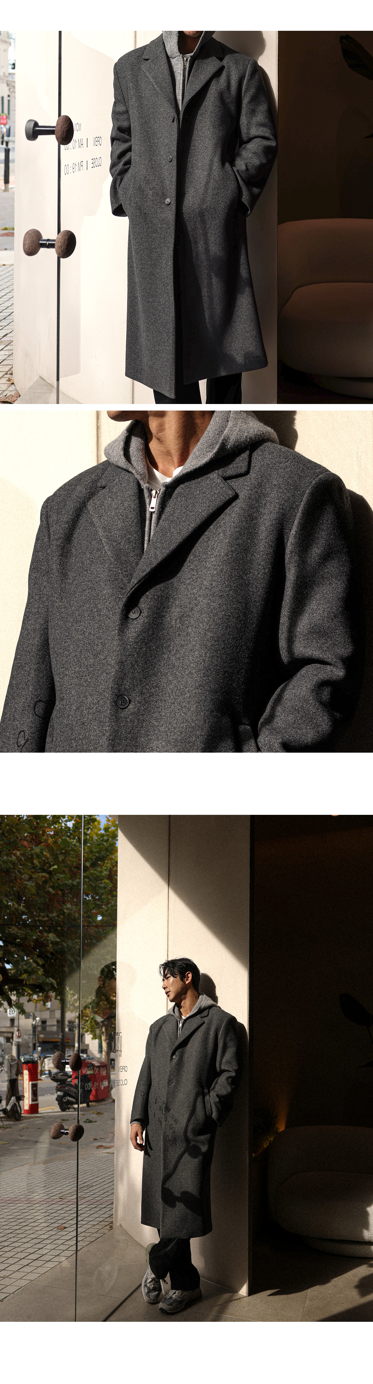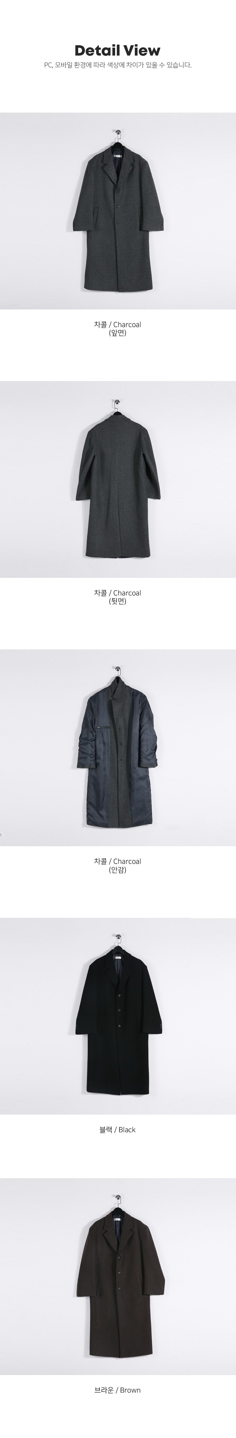 가성비가 좋은 싱글코트입니다. 겨울 내내 활 용하기 좋은 두께감은 물론 베이직한 컬러와 디자인으로 제작되어 두고두고 활용하기 좋은 아이템으로 고객님들께 추천드리며 슬랙스, 데님팬츠, 트레이닝 팬츠등 다양한 하의와 매치하여 데일리룩, 출근룩, 남친룩 등 여러 연출이 가능하고 핏 또한 루즈핏으로 여유있는 착용감을 느끼실 수 있습니다. SIZE FREE 모델착용 [JUNBEOM]색상 : 차콜 / 사이즈 : FREE ![]() ![]() ![]() ![]() ![]() ![]() ![]() ![]()