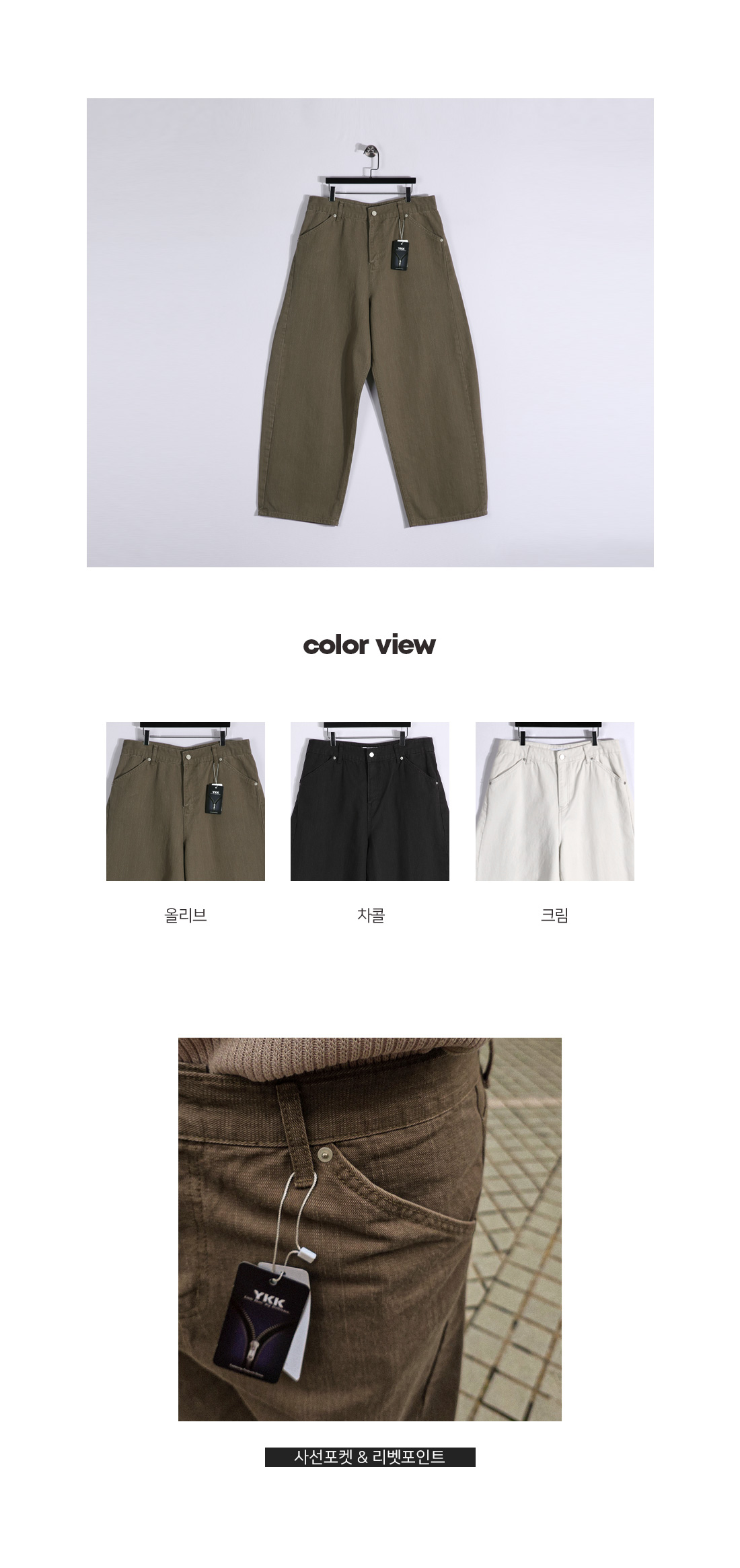기본 디자인에 멋을 더한 커브드 팬츠입니다. 일반 포켓이 아닌 사선 포켓과 리벳 포인트 디테일로 실용성과 스타일을 동시에 잡았습니다. 세미 와이드핏의 여유로운 커브드 스타일로 편안하게 착용 가능하며, 사이드 절개 포인트와 은은한 워싱감으로 심플한 무지 팬츠임에도 자연스럽게 포인트를 더했습니다. 데일리 코디부터 스타일리시한 캐주얼 룩까지 다양하게 연출하기 좋은 아이템입니다. SIZE S,M,L-XL 모델착용 [YOOJUN]색상 : 올리브 / 사이즈 : M