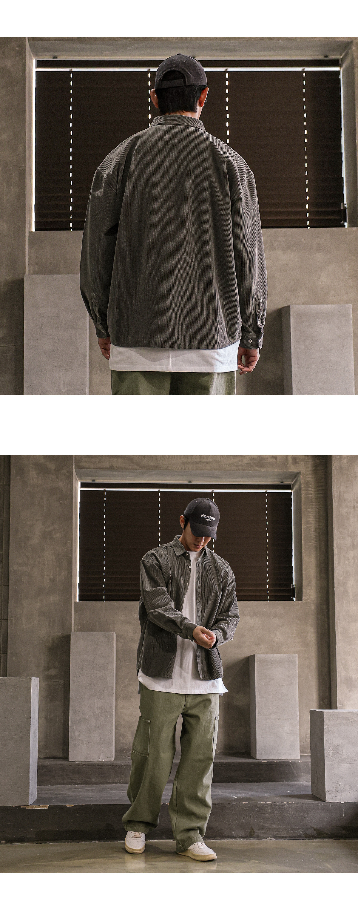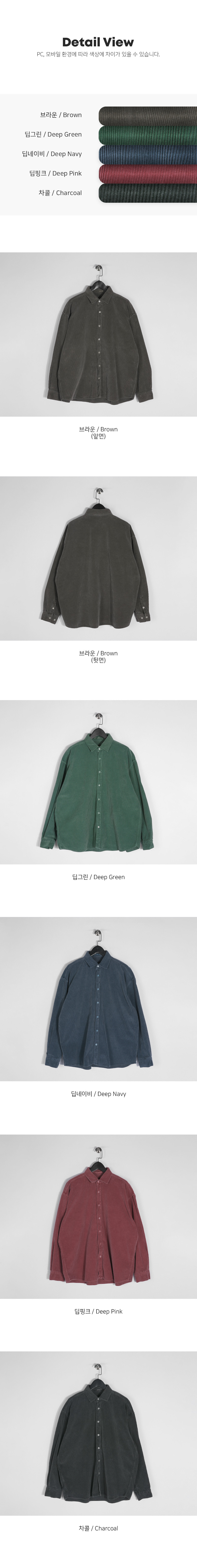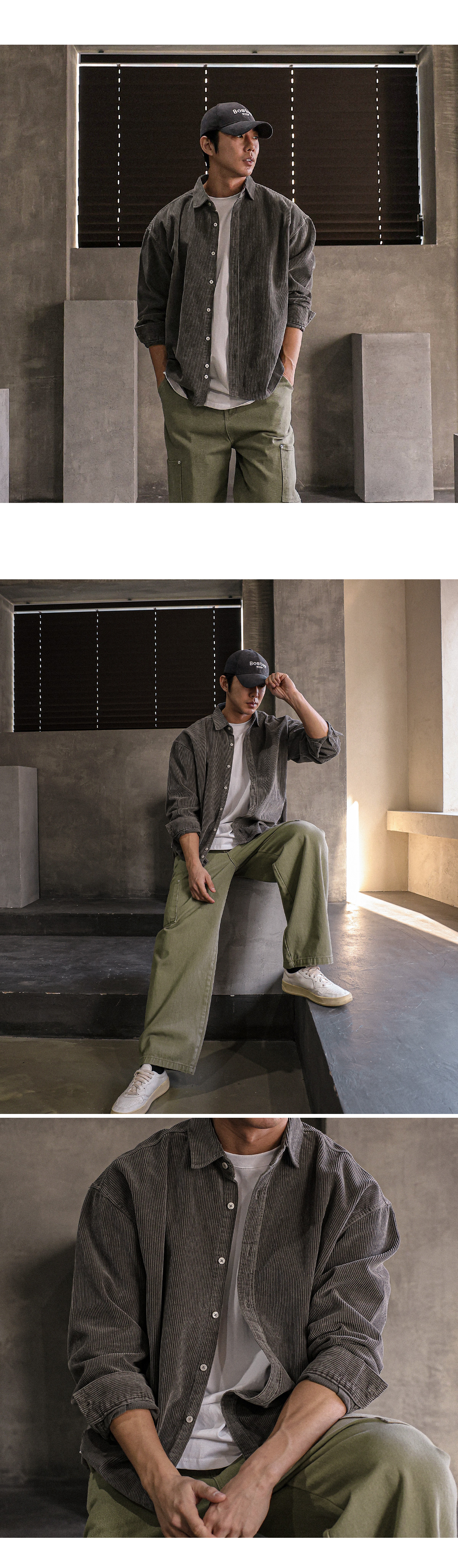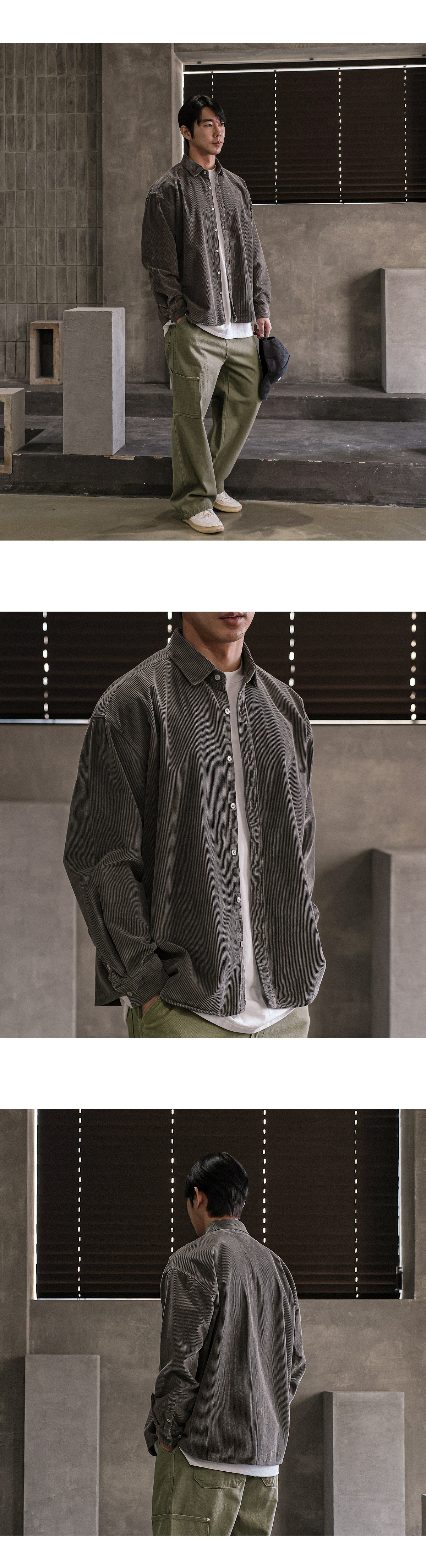 빈티지한 분위기의 골덴 셔츠입니다. 가을부터 겨울 초까지 착용하기 좋은 두께감은 물론 은은한 피그먼트 워싱으로 제작되어 빈티지하면서 트렌디한 연출이 가능하고 카고팬츠, 파라슈트팬츠, 트레이닝 팬츠등 다양한 하의와 매치하여 데일리룩, 데이트룩, 스트릿룩 등 여러 연출이 가능하고 핏 또한 루즈핏으로 여유있는 착용감을 느끼실 수 있습니다. SIZE FREE 모델착용 [JUNBEOM]색상 : 브라운 / 사이즈 : FREE ![]() ![]() ![]() ![]() ![]() ![]() ![]() ![]() ![]()