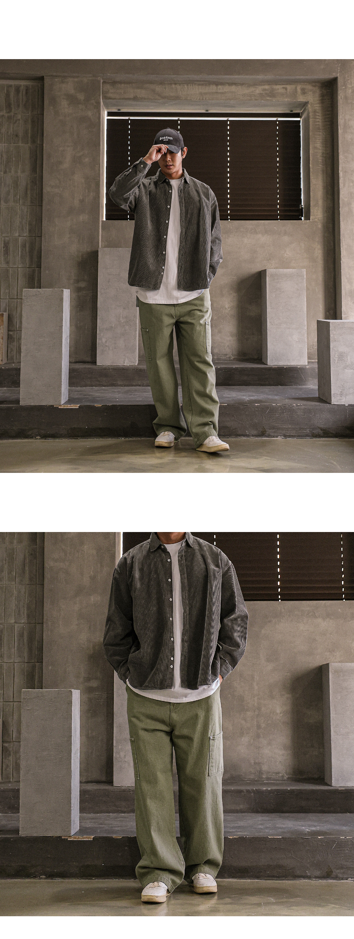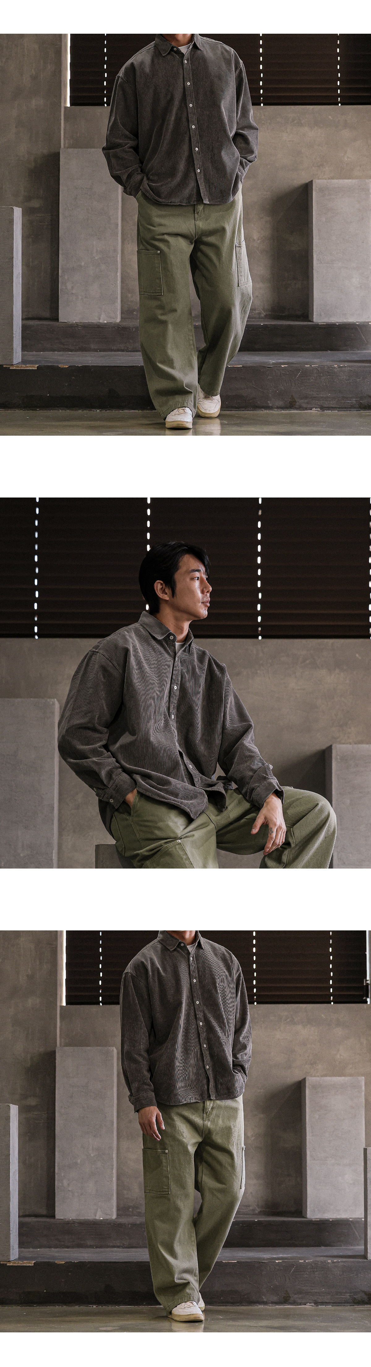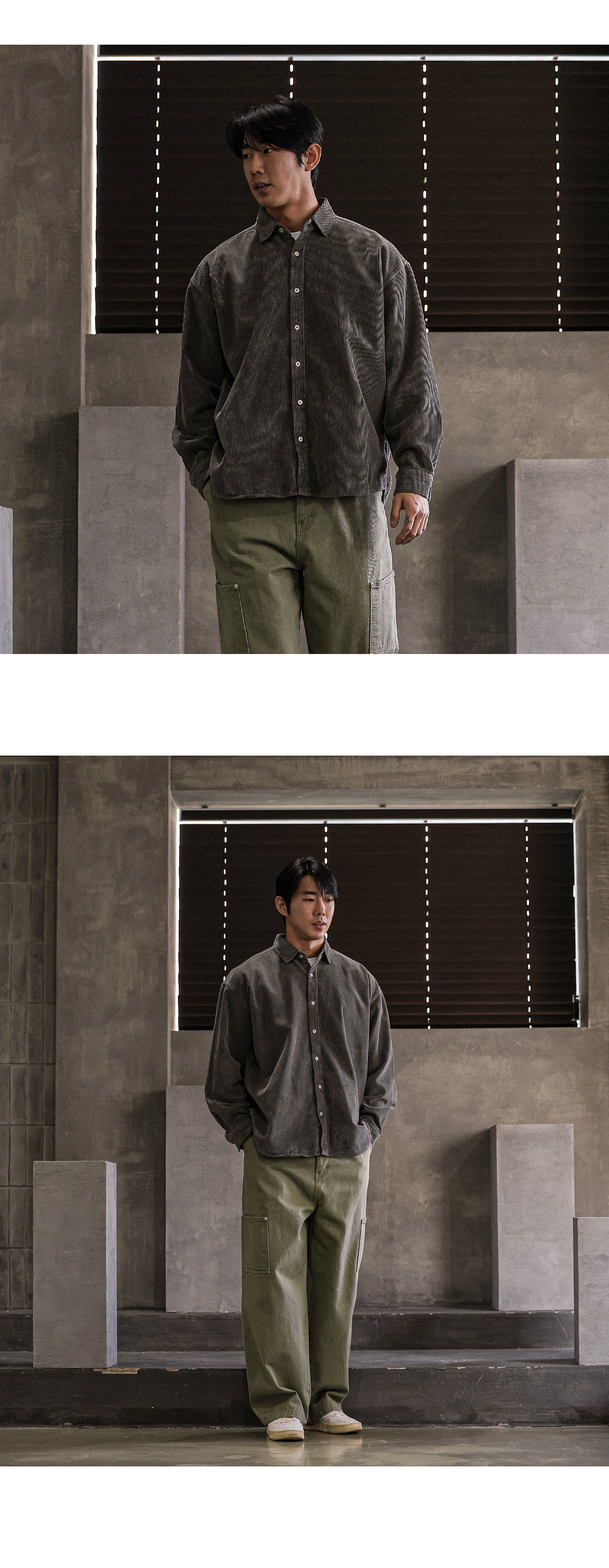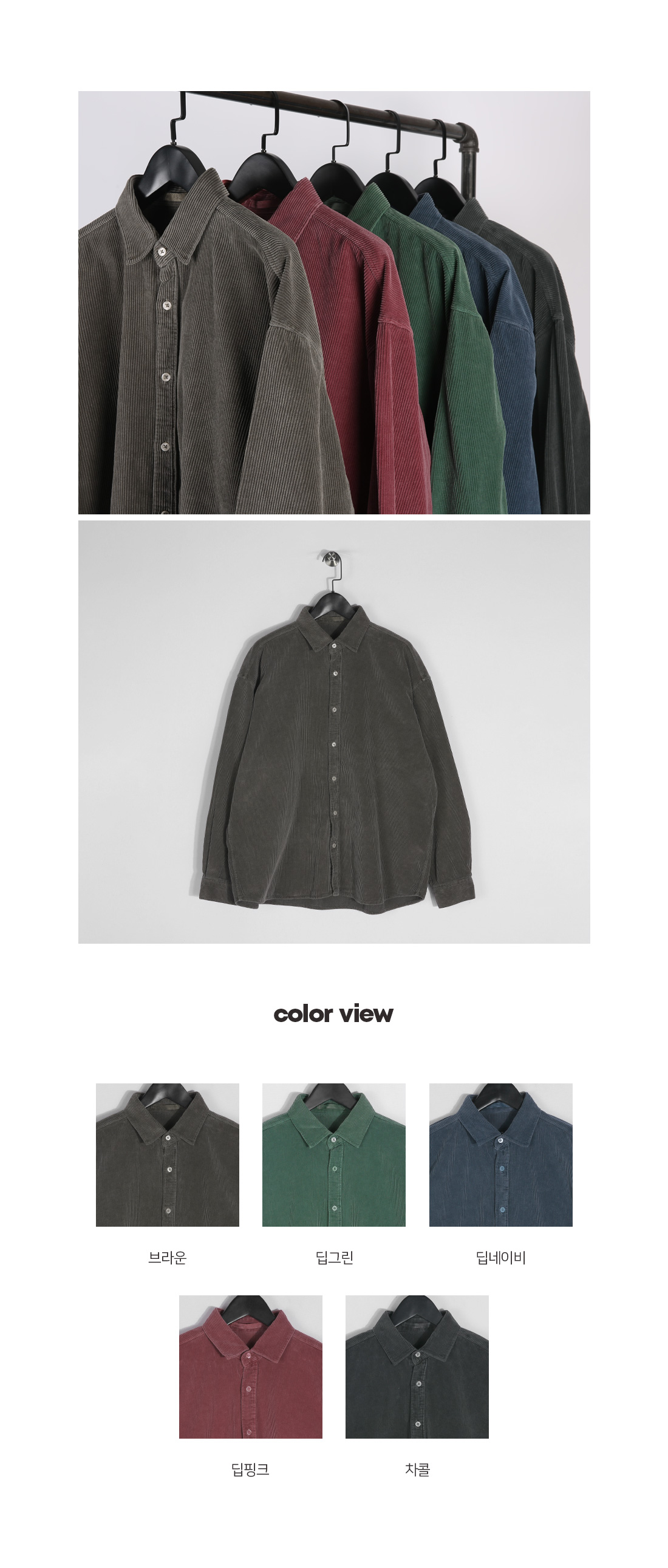 빈티지한 분위기의 골덴 셔츠입니다. 가을부터 겨울 초까지 착용하기 좋은 두께감은 물론 은은한 피그먼트 워싱으로 제작되어 빈티지하면서 트렌디한 연출이 가능하고 카고팬츠, 파라슈트팬츠, 트레이닝 팬츠등 다양한 하의와 매치하여 데일리룩, 데이트룩, 스트릿룩 등 여러 연출이 가능하고 핏 또한 루즈핏으로 여유있는 착용감을 느끼실 수 있습니다. SIZE FREE 모델착용 [JUNBEOM]색상 : 브라운 / 사이즈 : FREE ![]() ![]() ![]() ![]() ![]() ![]() ![]() ![]() ![]()