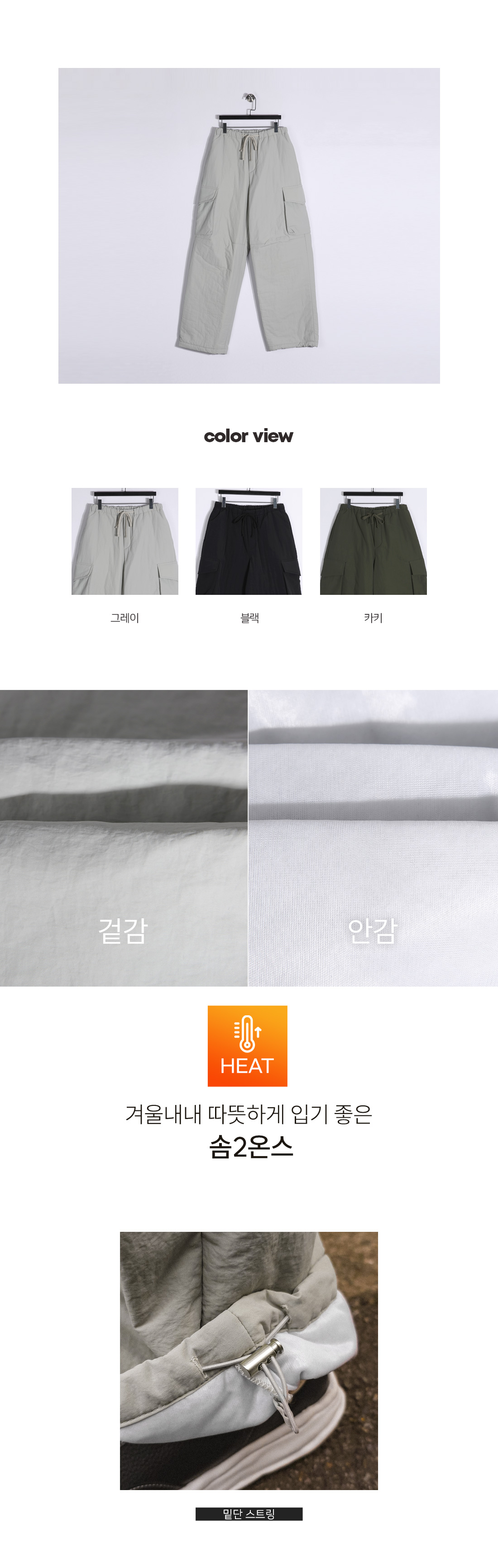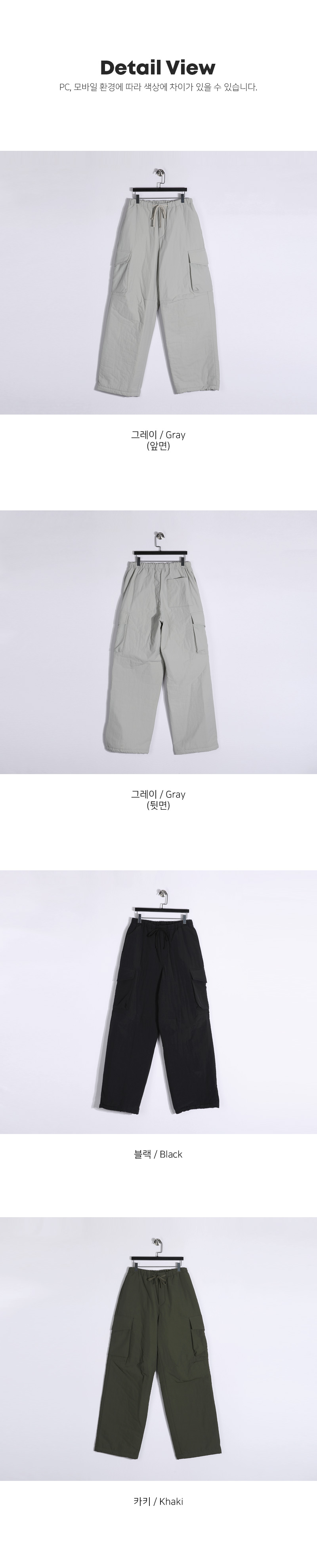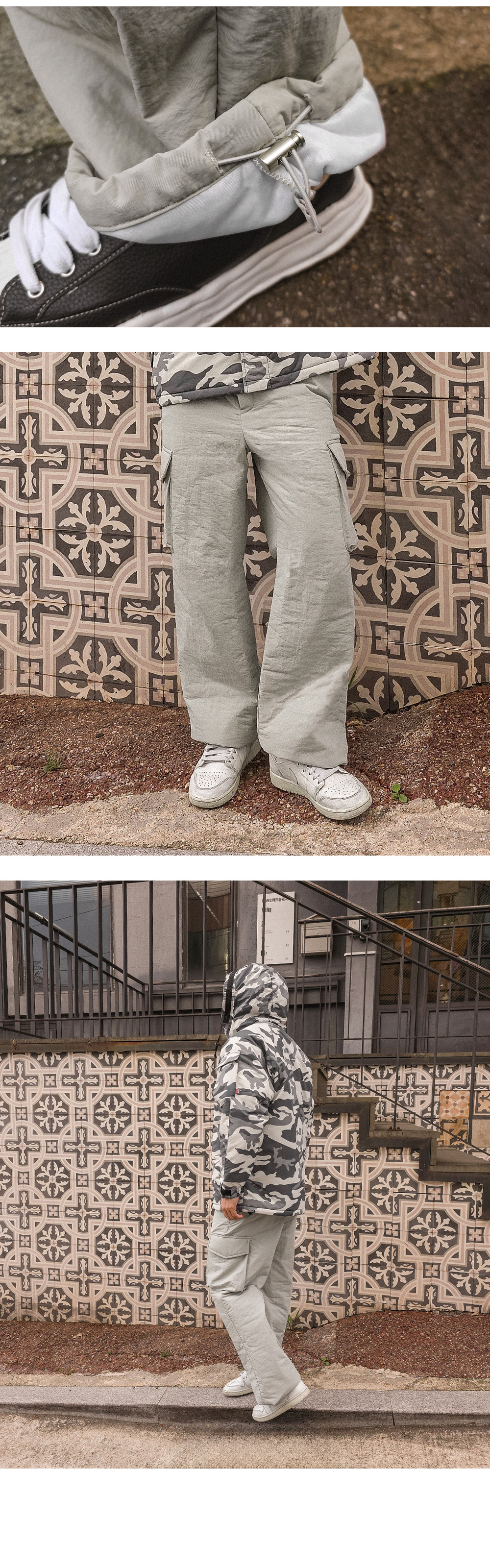 한겨울에도 따뜻함을 지켜주는 패딩 팬츠입니다. 2온스 충전재로 보온성을 유지해주고 가벼우면서도 허리 밴딩으로 장시간 착용에도 편안한 착용감을 느끼실수 있습니다. 밑단 스트링 디테일로 조거 스타일로도 연출이 가능합니다. 또한, 카고 포켓 디테일이 더해져 수납력은 물론 일반 패딩 팬츠와는 다른 트렌디한 디자인으로 스트릿룩, 캐주얼룩 어디에나 손쉽게 매치 가능한 팬츠입니다. SIZE FREE 모델착용 [JUNBEOM]색상 : 그레이 / 사이즈 : FREE