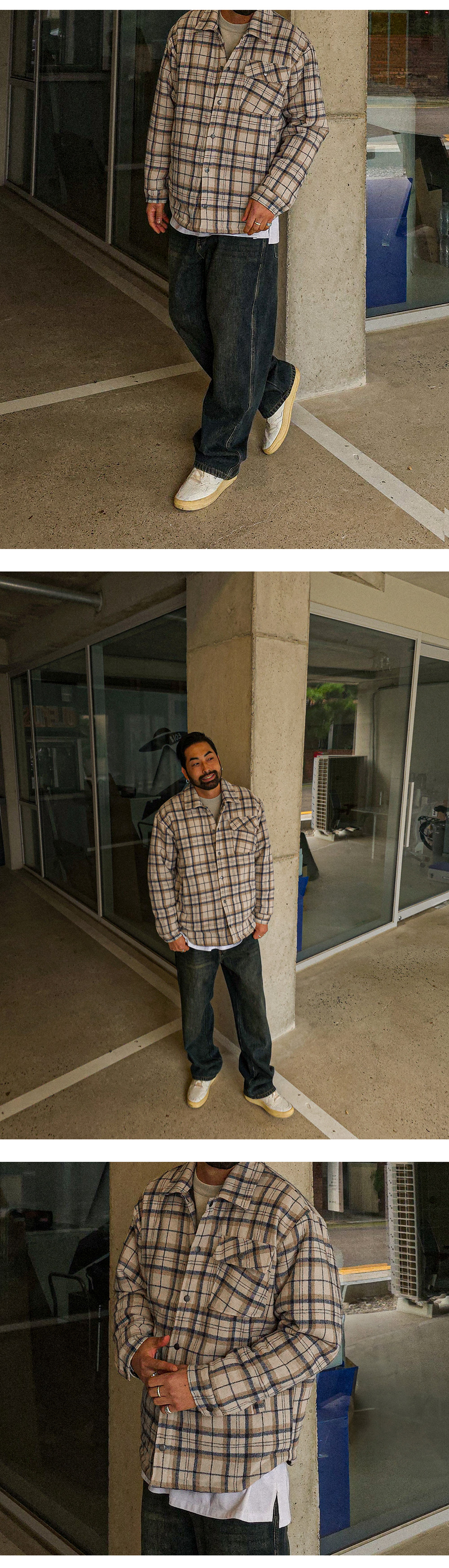 다양한 룩에 포인트 주기 좋은 패딩 셔츠 자켓입니다. 포근한 소재에 안감 누빔으로 제작되어 겨울에도 보온성을 유지해줍니다. 전체적으로 들어간 체크 패턴이 클래식하면서도 캐주얼한 무드를 연출해 데님, 슬랙스 등 어떤 하의와도 자연스럽게 어울립니다. 여유 있는 실루엣으로 편안한 착용감을 제공하며, 프론트 포켓 디테일로 실용성까지 더했습니다. SIZE XL-2XL,3XL-4XL,5XL-6XL 모델착용 [KIHOON]색상 : 베이지톤 / 사이즈 : XL-2XL ![]() ![]() ![]() ![]() ![]() ![]() ![]() ![]()