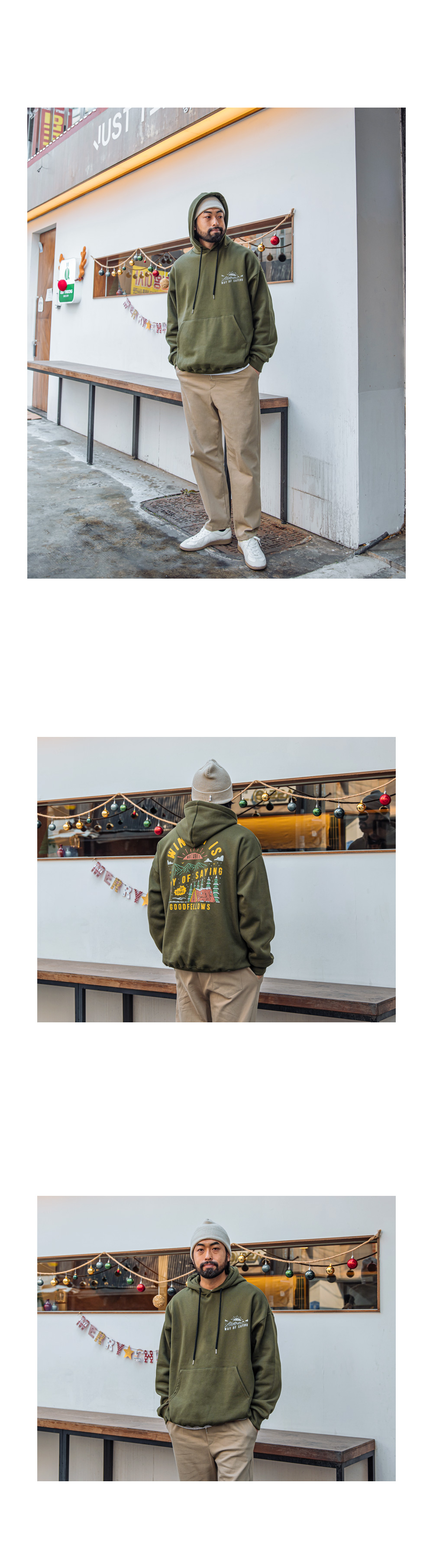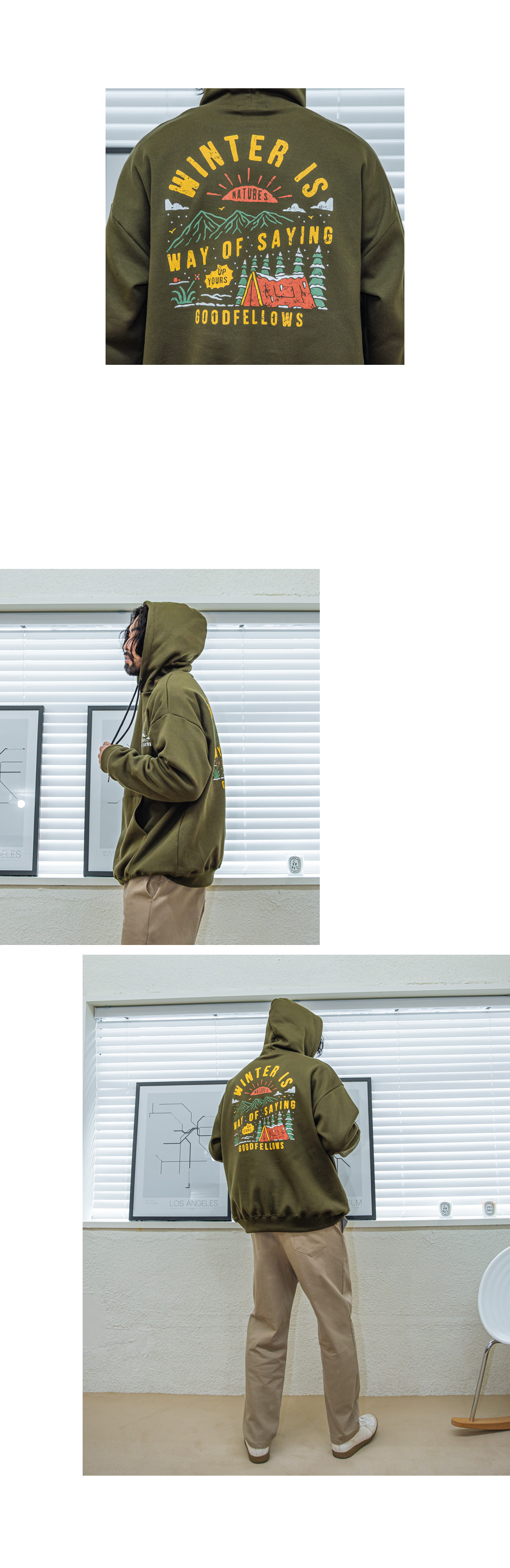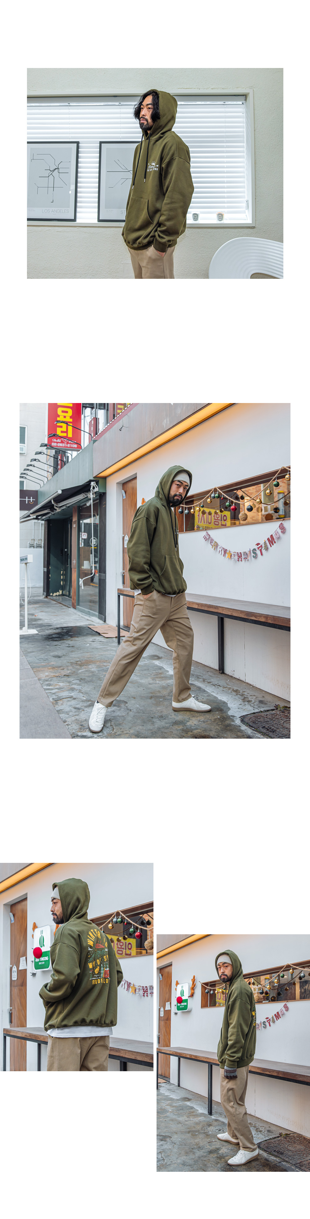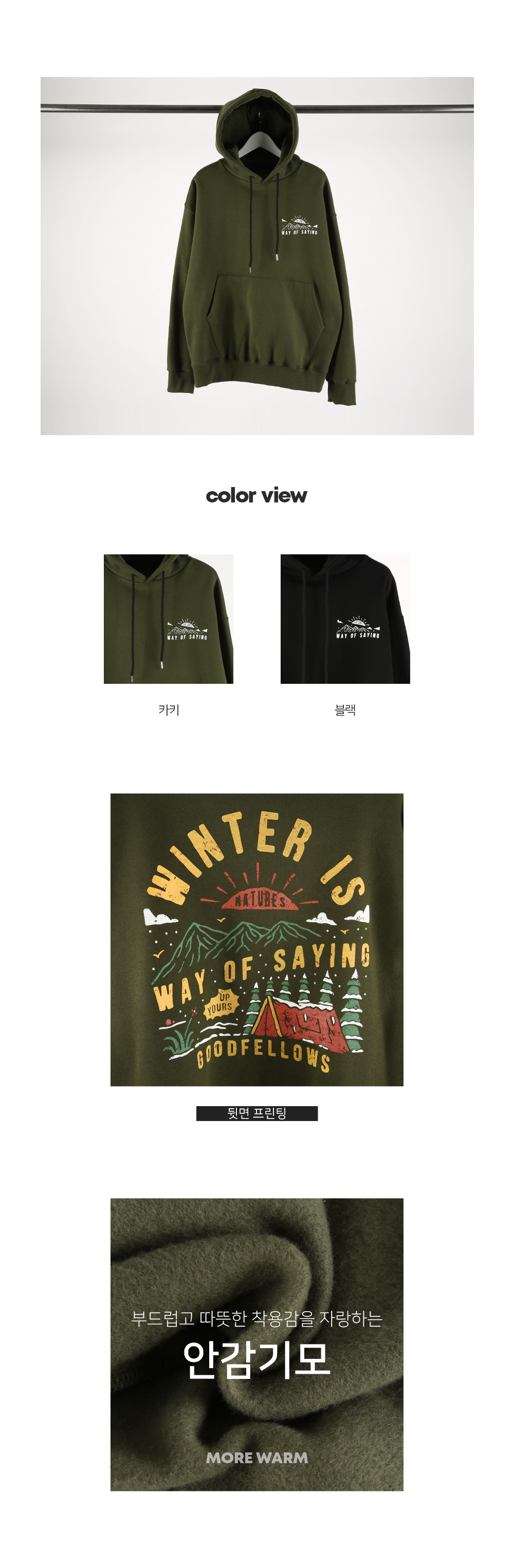 캐주얼함을 보여주는 제작된 기모 후드 티셔츠입니다. 앞뒷면에 나염으로 포인트를 주었고 안감 기모로 보온성을 유지해주며 핏 또한 루즈한 핏으로 좀 더 여유있는 피팅감을 느끼실 수 있습니다. SIZE XL-2XL(2번),3XL-4XL(4번) 모델착용 색상 : 카키 / 사이즈 : 3XL-4XL(4번) ![]() ![]() ![]() ![]() ![]() ![]() ![]() ![]() ![]()