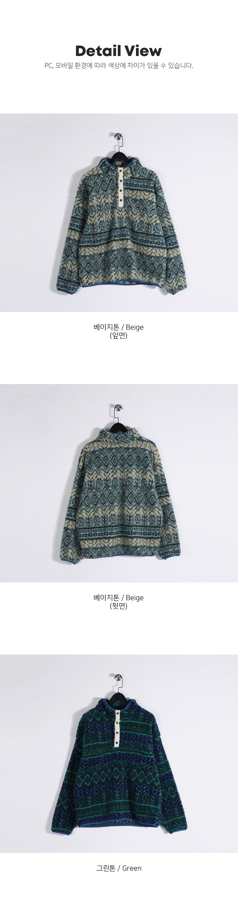 트렌디한 패턴으로 포인트를 더한 아노락입니다. 포근한 분위기가 느껴지는 두툼한 두께감의 보온성이 좋은 플리스 소재로 하루 종일 기분 좋은 따뜻함을 느낄 수 있으며, 어깨선이 살짝 드롭되고 여유있는 가슴 둘레로 편안한 핏을 제공합니다. 넥 부분 컬러 배색과 기하학적인 패턴을 활용하여 트렌디한 디자인을 자랑합니다. 데일리부터 캠핑룩까지 다양하게 즐겨보세요. SIZE FREE 모델착용 [YOOJUN]색상 : 베이지톤 / 사이즈 : FREE ![]() ![]() ![]() ![]() ![]() ![]() ![]() ![]() ![]()