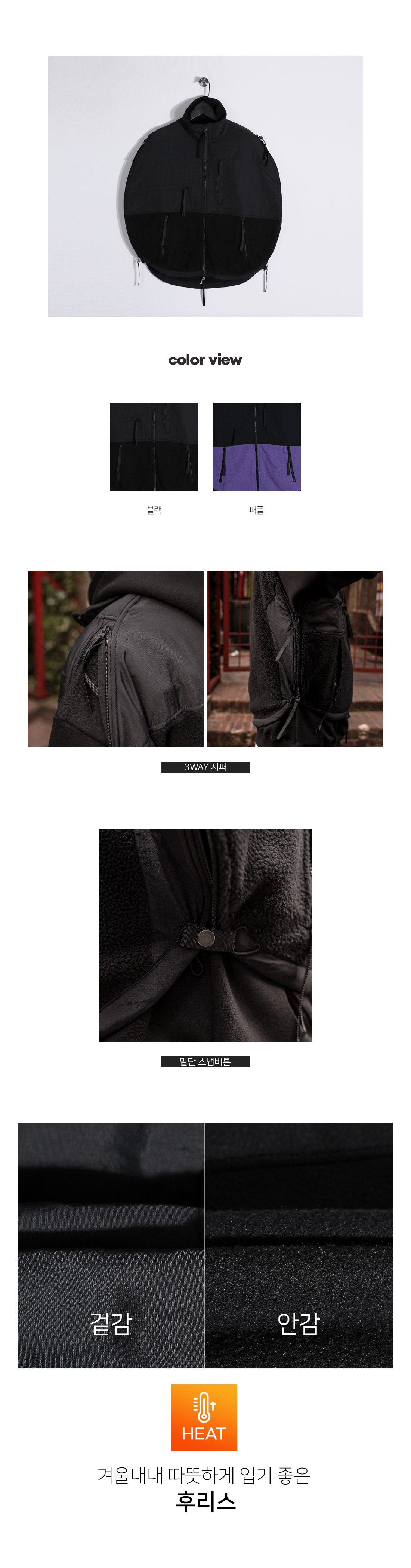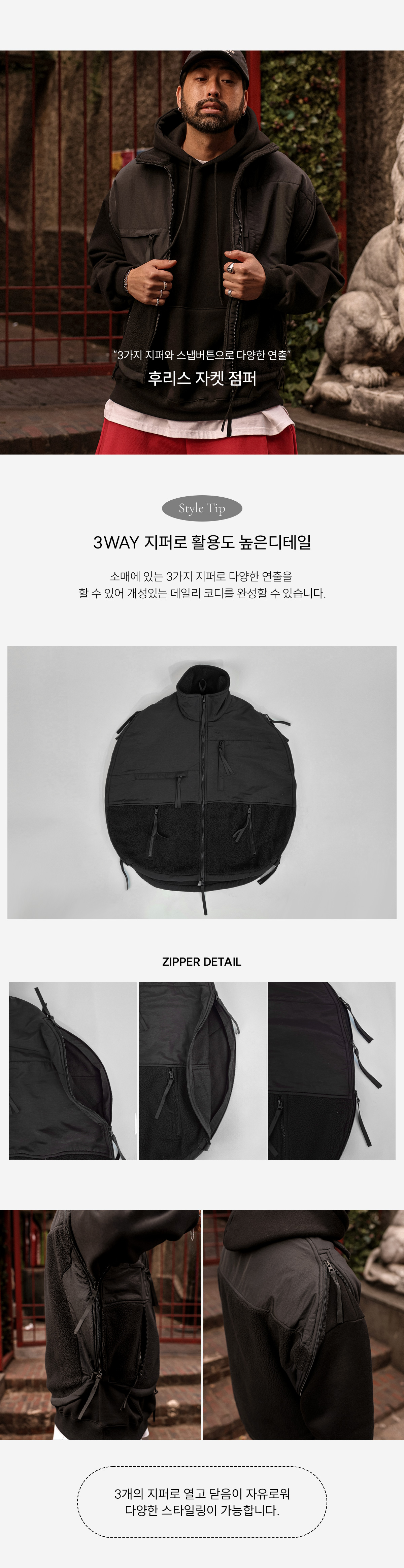 유니크한 무드가 돋보이는 후리스 조끼입니다. 보온성이 우수한 후리스 소재와 나일론 소재 배색으로 부드럽고 포근한 착용감이 특징이며, 지퍼가 있는 가슴 포켓 2개와 핸드 포켓 2개로 안전하고 실용적인 수납이 가능합니다. 어깨라인부터 열리는 쓰리웨이 지퍼 베스트로 취향에 맞게 다양한 스타일로 연출할 수 있으며, 밑단 스냅 버튼 디테일로 사이즈 조절이 가능해 편안하게 착용할 수 있습니다. 베이직한 디자인에 다양한 요소들을 더해 개성있는 데일리 코디를 완성해주는 상품입니다. SIZE FREE 모델착용 [KIHOON]색상 : 블랙 / 사이즈 : FREE ![]() ![]() ![]() ![]() ![]() ![]() ![]() ![]()