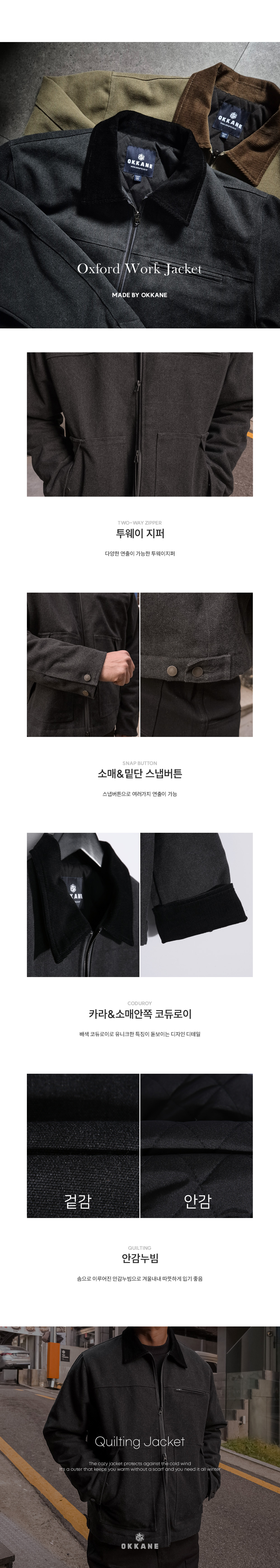 빈티지한 컬러감으로 완성된 감각적인 옥스포드 워크 자켓입니다.