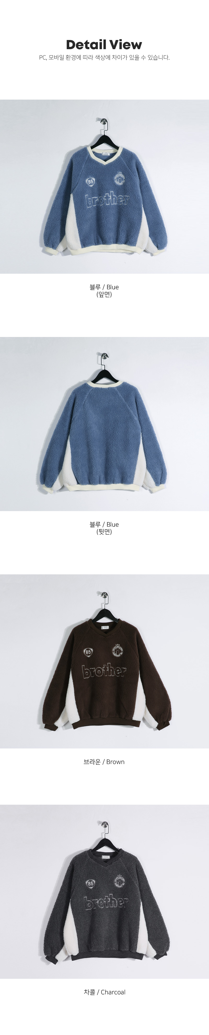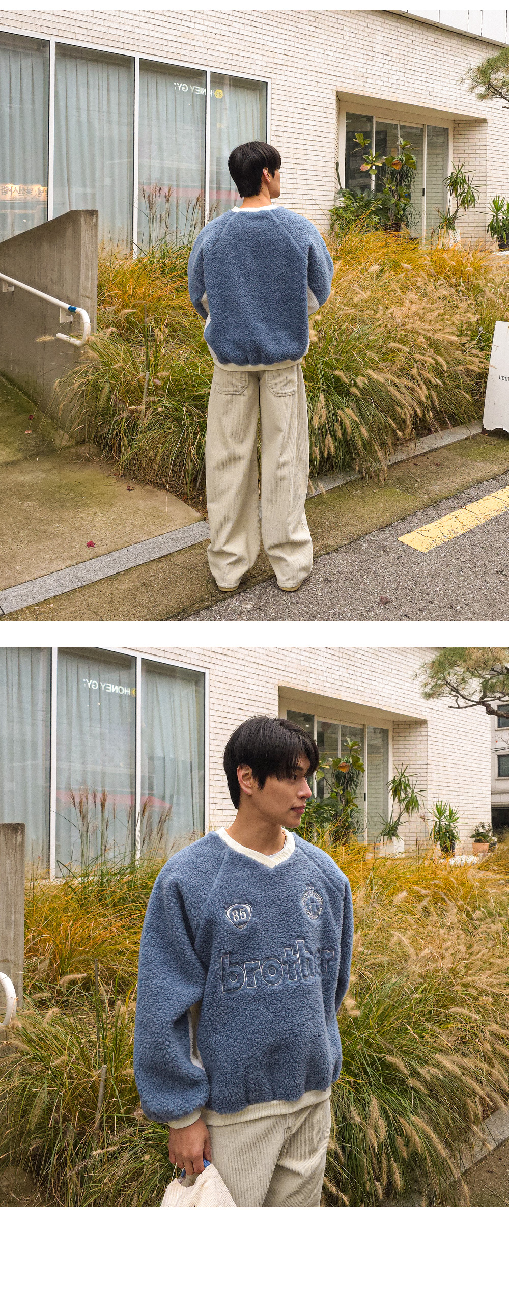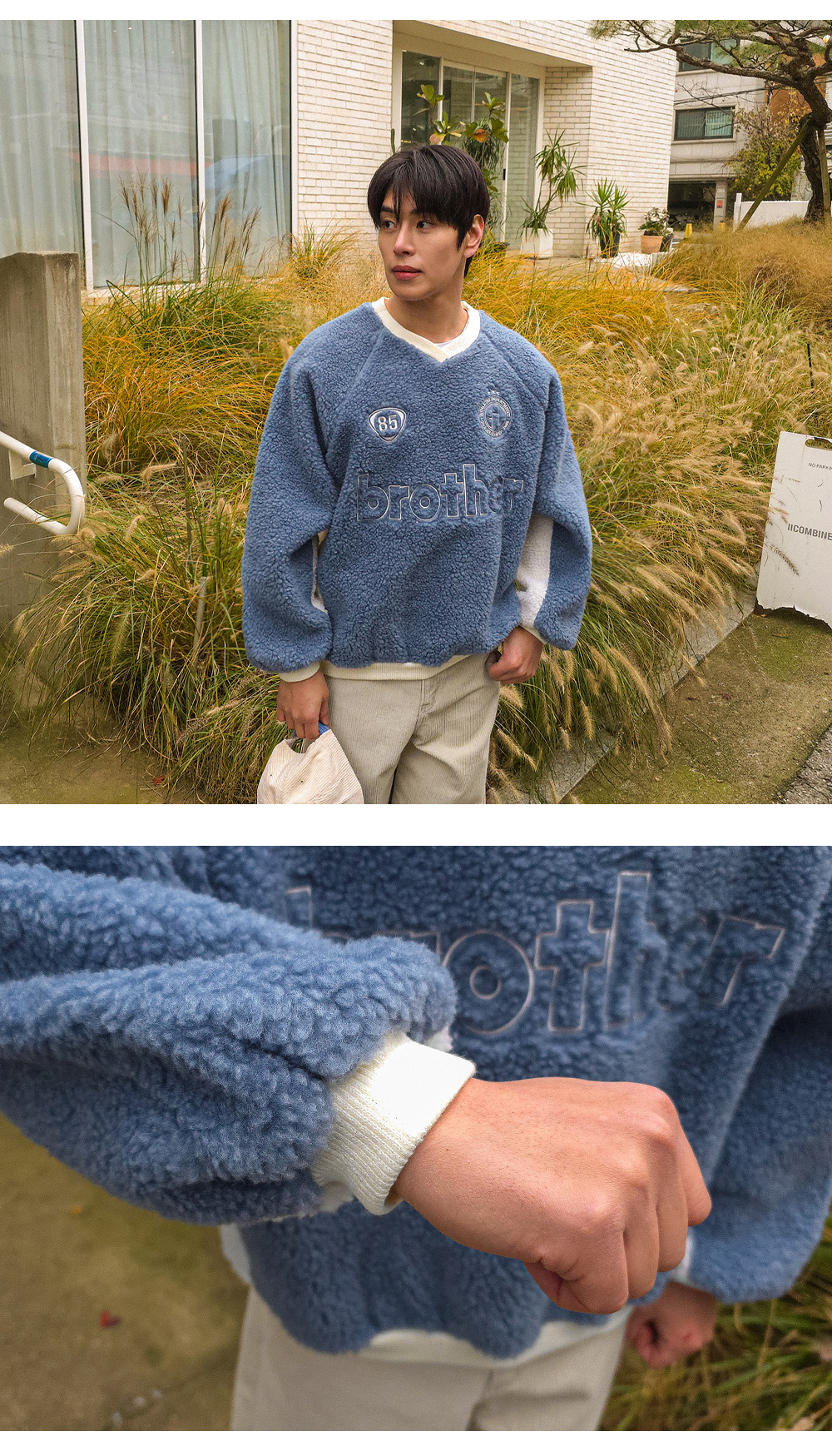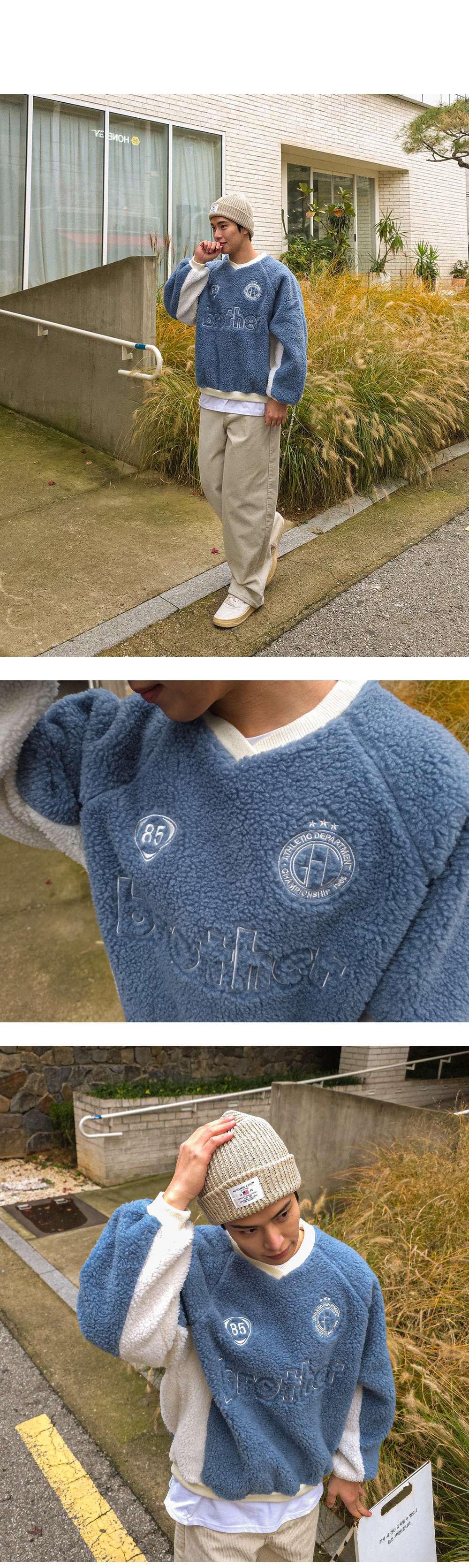 캐주얼하고 포근한 느낌이 주는 매력적인 맨투맨입니다. 양면 부클 원단으로 특유의 소프트한 터치감이 차가운 바람 속에서도 몸을 따스히 보호합니다. 전면 자수 디테일과 컬러 배색으로 포인트를 주어 완성도를 높여주었으며, 나그랑 숄더와 브이넥 라인으로 스타일과 편안함을 모두 갖추었습니다. 다양한 하의와 코디하기 좋은 코지한 무드의 맨투맨입니다. SIZE FREE 모델착용 [YOOJUN]색상 : 블루 / 사이즈 : FREE ![]() ![]() ![]() ![]() ![]() ![]() ![]() ![]() ![]()