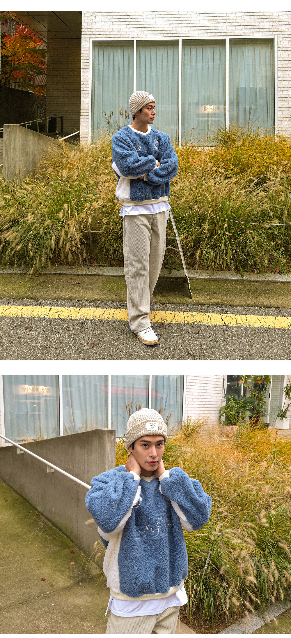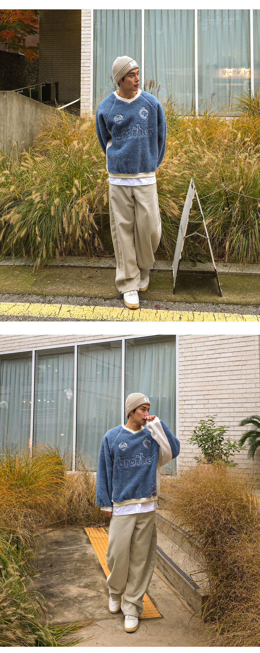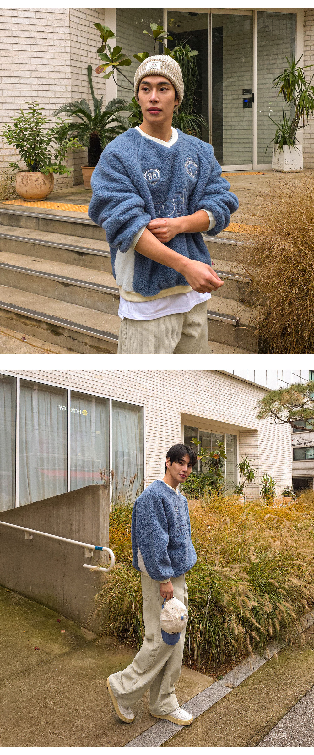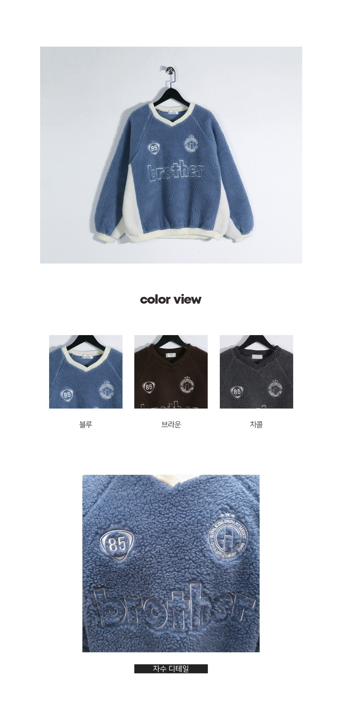 캐주얼하고 포근한 느낌이 주는 매력적인 맨투맨입니다. 양면 부클 원단으로 특유의 소프트한 터치감이 차가운 바람 속에서도 몸을 따스히 보호합니다. 전면 자수 디테일과 컬러 배색으로 포인트를 주어 완성도를 높여주었으며, 나그랑 숄더와 브이넥 라인으로 스타일과 편안함을 모두 갖추었습니다. 다양한 하의와 코디하기 좋은 코지한 무드의 맨투맨입니다. SIZE FREE 모델착용 [YOOJUN]색상 : 블루 / 사이즈 : FREE ![]() ![]() ![]() ![]() ![]() ![]() ![]() ![]() ![]()