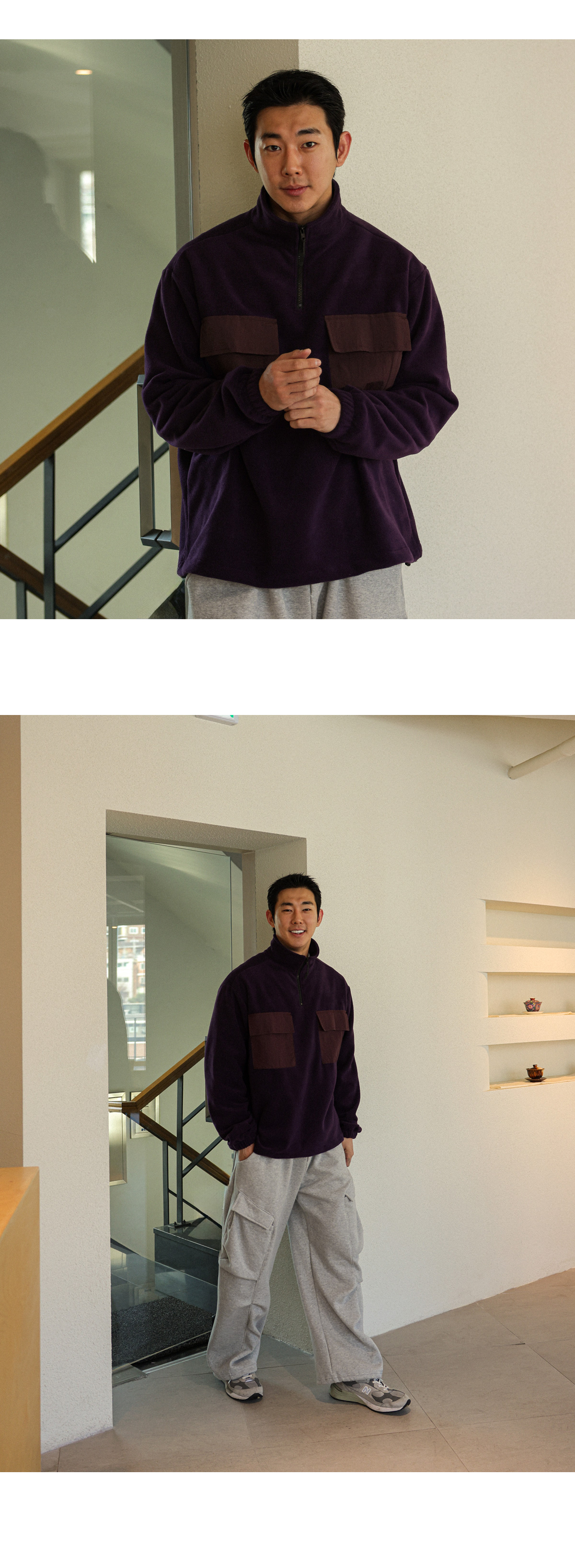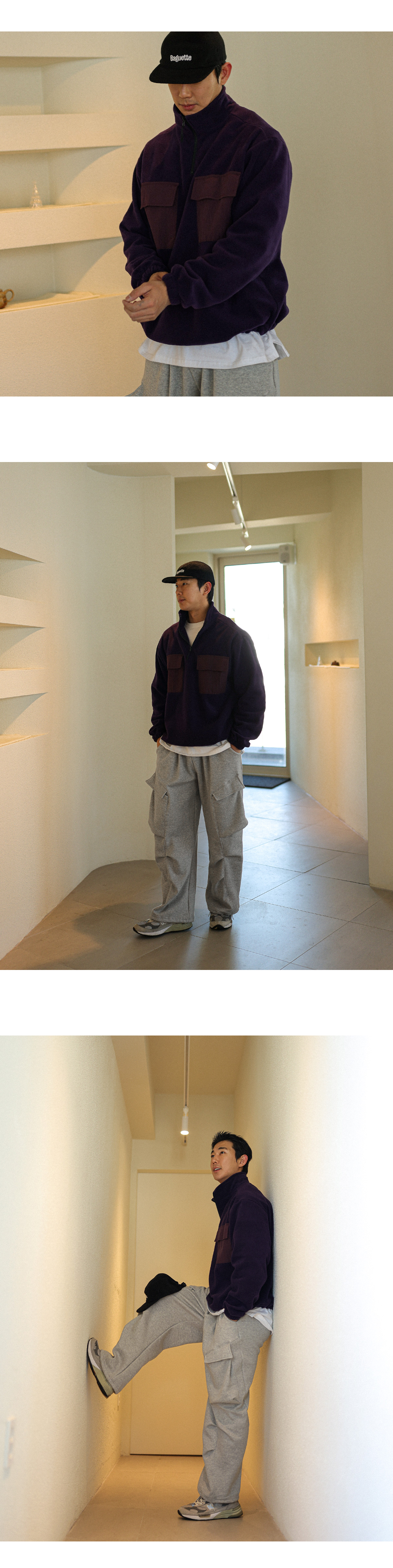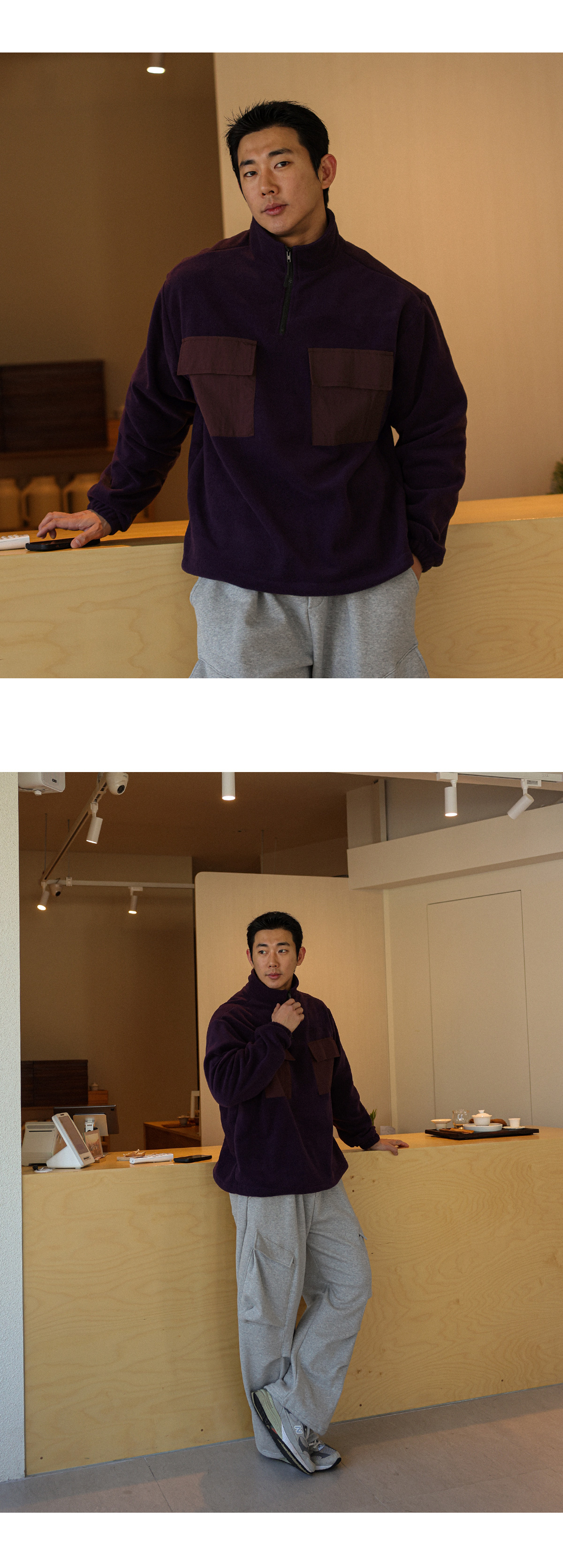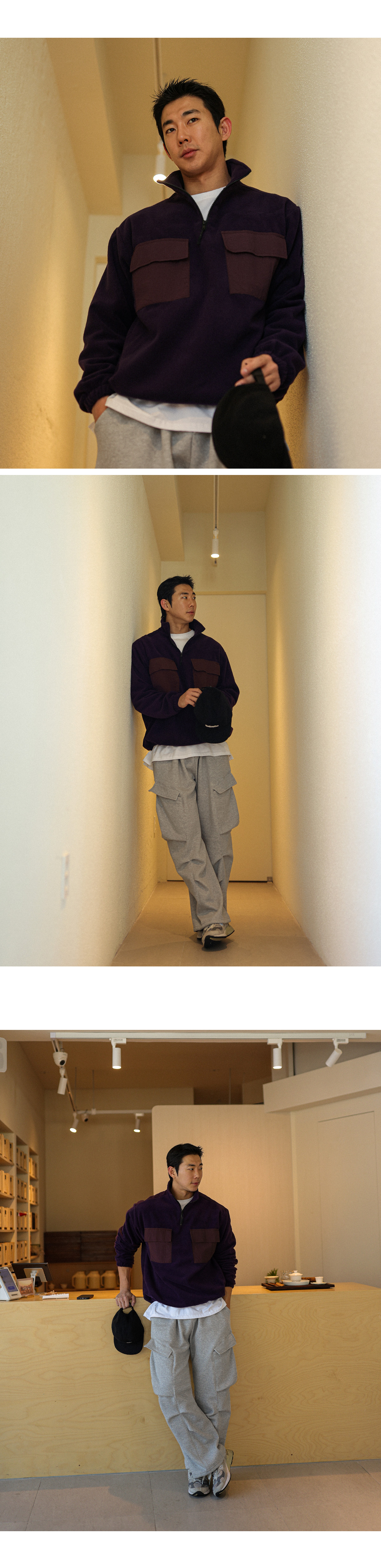 담요처럼 포근한 후리스 아노락입니다. 후리스 특유의 뽀송한 텍스처가 살아있으면서도 몸에 부드럽게 감기는 유연한 소재감과 프론트 부분 은은한 배색 포켓으로 포인트를 더해 완성도 높은 실루엣을 연출해줍니다. 보온성은 충분히 챙기되 부담스럽지 않게 두텁지 않은 두께로 부해 보이지 않는 핏으로 단독으로도, 외투 안 이너로도 멋스럽게 스타일링 됩니다. 자연스럽게 올라오는 반하이넥 디자인으로 답답하지 않게 목을 감싸주며, 밑단에는 짱짱한 스트링을 추가해 입체감 있는 아웃핏을 유지해줍니다. 과하지 않은 디테일들로 다양한 룩에 웨어러블하게 활용해보시길 바랍니다. SIZE FREE 모델착용 [JUNBEOM]색상 : 딥퍼플 / 사이즈 : FREE ![]() ![]() ![]() ![]() ![]() ![]() ![]() ![]() ![]()