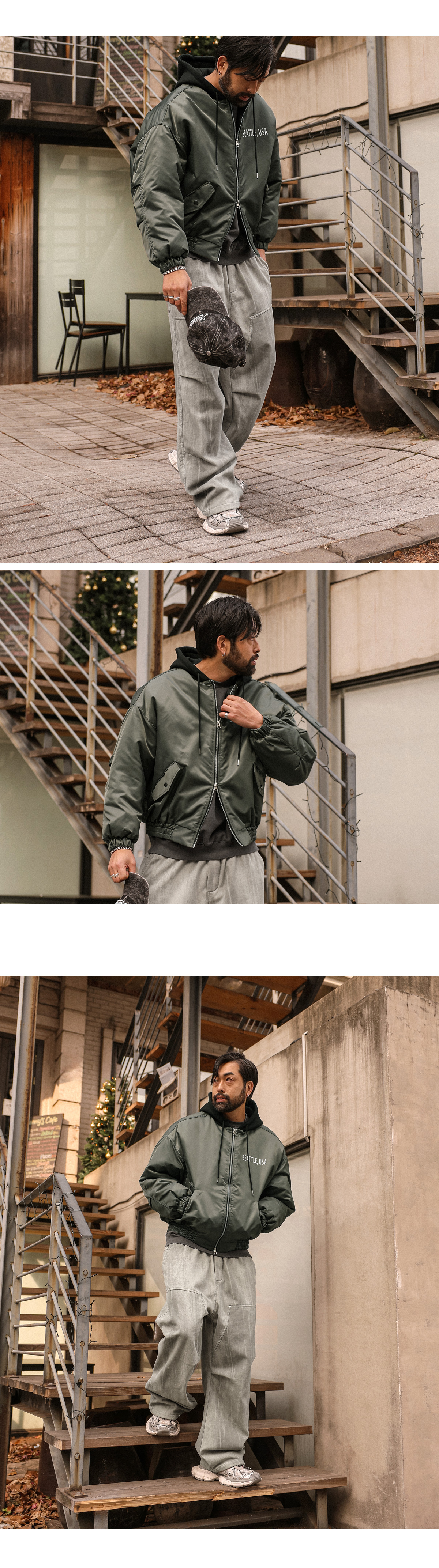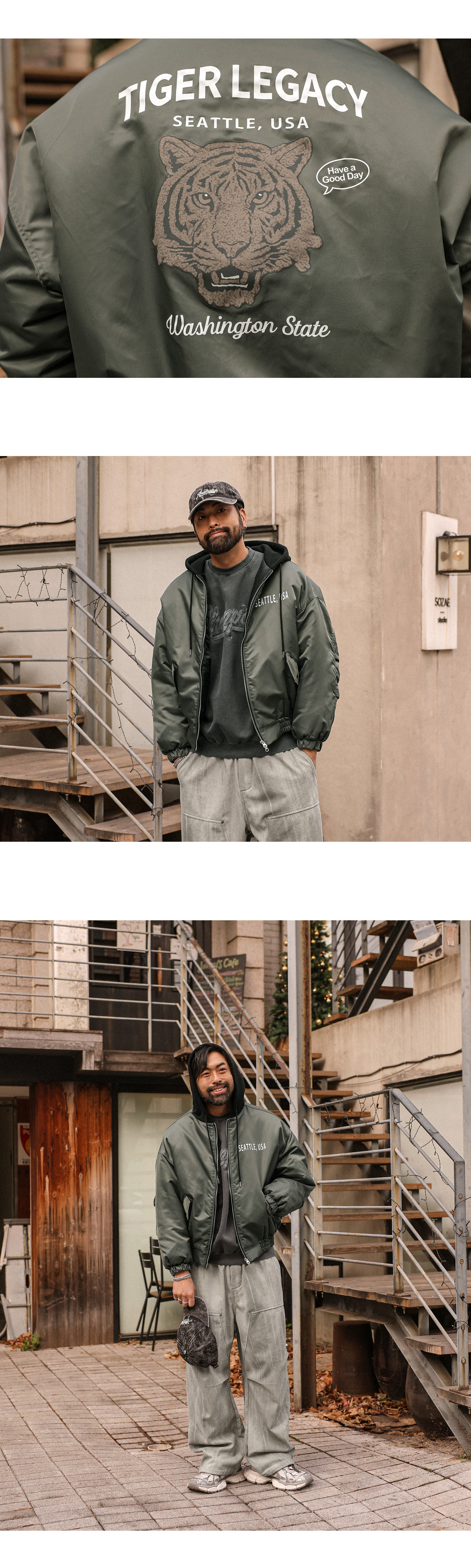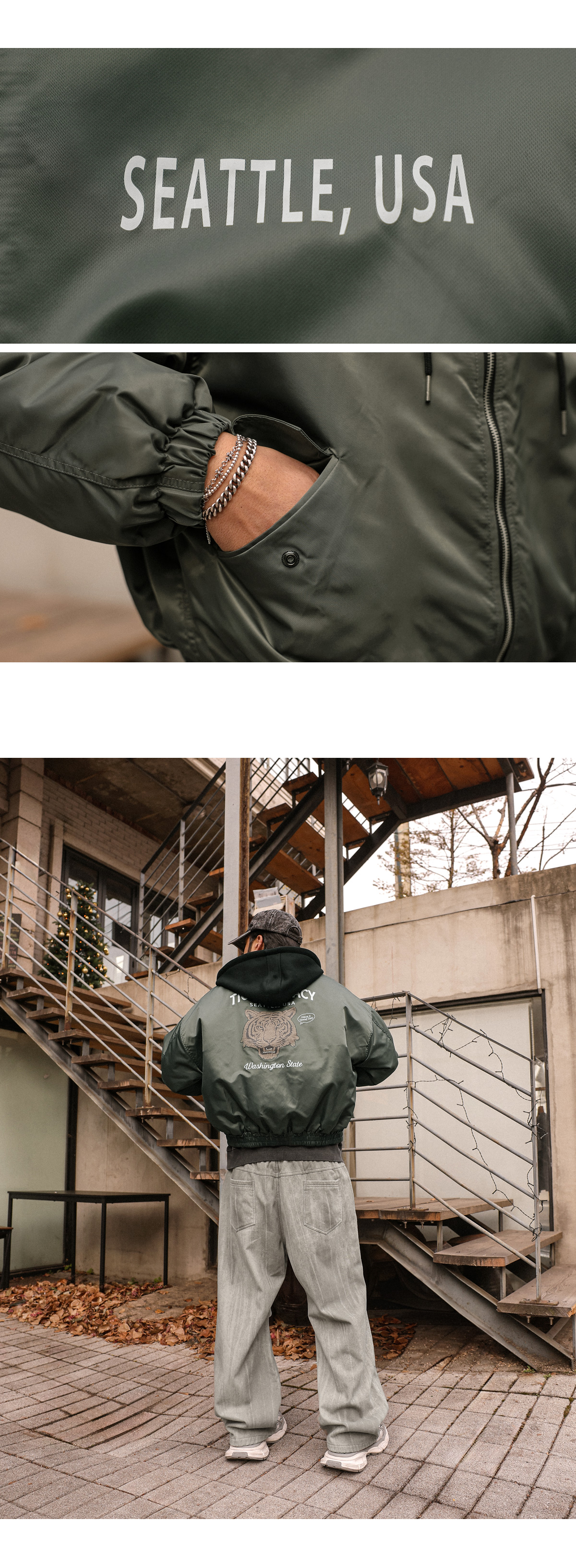 밋밋한 점퍼는 이제 그만, 아우터만으로도 포인트되는 항공 점퍼입니다. 4온스 충전재가 빵빵하게 들어가 보온성을 든든히 챙겨주며, 후디 디자인에 끈 디테일을 추가해 찬 바람까지 완벽하게 차단해줍니다. 은은한 광택이 감도는 소재감에 전면 레터링과 후면 아트 그래픽이 조화롭게 어우러져 항공 점퍼 디자인을 살리면서 그 안에 멋을 담아냈습니다. 캐주얼하고, 스트릿한 무드에 실용적인 요소를 더해 옷장 속 차별화된 아우터로 추천드립니다. SIZE FREE 모델착용 [KIHOON]색상 : 카키 / 사이즈 : FREE ![]() ![]() ![]() ![]() ![]() ![]() ![]() ![]()