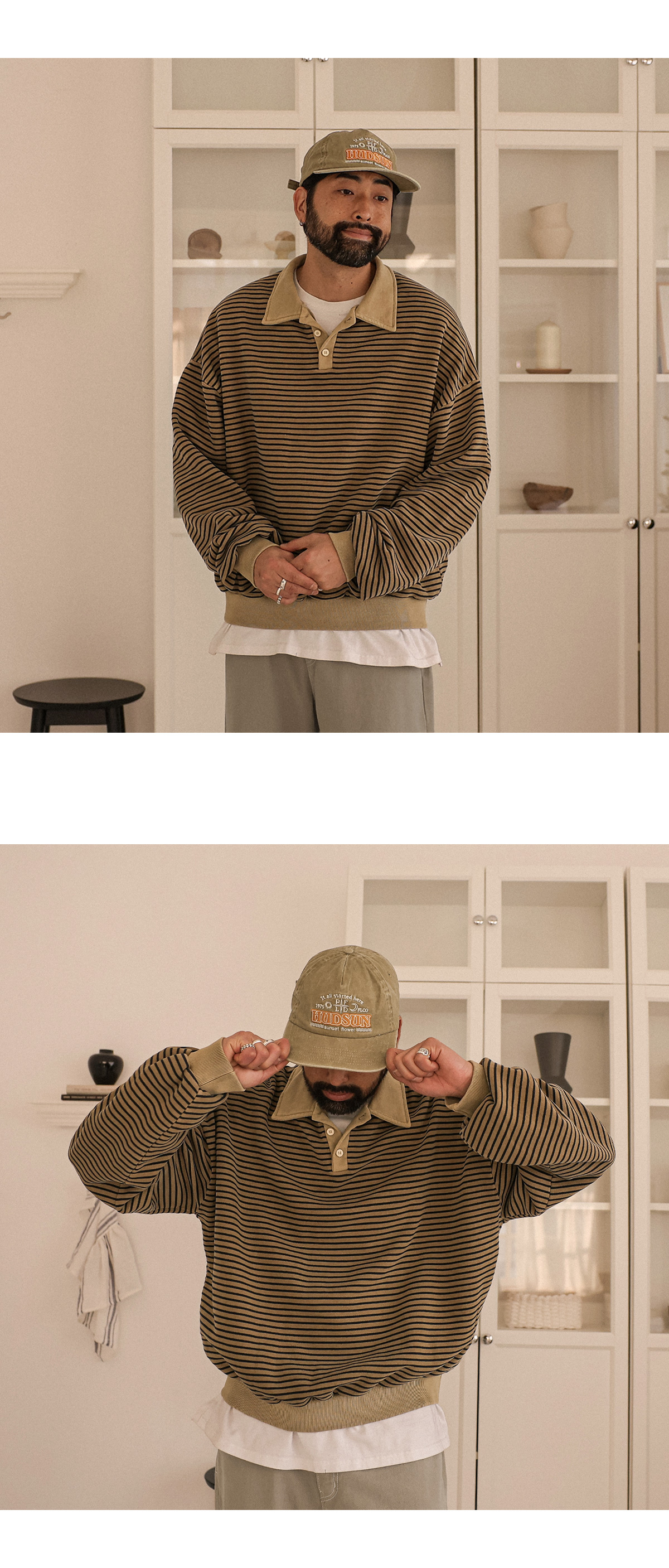 사계절 내내 이지하게 활용 가능한 캠프캡입니다. 탄탄하고 베이직한 코튼 원단에 피그먼트 가공 처리로 착용하면 할 수록 빈티지한 멋을 더해줍니다. 앞면 배색 레터링 디테일을 추가하여 차별화된 스타일링이 가능하고, 사이즈 조절이 가능한 제품으로 두상에 맞추어 착용하실 수 있습니다. SIZE FREE 모델착용 [KIHOON]색상 : 베이지 / 사이즈 : FREE ![]() ![]() ![]() ![]() ![]() ![]() ![]() ![]()