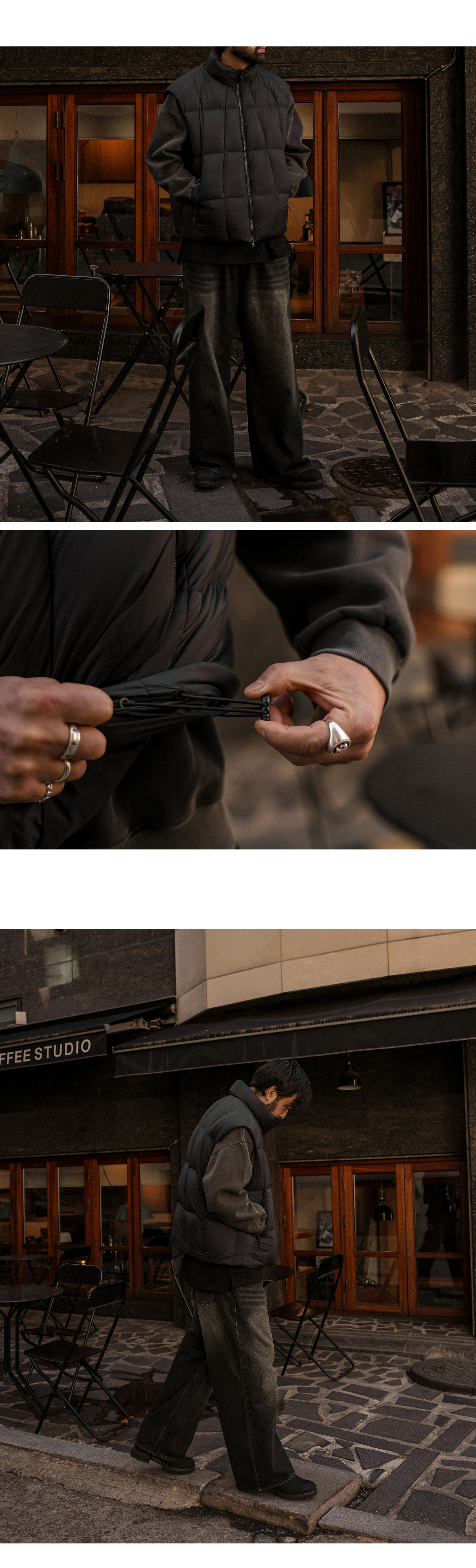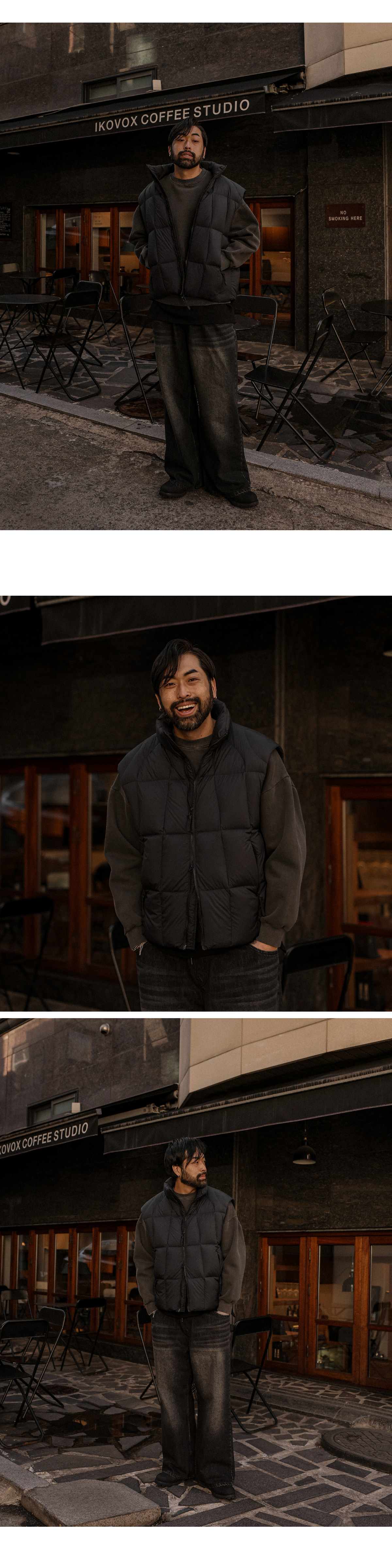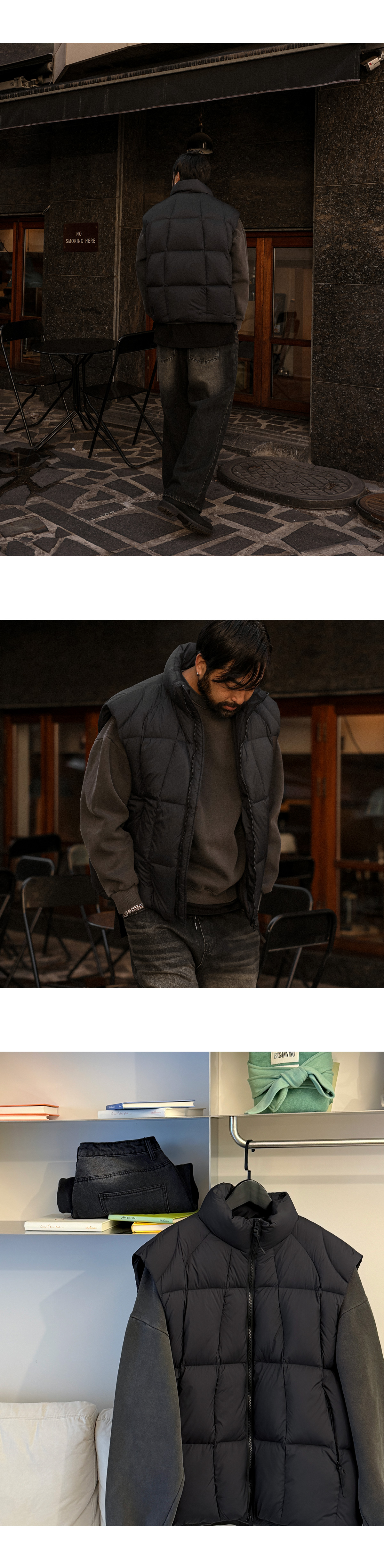 쌀쌀한 간절기부터 겨울까지 쭉 필요한 패딩 조끼, 아무거나 사기엔 망설여질 땐 오까네에서 직접 제작한 패딩 조끼입니다. 단순히 "따뜻한 패딩"을 넘어 오랜 시간 소장해도 퀄리티가 유지되는 상품입니다 덕다운 충전재로 장시간 착용에도 볼륨감은 살리면서 보온성은 확실하게 느끼실 수 있습니다. 간결하면서도 정돈된 아웃핏으로 아우터는 물론 레이어드용으로 활용하시기에도 좋습니다. SIZE L-XL,2XL,3XL,4XL,5XL-6XL 모델착용 [KIHOON]색상 : 블랙 / 사이즈 : L-XL ![]() ![]() ![]() ![]() ![]() ![]() ![]() ![]()