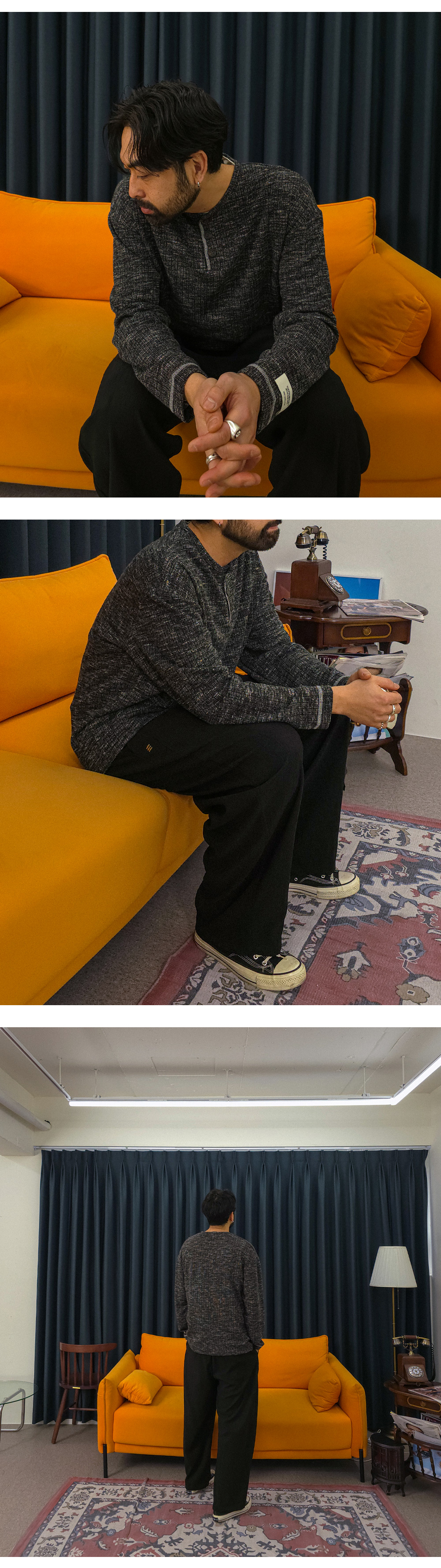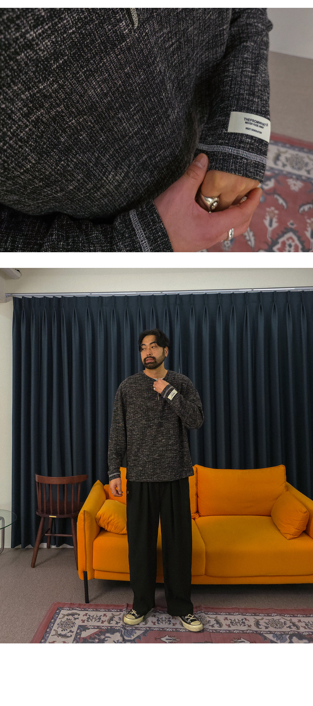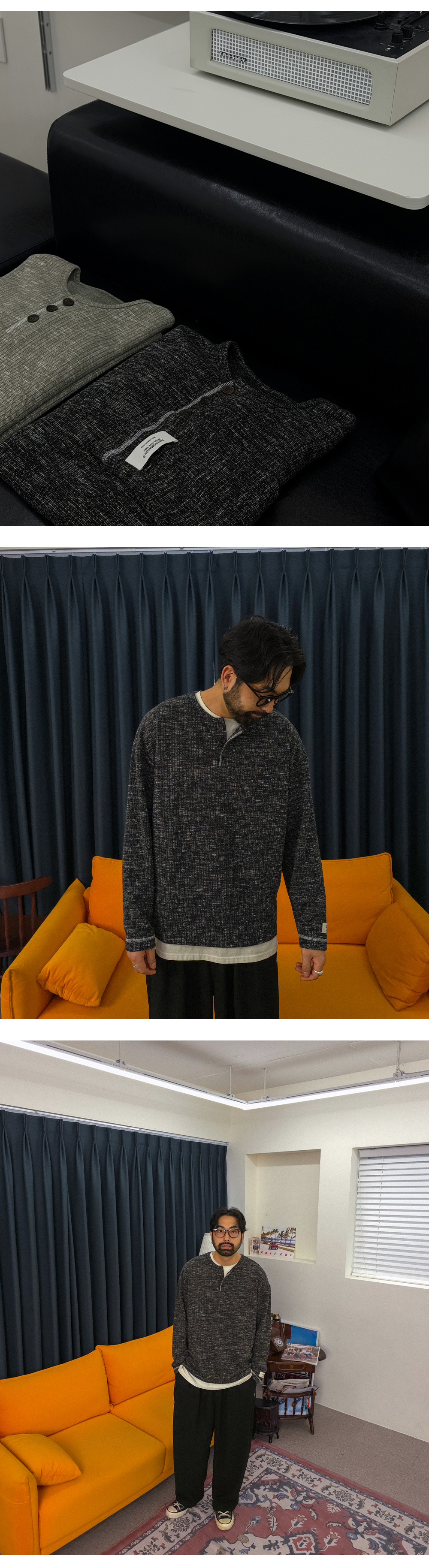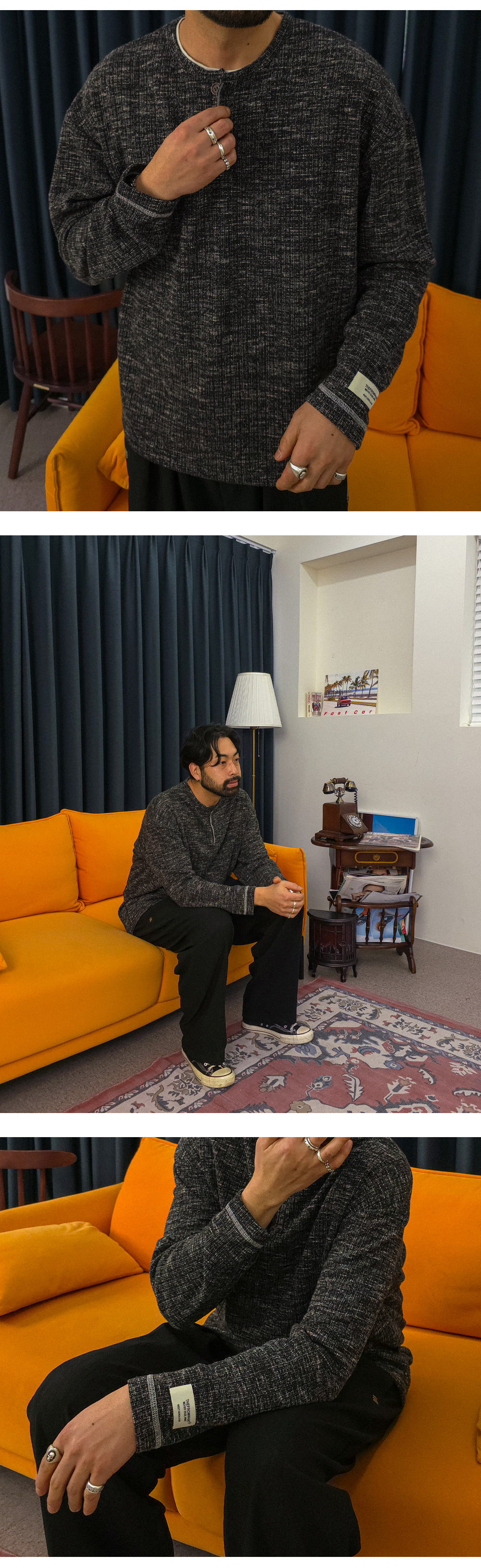 팬츠에 따라 전혀 다른 분위기를 연출하는 헨리넥 긴팔 니트입니다. 부드러우면서도 탄탄한 니트 조직으로 제작되어 편안한 활동성과 안정적인 핏을 동시에 만족시켜 주며, 형태 변형이 적어 오랫동안 완성도 높은 실루엣을 유지할 수 있습니다 . 적당한 두께감으로 간절기는 물론 초여름까지도 부담 없이 활용 가능해 높은 실용성을 자랑합니다. 헨리넥 디자인 특유의 세련된 무드에 소매 패치 디테일과 스티치 포인트를 더해 은은하면서도 감각적인 포인트를 완성했습니다. 면팬츠, 데님팬츠, 슬랙스 등 다양한 팬츠와 자연스럽게 어우러져 캐주얼부터 세미 포멀까지 폭넓은 스타일링의 완성도를 높여줄 니트 입니다. SIZE L-XL,2XL-3XL,4XL-5XL,6XL-7XL 모델착용 [KIHOON]색상 : 블랙 / 사이즈 : L-XL ![]() ![]() ![]() ![]() ![]() ![]() ![]() ![]()