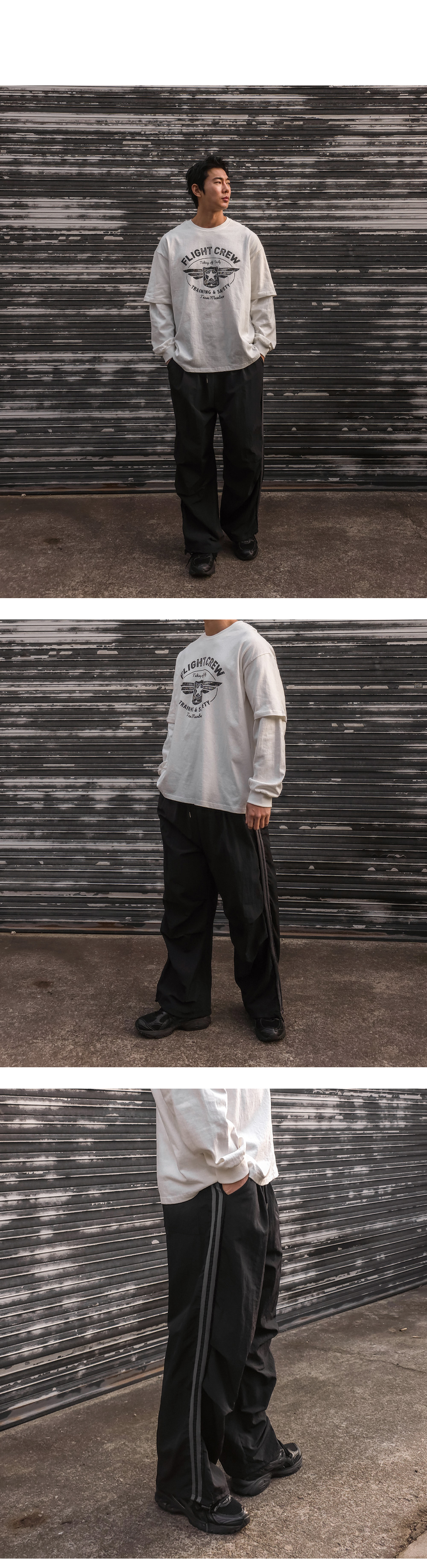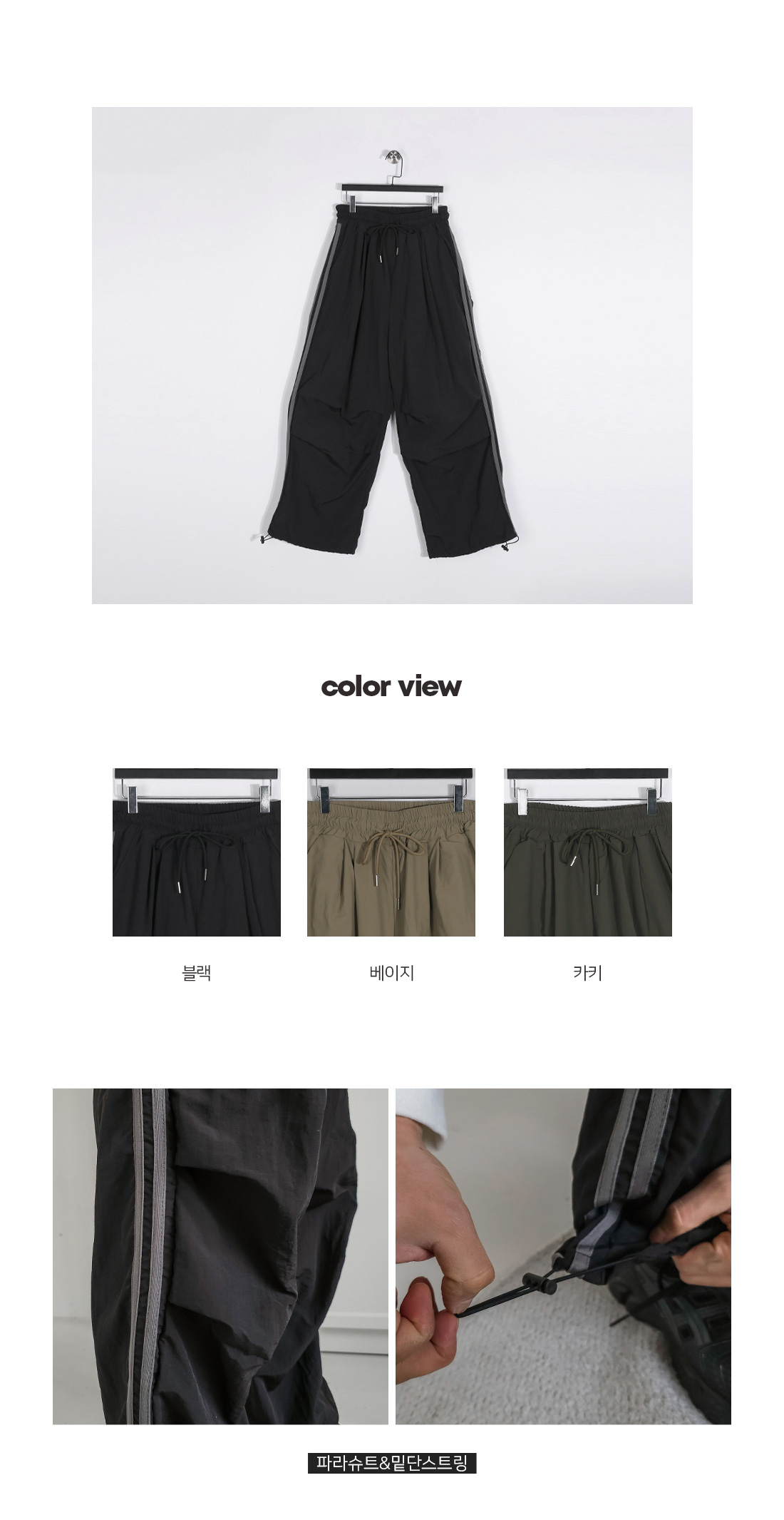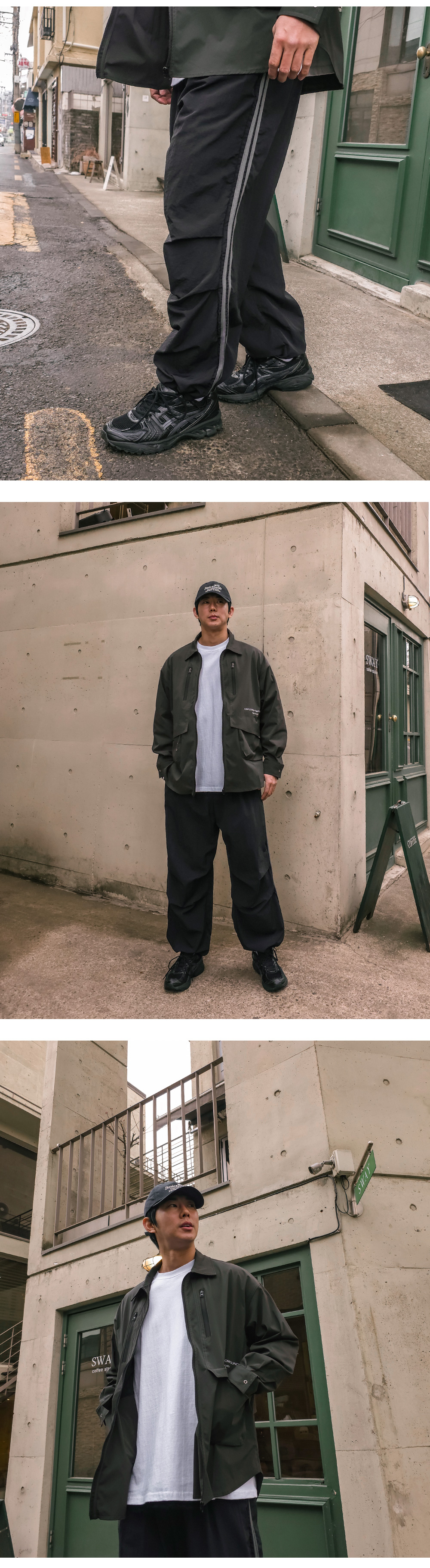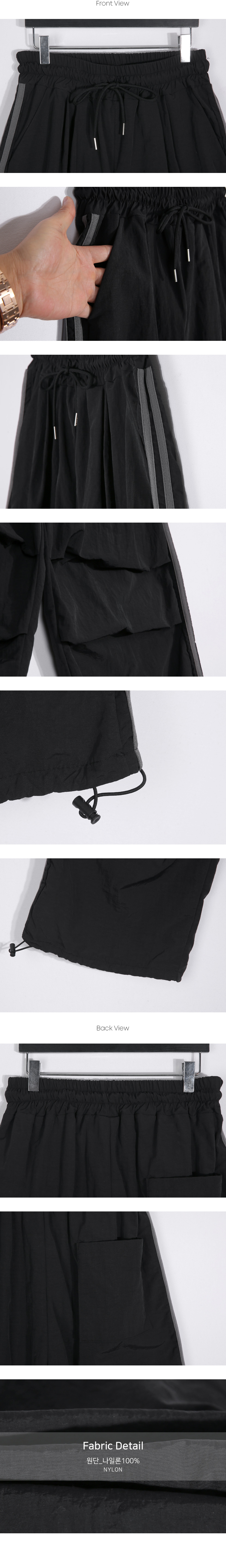 가볍게 스타일링하기 좋은 트랙 팬츠입니다. 나일론 100% 소재로 제작되어 한 겨울을 제외한 모든 계절에 코디 하기 좋은 아이템이며, 양 사이드 배색 라인과 파라슈트 턱을 추가하여 트렌디하면서 힙한 무드를 선사합니다. 허리 라인 전체 밴딩 처리에 끈을 더해 내 사이즈에 맞게 조절해 입으실 수 있답니다. 실사용 가능한 양 사이드 리얼 포켓과 취향에 맞는 무드로 연출 가능한 밑단 스트링까지 팬츠 하나만으로도 룩의 완성도를 높여주는 팬츠입니다. SIZE FREE 모델착용 [JUNBEOM]색상 : 블랙 / 사이즈 : FREE