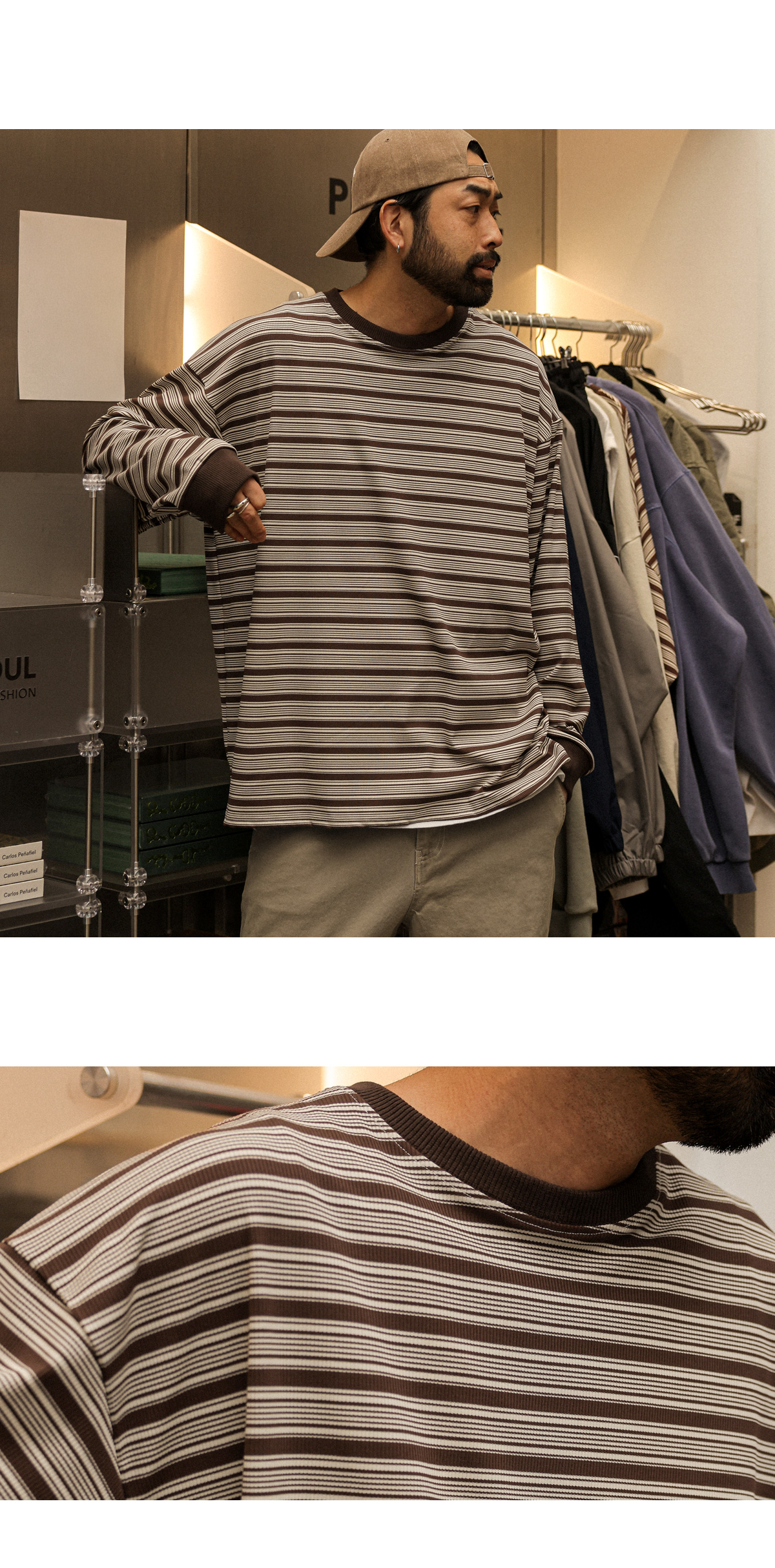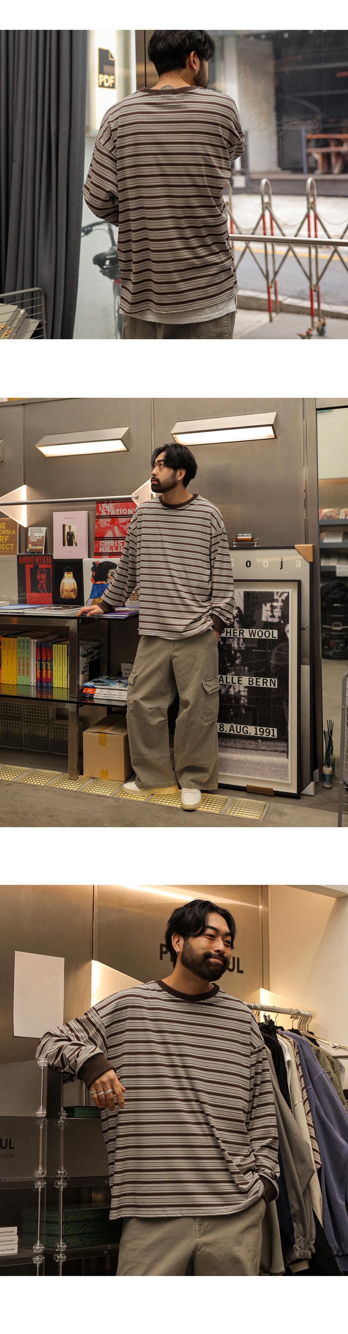 부드러운 터치감이 돋보이는 단가라 긴팔 티셔츠입니다. 전체적으로 텐션감이 좋아 안정감 있게 착용하기 좋고 옆 트임 디테일로 활동성까지 고려했습니다. 소매와 라운드 넥 부분은 시보리 처리로 마감해 늘어짐을 최소화하고 안정감 있는 착용감을 더했습니다. 배색 단가라 디자인으로 제작되어 단품으로는 물론 아우터 안 이너로도 포인트를 주기 좋은 단가라 긴팔 티셔츠입니다. SIZE XL-2XL,3XL-4XL 모델착용 [KIHOON]색상 : 브라운톤 / 사이즈 : XL-2XL ![]() ![]() ![]() ![]() ![]() ![]() ![]() ![]()