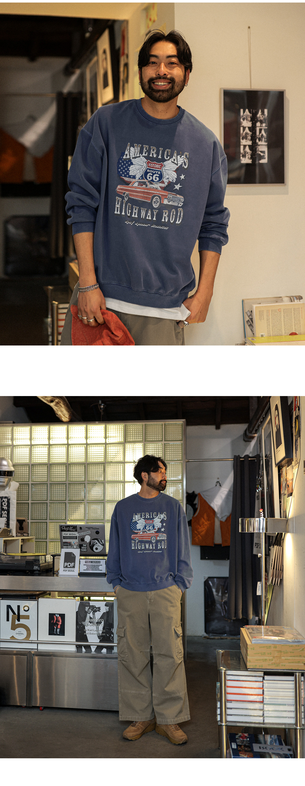 빈티지한 느낌을 주는 맨투맨입니다. 전체적인 피그먼트 워싱과 나염으로 포인트를 주었습니다. 소매,밑단에 탄탄 시보리로 제작되어 활동시에도 불편함이 없습니다. 아우터 안에 이너로 혹은 단품으로 안에 레이어드 티셔츠와 매치하기 좋은 아이템입니다. 다양한 사이즈 구비로 커플룩으로도 손색이 없는 상품입니다. SIZE M-L,XL,2XL-3XL,4XL-5XL 모델착용 [KIHOON]색상 : 네이비 / 사이즈 : XL ![]() ![]() ![]() ![]() ![]() ![]() ![]() ![]() ![]()