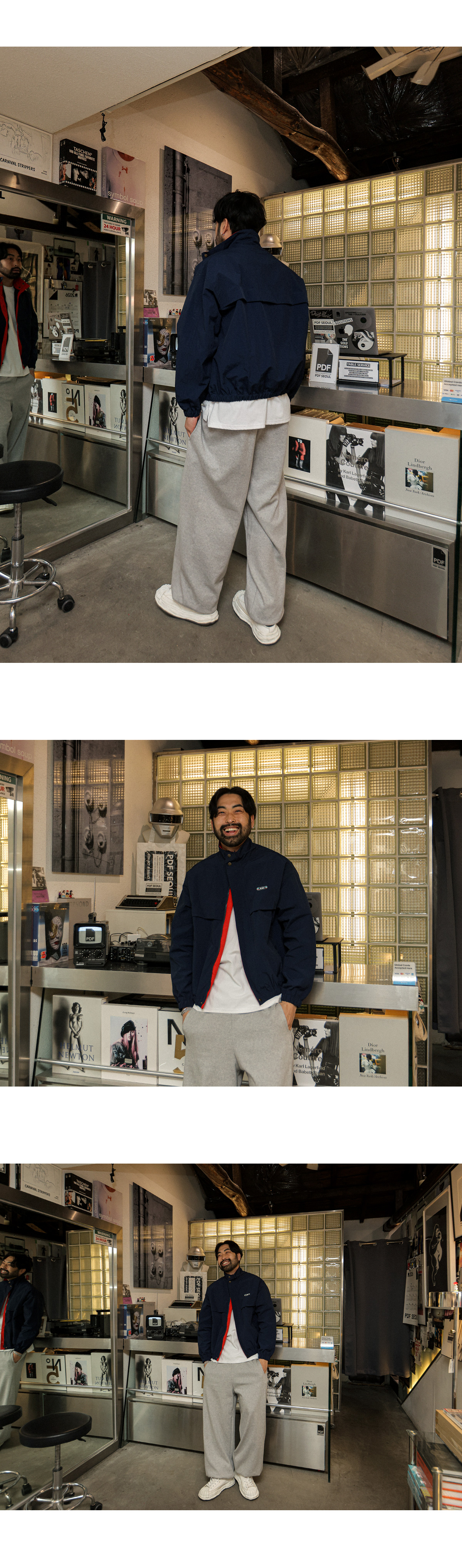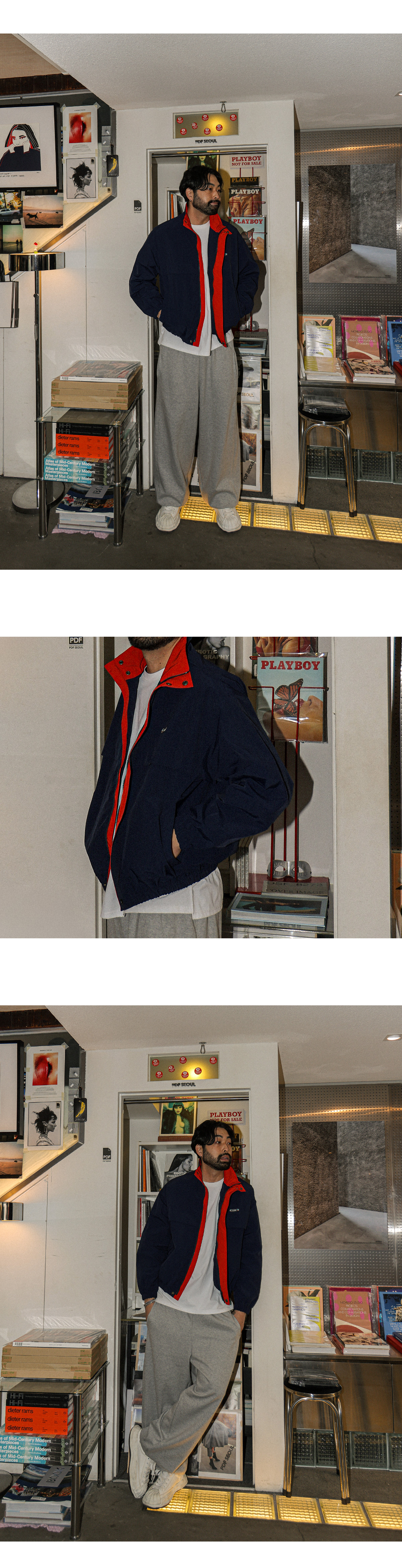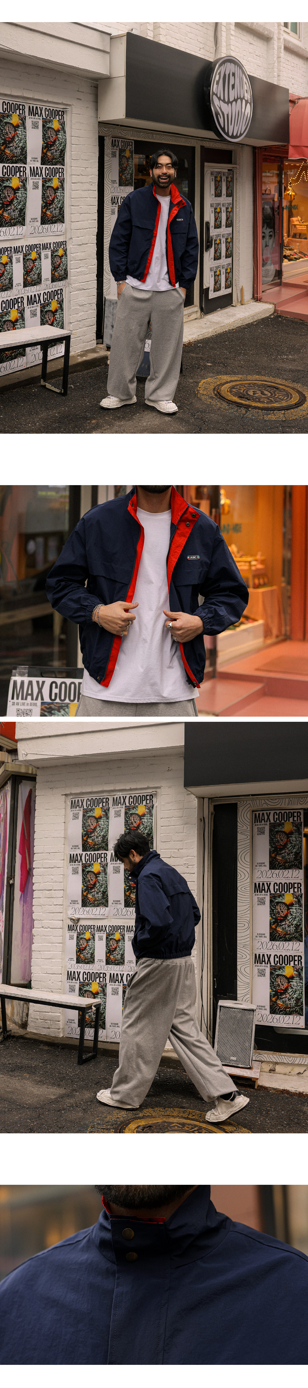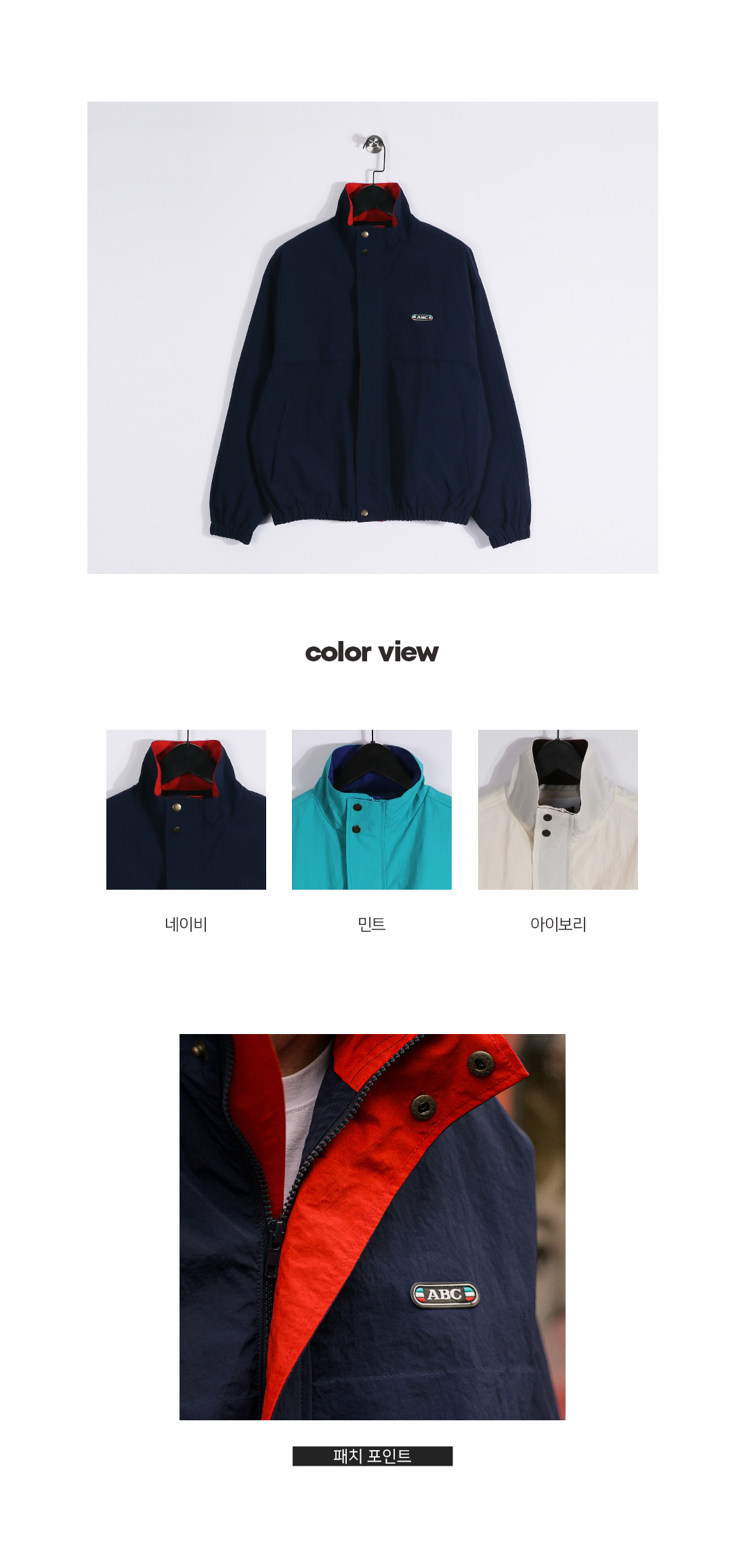 배색 디테일로 포인트를 준 점퍼입니다. 이중 잠금 장치로 안정감 있게 착용할 수 있으며 적당한 하이넥 길이로 제작되었습니다. 넥 부분과 안쪽 라인 배색 디테일로 오픈했을 때에도 멋스러운 포인트가 되며 캐주얼한 패치와 뒷면 날개 디테일까지 더해져 디테일이 돋보이는 아이템입니다. 홈웨어룩, 캐주얼룩, 애슬레저룩 등 다양한 스타일에 활용하기 좋습니다. SIZE FREE 모델착용 [KIHOON]색상 : 네이비 / 사이즈 : FREE ![]() ![]() ![]() ![]() ![]() ![]() ![]() ![]()