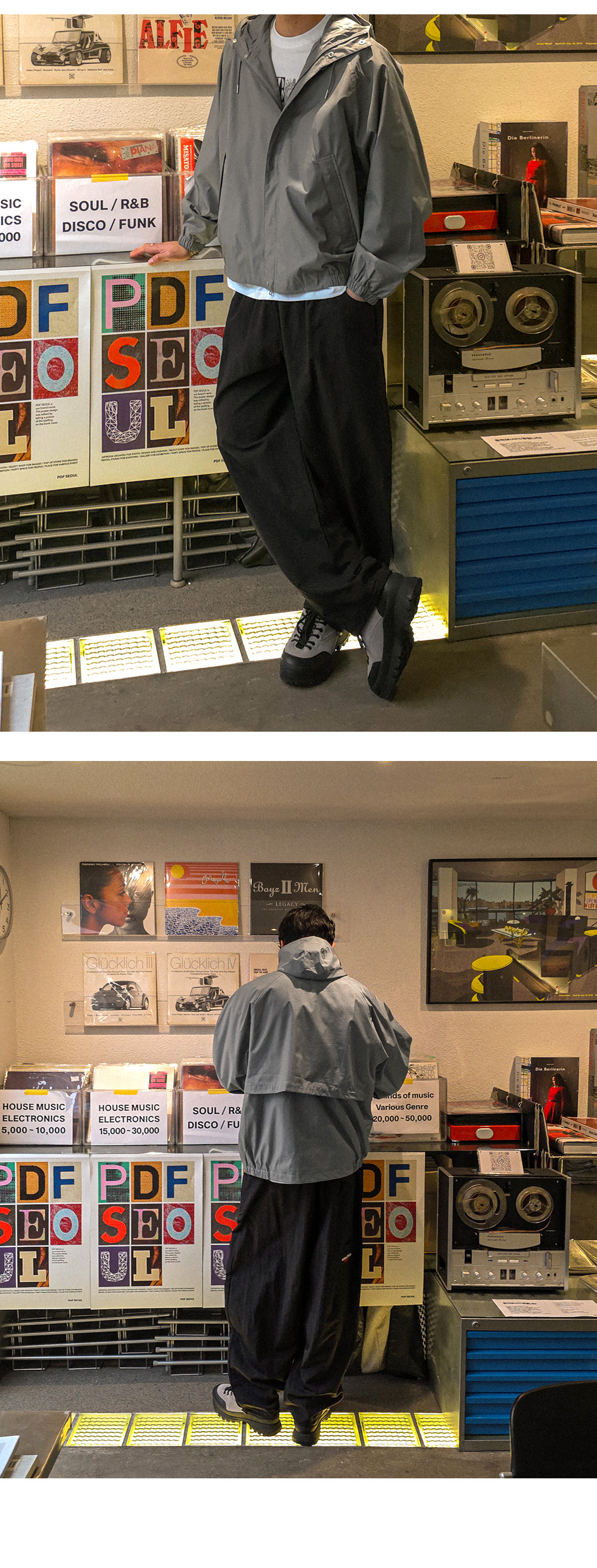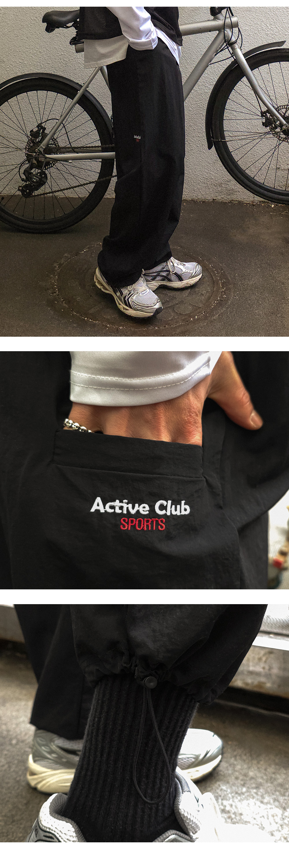 무심한듯 포인트를 준 밴딩 나일론 팬츠입니다. 면 과는 다른 나일론 원단으로 바스락거리는 매력적인 아이템입니다. 허리 밴딩으로 활동성이 편안함은 물론 밑단 스트링으로 조거 연출까지 가능합니다. 뒷면 레터링 자수 디테일까지 더해 다양한 상의와 함께 코디 활용하기 좋습니다. SIZE FREE 모델착용 [KIHOON]색상 : 블랙 / 사이즈 : FREE