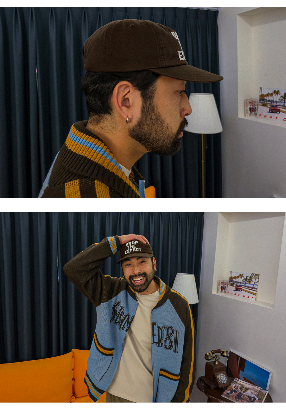배색 자수로 포인트준 오각캡 입니다. 적당한 레터링 크키로 제작되었으며 일반 볼캡이 아닌 오각캡으로 제작되어 좀더 세련된 느낌을 주며 빈티지,캐주얼,스트릿룩등 다양한 룩에도 함께 활용하기 안성맞춤인 캡 입니다. SIZE FREE 모델착용 [KIHOON]색상 : 브라운 / 사이즈 : FREE ![]() ![]() ![]() ![]() ![]() ![]() ![]() ![]()
