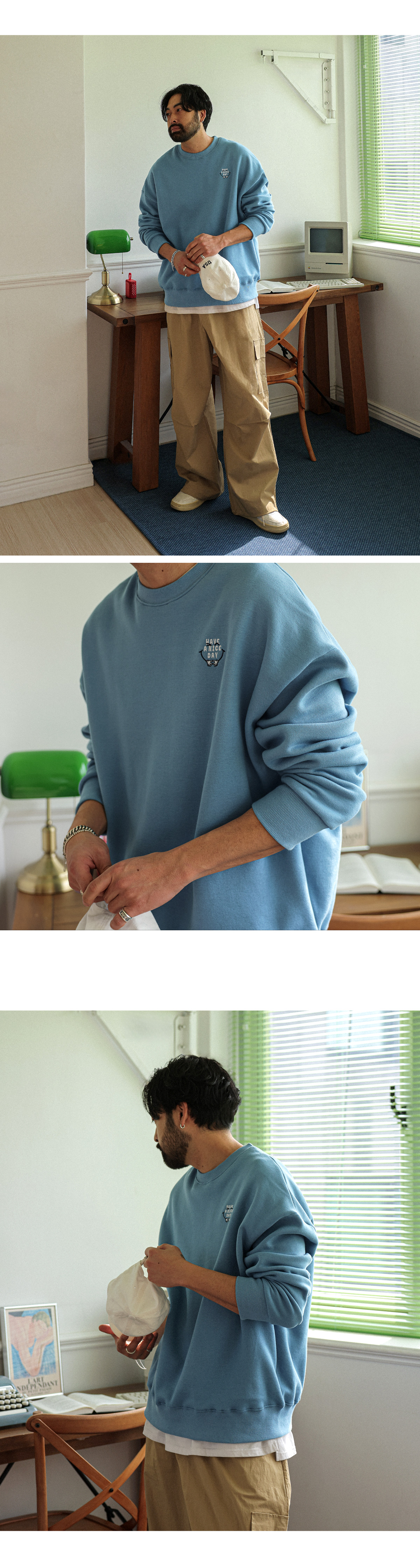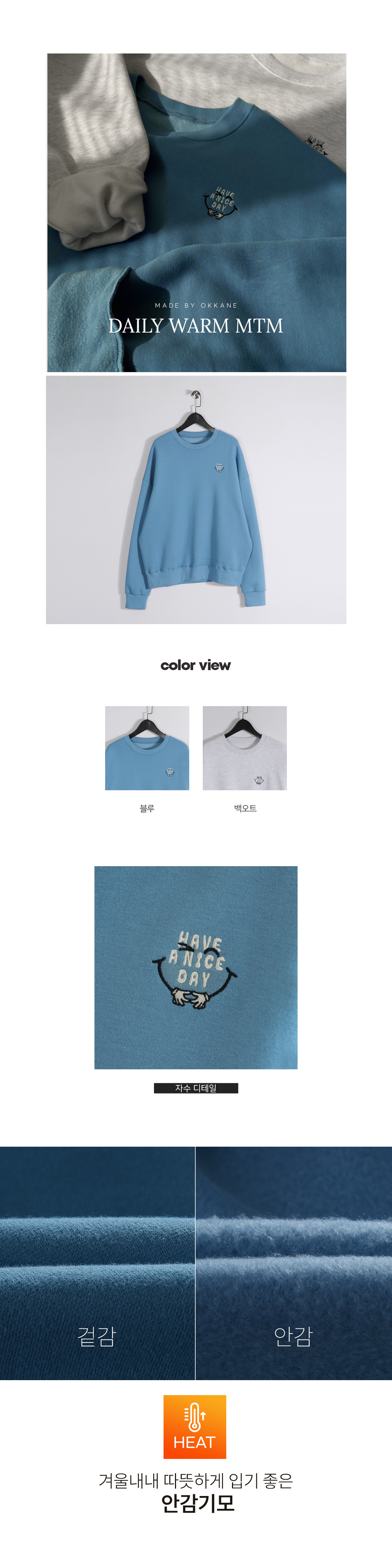 캐주얼한 무드가 돋보이는 기모 맨투맨입니다. 소매와 밑단 시보리 디테일로 안정감 있는 핏을 잡아주어 활동 시에도 편안하게 착용하실 수 있습니다. 부드러운 안감 기모로 보온성을 높여 쌀쌀한 날씨에도 따뜻하게 즐기기 좋습니다. 귀여운 자수 포인트를 더해 밋밋함 없이 스타일을 살려주며 초봄에는 이너로 레이어드 티셔츠와 함께 매치해 단독으로도 멋스럽게 연출할 수 있는 활용도 높은 아이템입니다. SIZE XL-2XL,3XL-4XL,5XL-6XL 모델착용 [KIHOON]색상 : 블루 / 사이즈 : XL-2XL ![]() ![]() ![]() ![]() ![]() ![]() ![]() ![]() ![]()