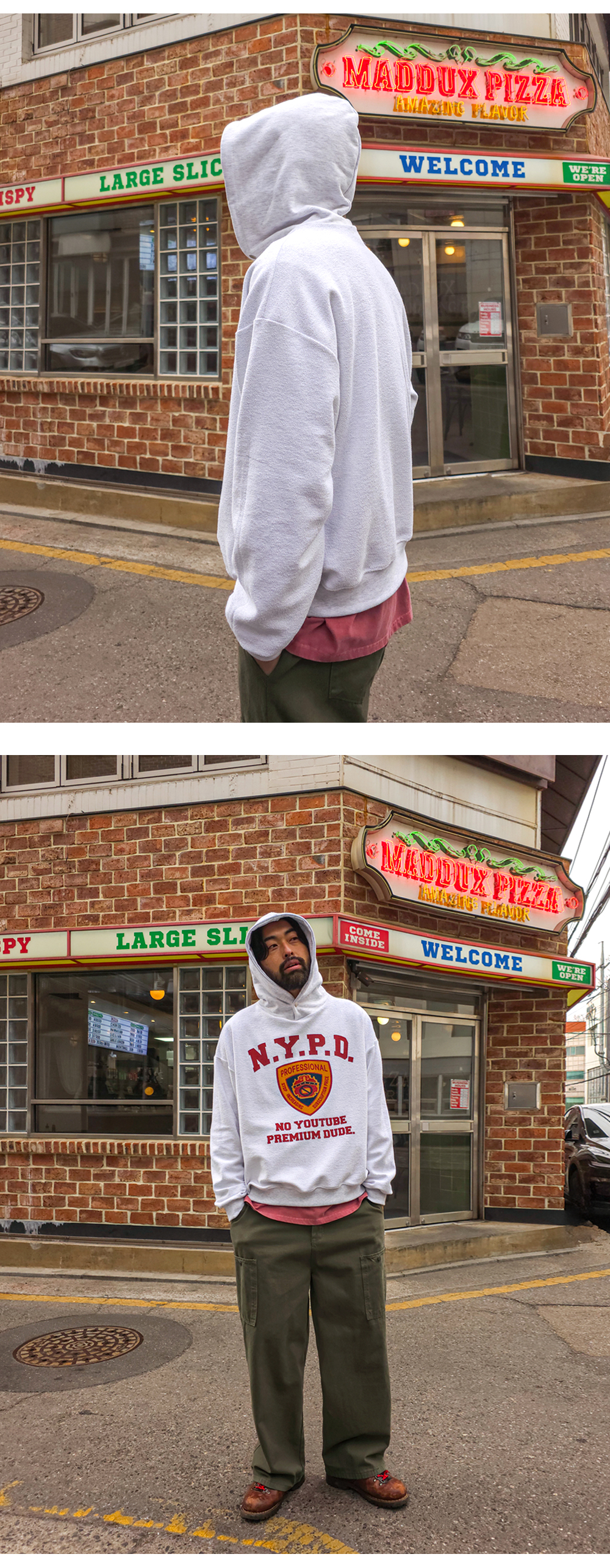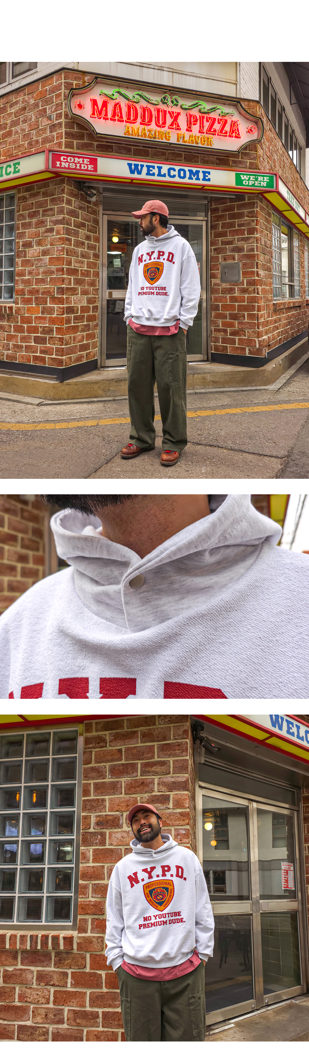 밋밋한 룩에 포인트 주기 좋은 후드티입니다. 처음 핏 그대로 깔끔하게 유지해 주고, 자극 없는 텍스처로 제작하여 맨살에 닿아도 기분 좋은 착용감을 선사해 줍니다. 후드 부분과 달리 옷을 뒤집어 입은 듯한 디자인의 몸판으로 상의 하나만으로도 한 끗 다른 룩을 완성해 줍니다. 넥 라인 스냅 버튼으로 취향에 맞게 조절 가능하여 반하이넥으로도 즐기실 수 있습니다. SIZE FREE 모델착용 [KIHOON]색상 : 백오트 / 사이즈 : FREE ![]() ![]() ![]() ![]() ![]() ![]() ![]() ![]()