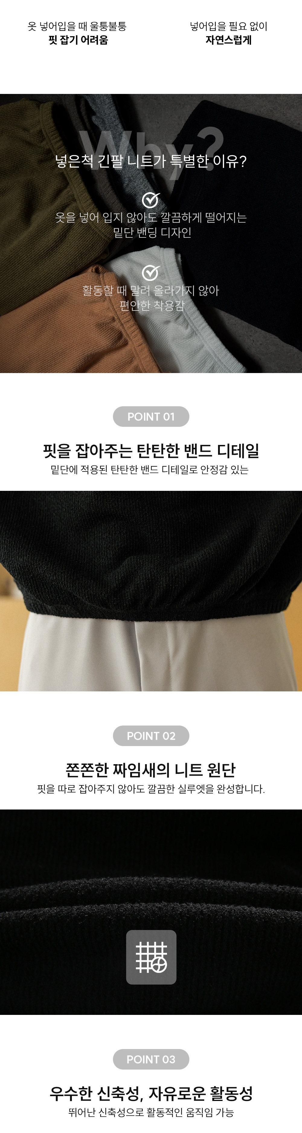 베이직한 디자인으로 데일리하게 활용 가능한 오까네 자체제작 넣은 척 시리즈 니트 긴팔티입니다. 드롭 숄더 디테일로 어깨를 더 넓어보이게 만들어주며 간절기는 물론, 여름 긴팔로도 활용하기 좋은 두께에 쫀쫀한 짜임새로 뛰어난 내구성을 자랑합니다. 핏을 따로 잡아주지 않아도 깔끔한 실루엣을 완성해주는 밑단 밴딩 디자인으로 움직임이 많은 활동에도 안정감 있는 아웃핏을 연출하실 수 있어 평소 옷 매무새 잡기 힘드셨던 분들께 추천드립니다. COLOR 블랙,아이보리,올리브,오렌지,브라운,그레이 SIZE M-L,XL-2XL,3XL-4XL,5XL-6XL 모델착용 [NAMJONG]색상 : 블랙 / 사이즈 : XL-2XL 모델스펙 180cm / 65kg [상의:100(L), 하의:30(L), 270mm] ![]() ![]() ![]() ![]() ![]() ![]() ![]() ![]()