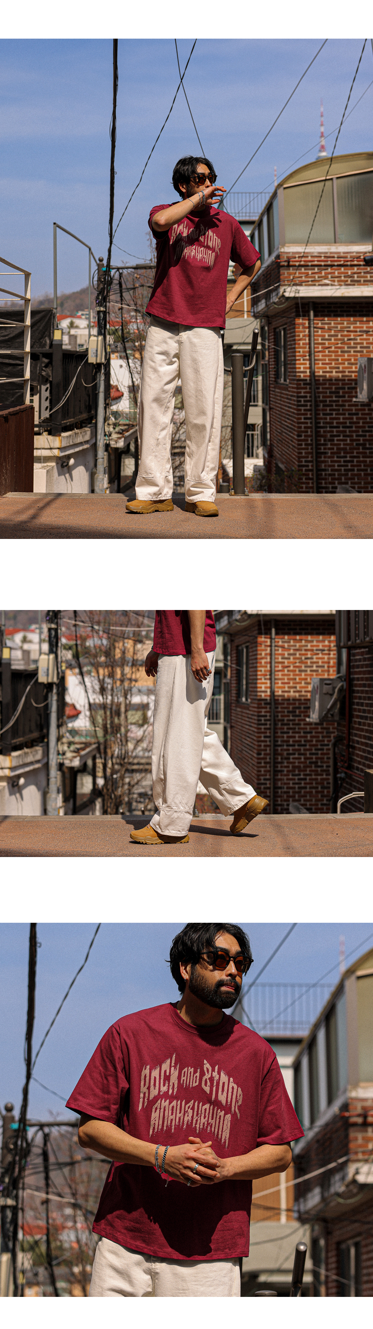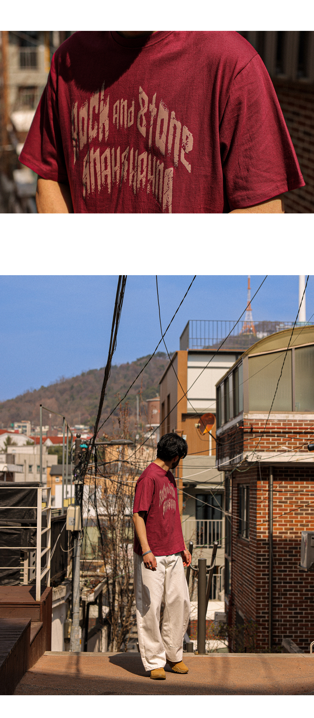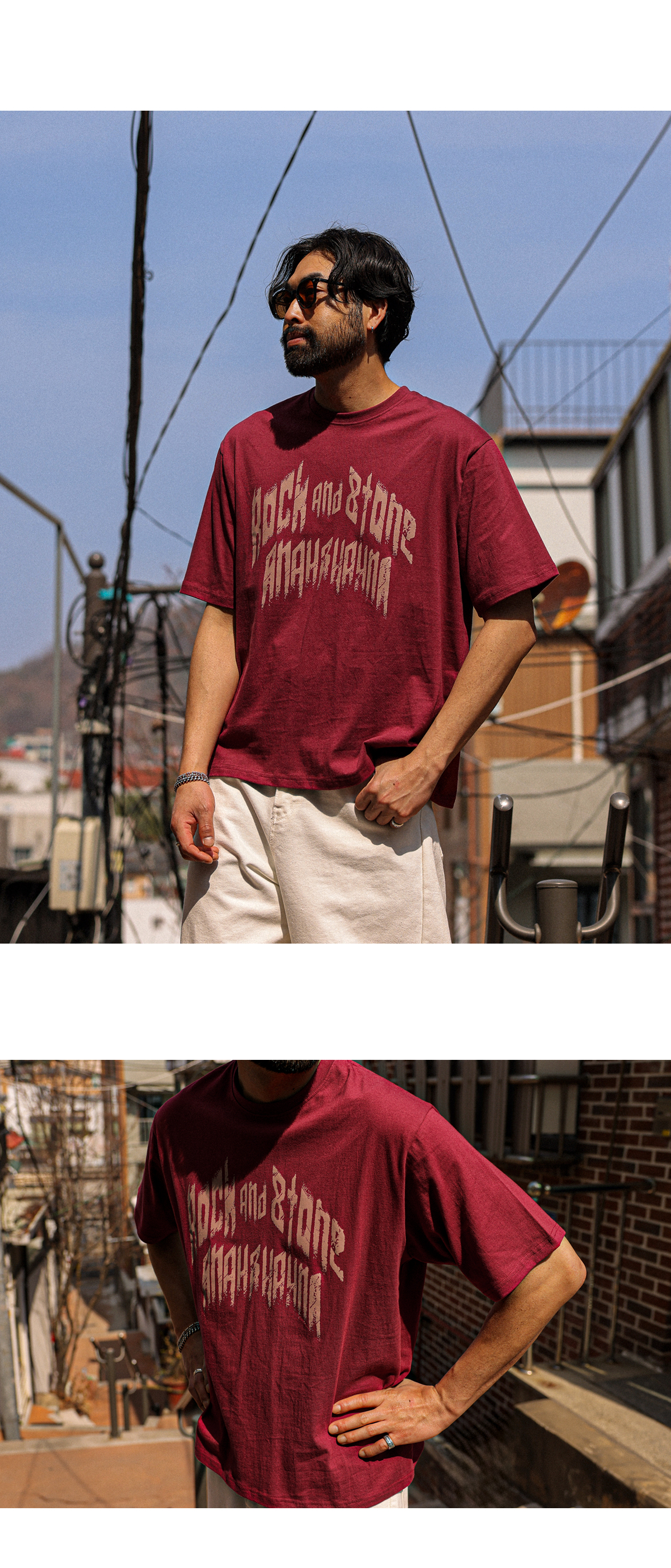 빈티지한 무드의 레터링이 돋보이는 반팔 티셔츠입니다. 배색 레터링 디테일로 감각적인 포인트를 더했으며 면 팬츠,데님 팬츠 등 다양한 아이템과 자연스럽게 어우러집니다. 데일리룩은 물론, 커플룩으로도 활용하기 좋은 아이템으로 스타일리시한 연출이 가능한 아이템 입니다. COLOR 버건디,블랙,백오트,브라운,아이보리 SIZE FREE 모델착용 [KIHOON]색상 : 버건디 / 사이즈 : FREE ![]() ![]() ![]() ![]() ![]() ![]() ![]() ![]()