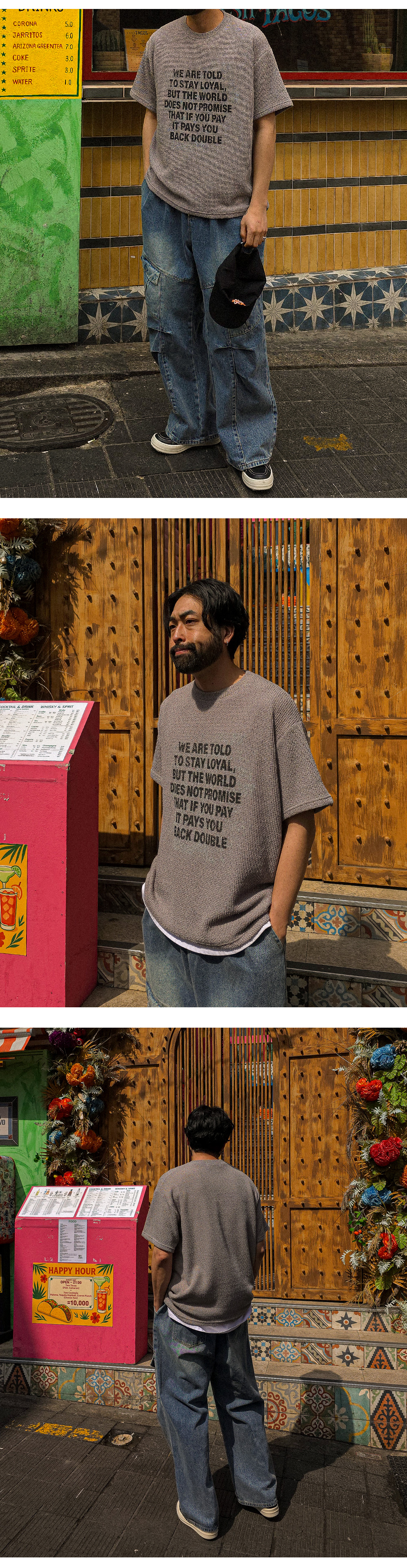 스트릿 무드를 더한 반팔 니트입니다. 니트임에도 착용 시 까슬거림이 적어 편안하며 앞면 레터링 디테일로 포인트를 살렸습니다. 루즈한 핏과 니트 특유의 자연스러운 늘어남으로 여유 있는 실루엣을 제공하며 팬츠에 따라 다양한 코디 연출이 가능한 반팔 니트입니다. COLORS 베이지,블랙,와인,화이트 SIZE FREE 모델착용 [KIHOON]색상 : 베이지 / 사이즈 : FREE ![]() ![]() ![]() ![]() ![]() ![]() ![]() ![]()