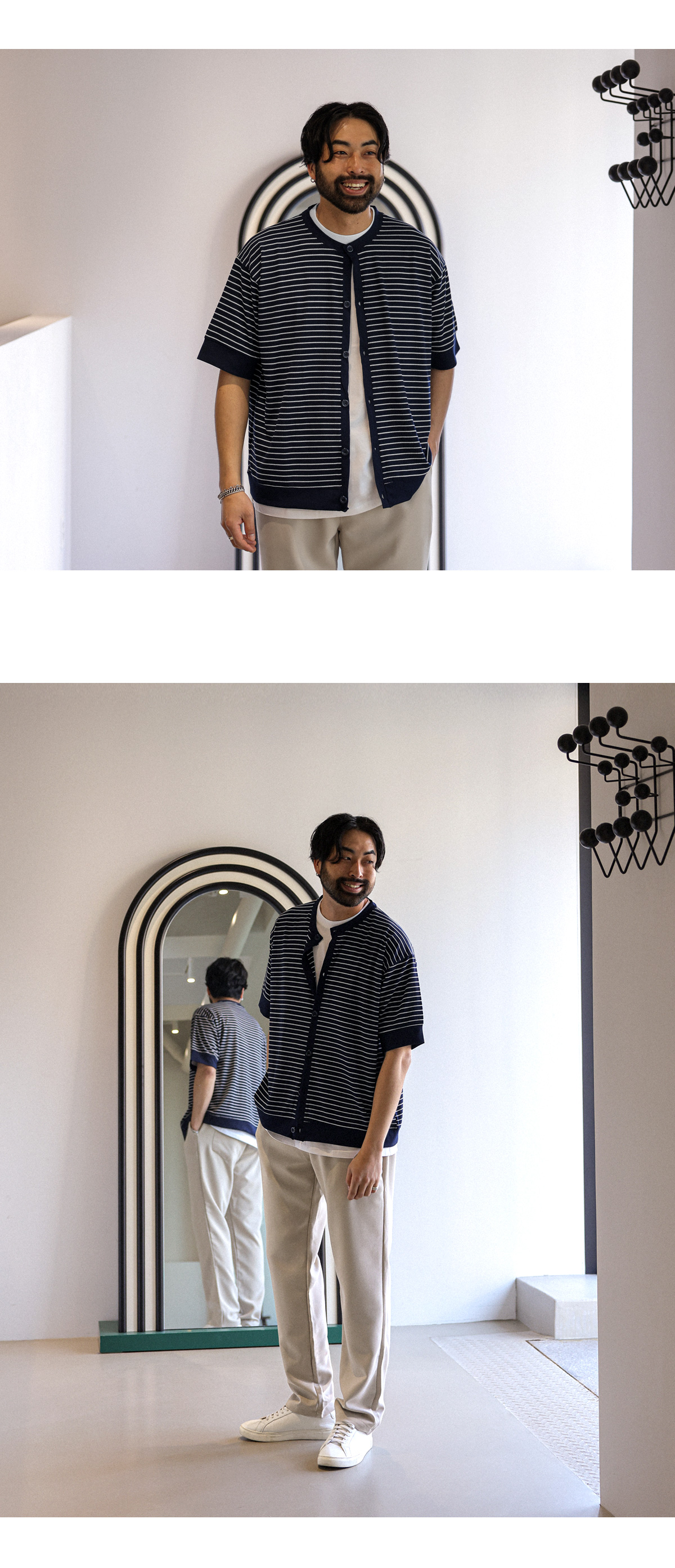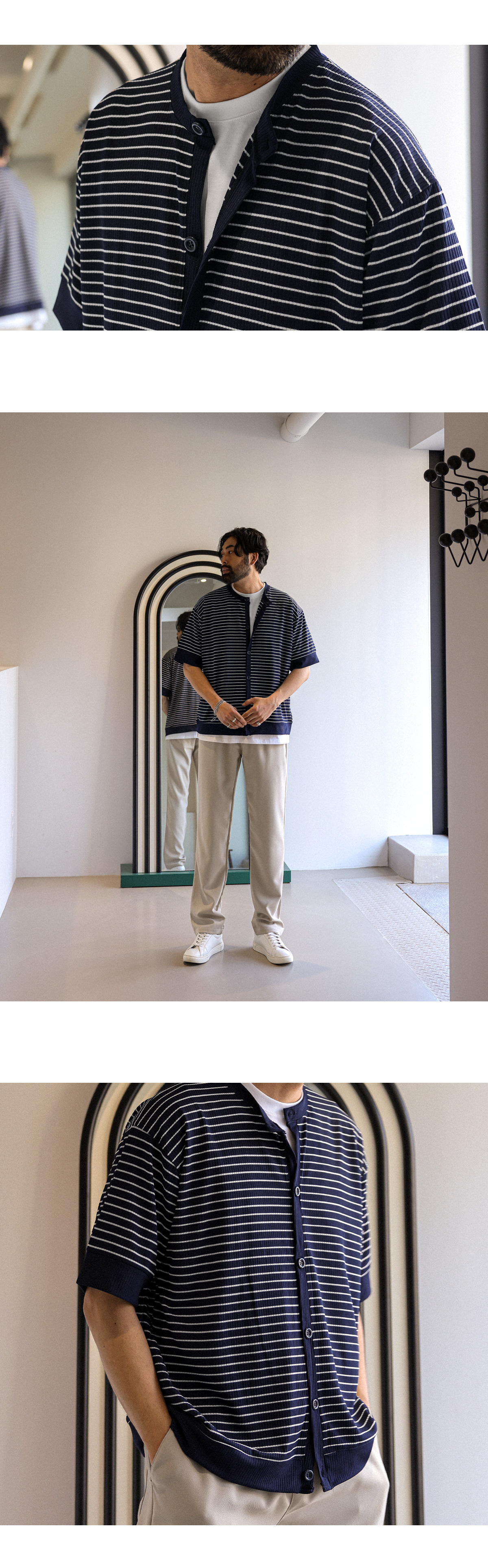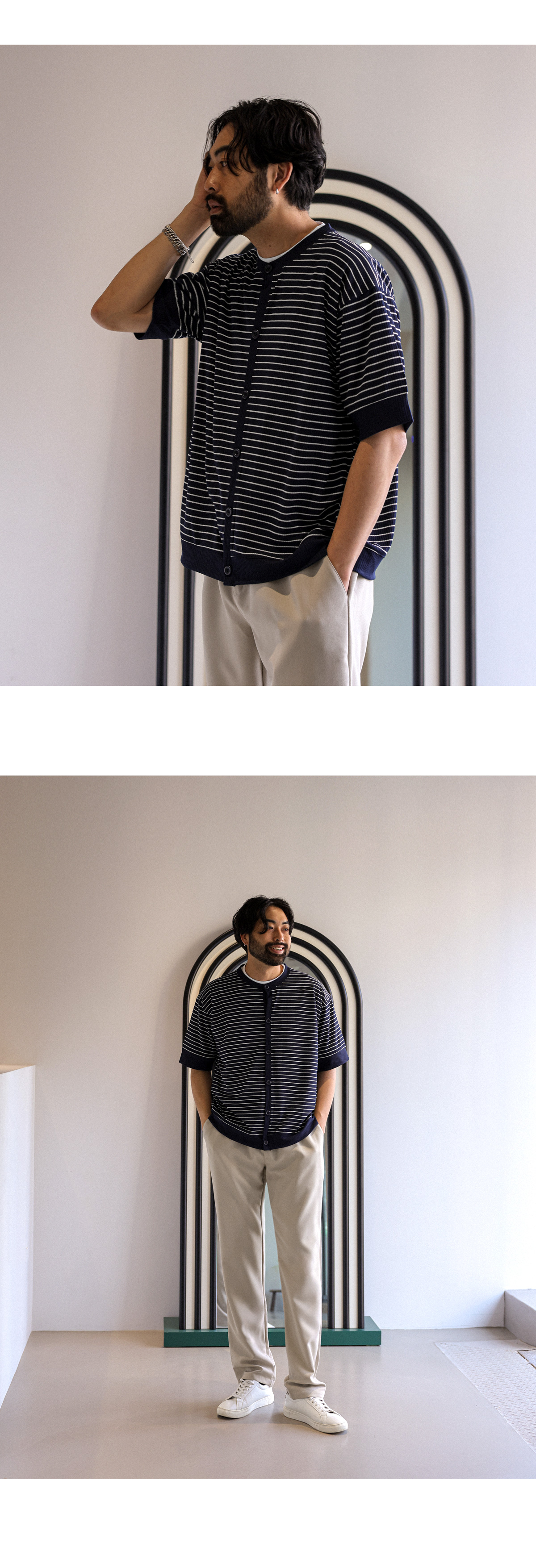 여름에도 가볍고 편안하게 착용하기 좋은 라운드 반팔 가디건입니다. 배색 스트라이프 패턴과 라운드 디자인으로 포인트를 더해 팬츠에 따라 캐주얼룩, 오피스룩, 데이트룩 등 다양한 스타일로 연출할 수 있습니다. 신축성 있는 소재로 제작되어 활동 시에도 편안한 착용감을 제공하며 스타일과 착용감을 모두 만족시켜주는 데일리 아이템입니다. COLOR 네이비톤,화이트톤,블랙톤,그린톤 SIZE M,L,XL,2XL,3XL-4XL 모델착용 [KIHOON]색상 : 네이비톤 / 사이즈 : 2XL ![]() ![]() ![]() ![]() ![]() ![]() ![]() ![]()