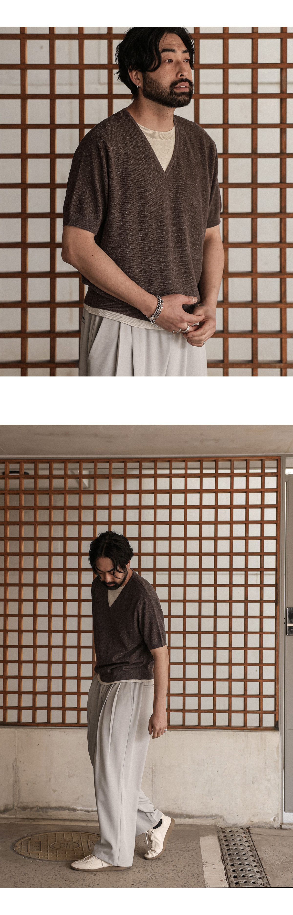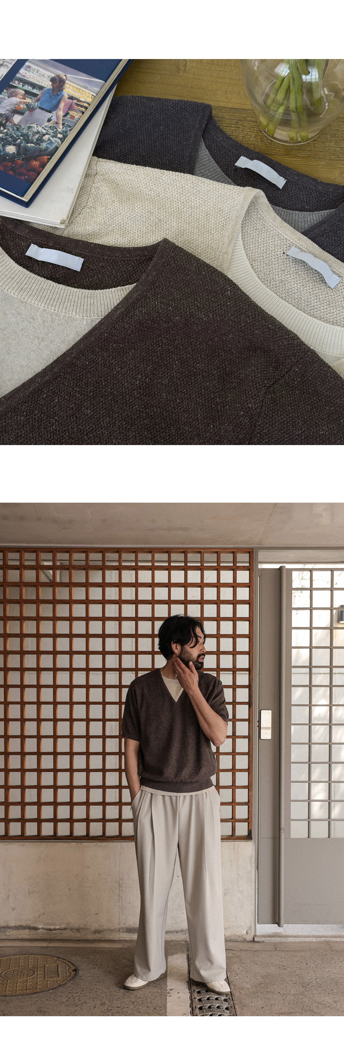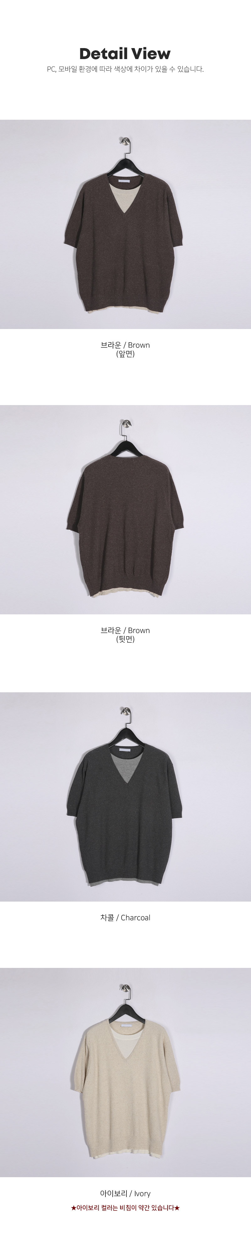 감각적인 무드를 완성해 줄 레이어드 반팔 니트입니다. 우수한 통기성을 자랑하는 시원한 원사를 사용하여 여름철에 착용하셔도 부담이 없고, 레이어드된 듯한 디자인으로 제작해 상의 하나만으로도 자칫 밋밋할 수 있는 룩에 확실한 포인트를 더해 줍니다. 깔끔함을 추구하는 미니멀리스트분들에게 제격인 상의로 취향에 맞는 컬러 초이스하셔서 시즌 내내 즐겨 보시길 추천드립니다. COLOR 브라운,차콜,아이보리 SIZE FREE 모델착용 [KIHOON]색상 : 브라운 / 사이즈 : FREE ![]() ![]() ![]() ![]() ![]() ![]() ![]() ![]()