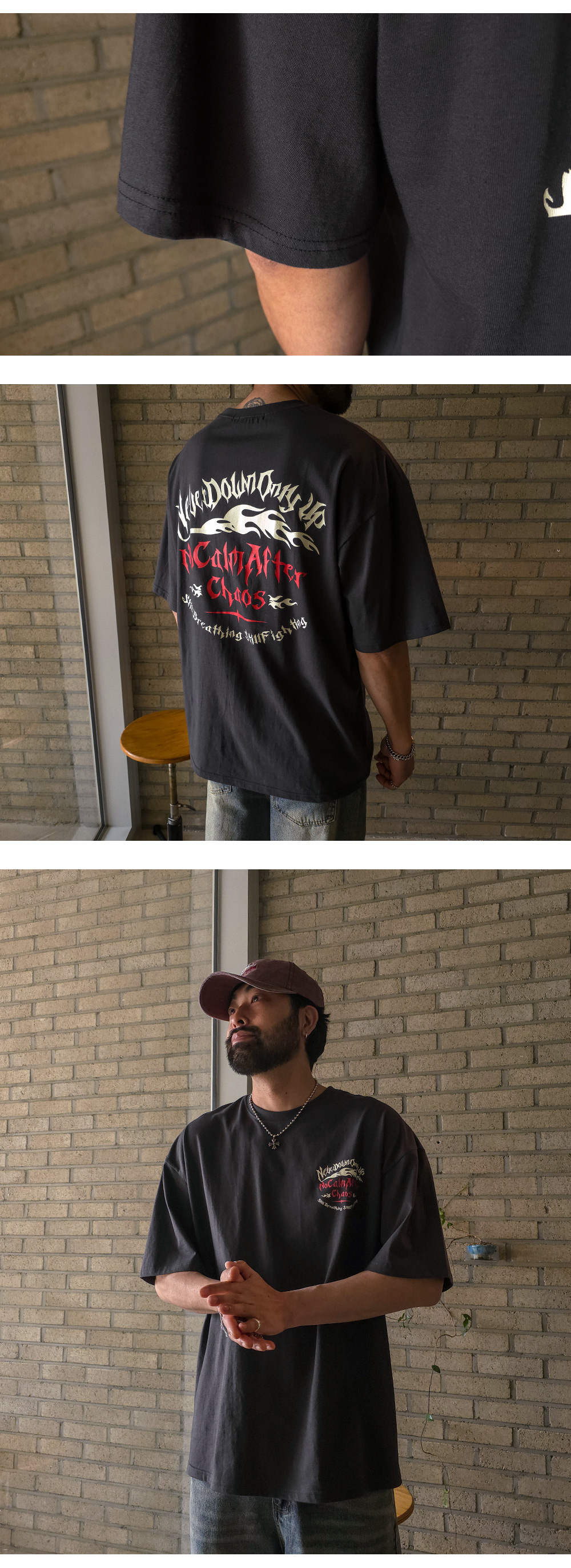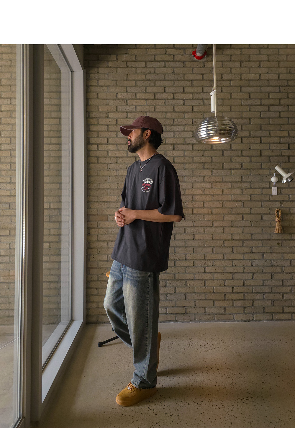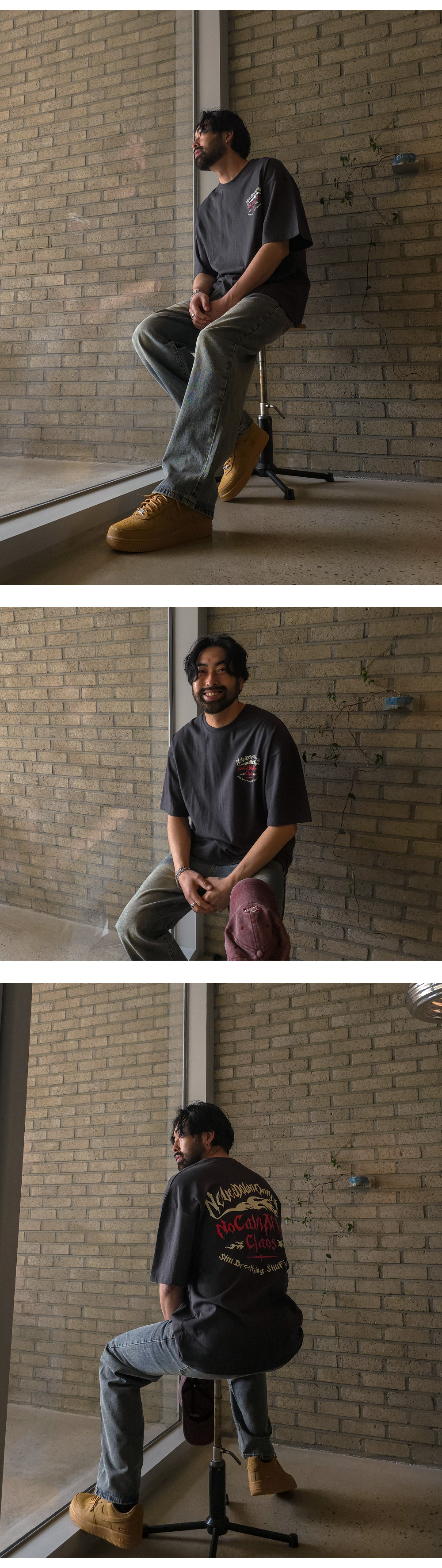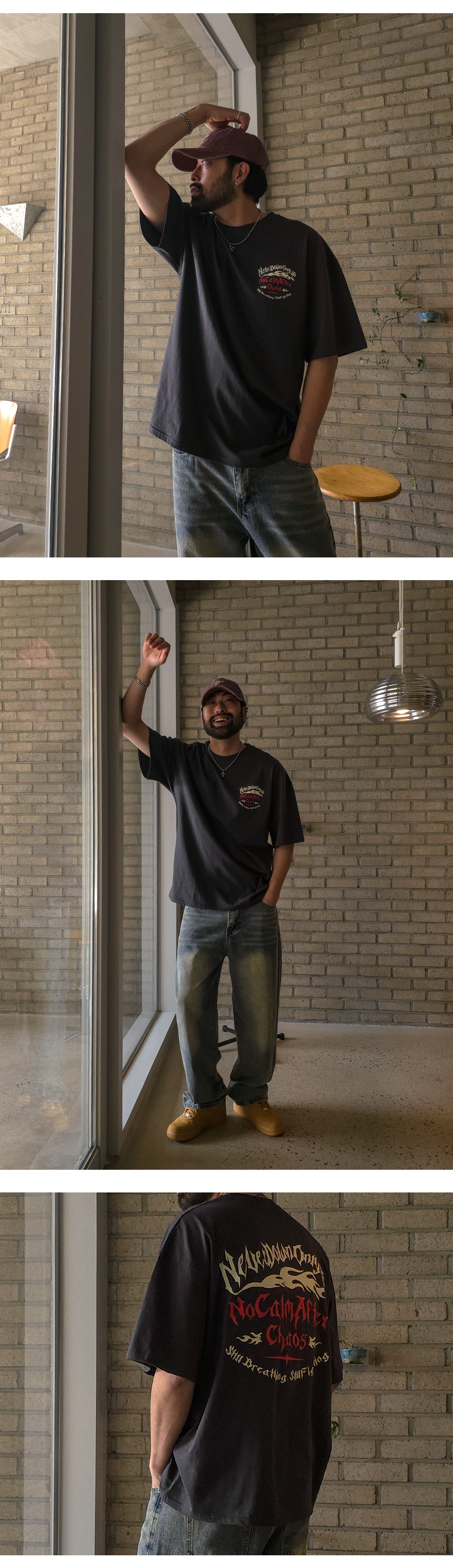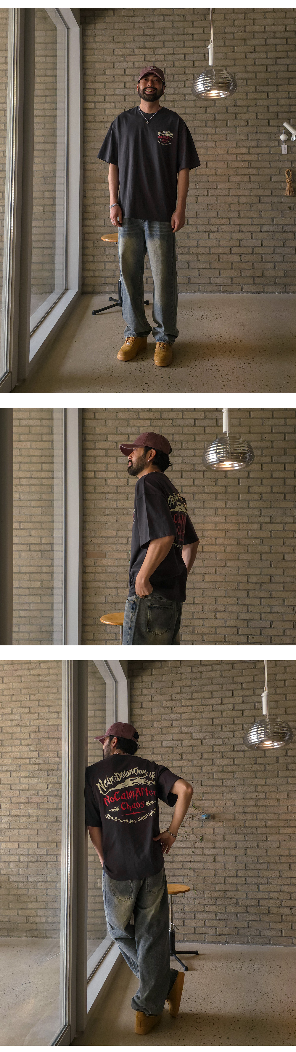 꾸안꾸 룩부터 스트릿까지 확실하게 살려 주는 반팔 티입니다. 코튼 100% 소재와 원단의 퀄리티를 높인 적당한 중량감으로 탄탄하게 핏을 잡아 주어 하루 종일 깔끔한 실루엣을 연출해 줍니다. 과하지 않은 기장의 세미 오버 핏으로 편안한 활동성을 자랑하며, 더블 스티치 마감 처리로 한층 높은 완성도를 느끼실 수 있습니다. 전면과 후면의 유니크한 프린팅이 빈티지한 무드를 더해 주어 밋밋함 없이 포인트 주기 좋습니다. COLOR 차콜,아이보리 SIZE XL-2XL(3번),3XL-4XL(4번),5XL-6XL(6번) 모델착용 [KIHOON]색상 : 차콜 / 사이즈 : XL-2XL(3번) ![]() ![]() ![]() ![]() ![]() ![]() ![]() ![]()