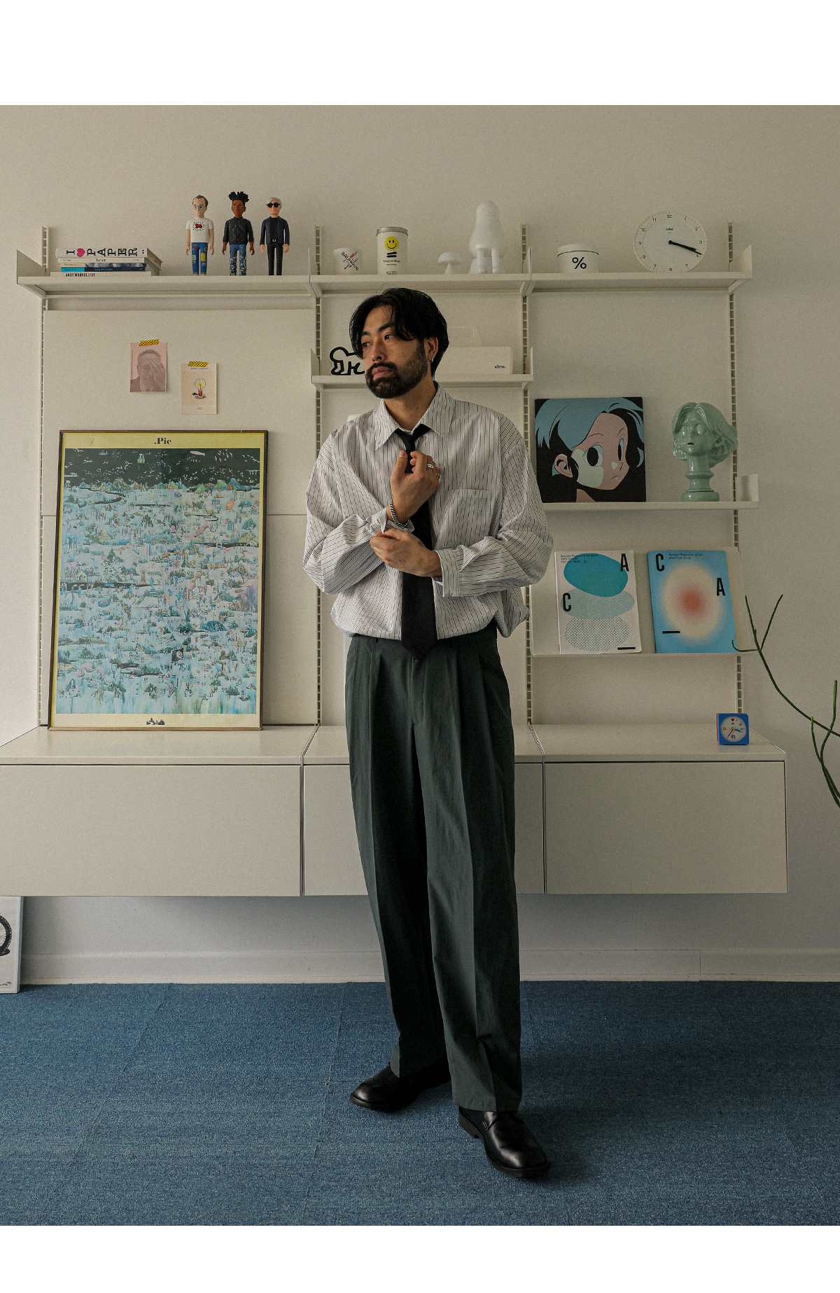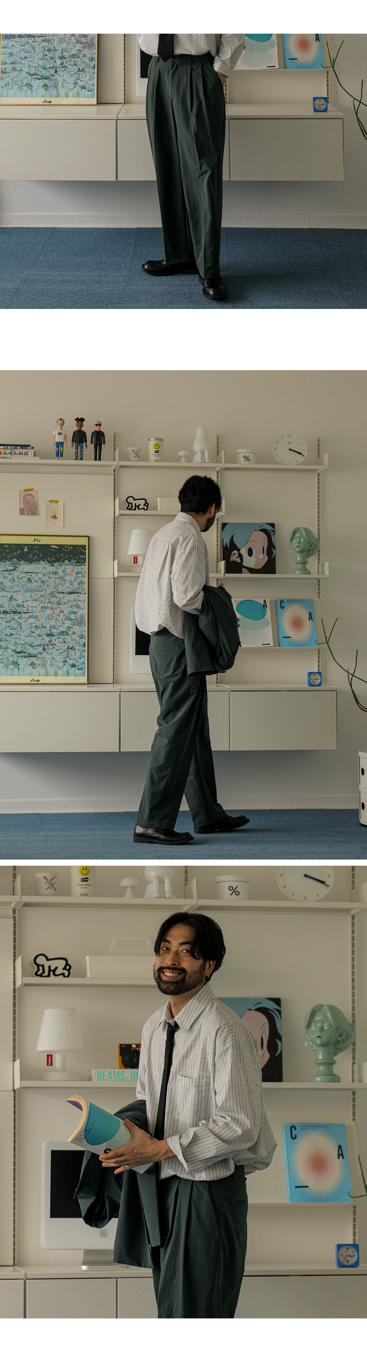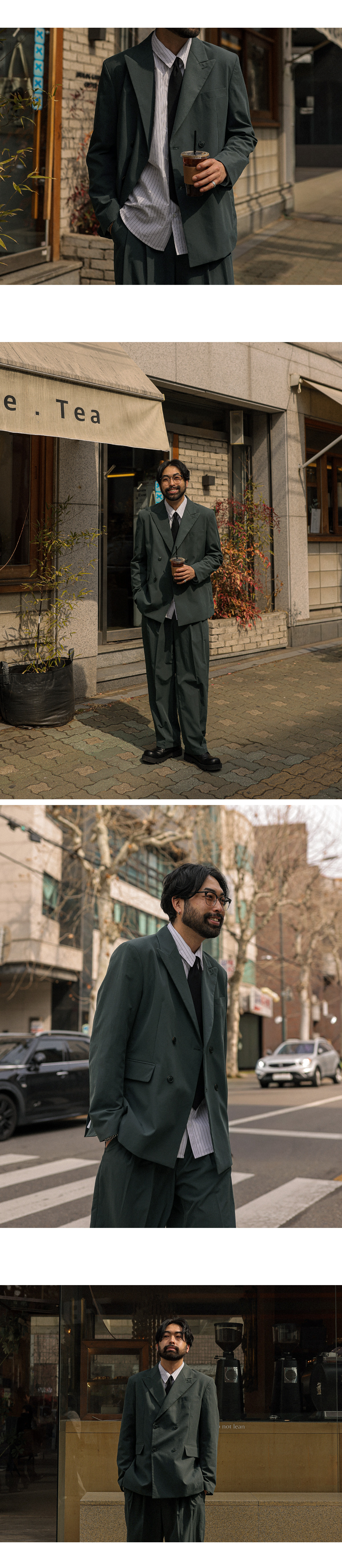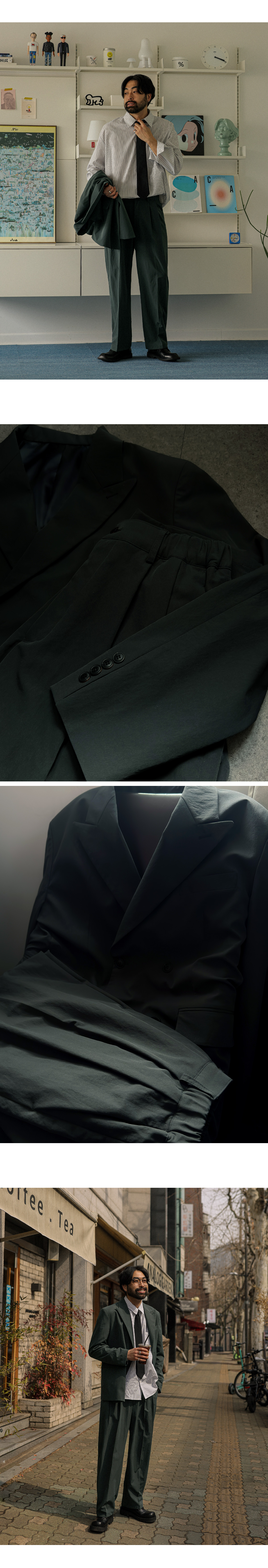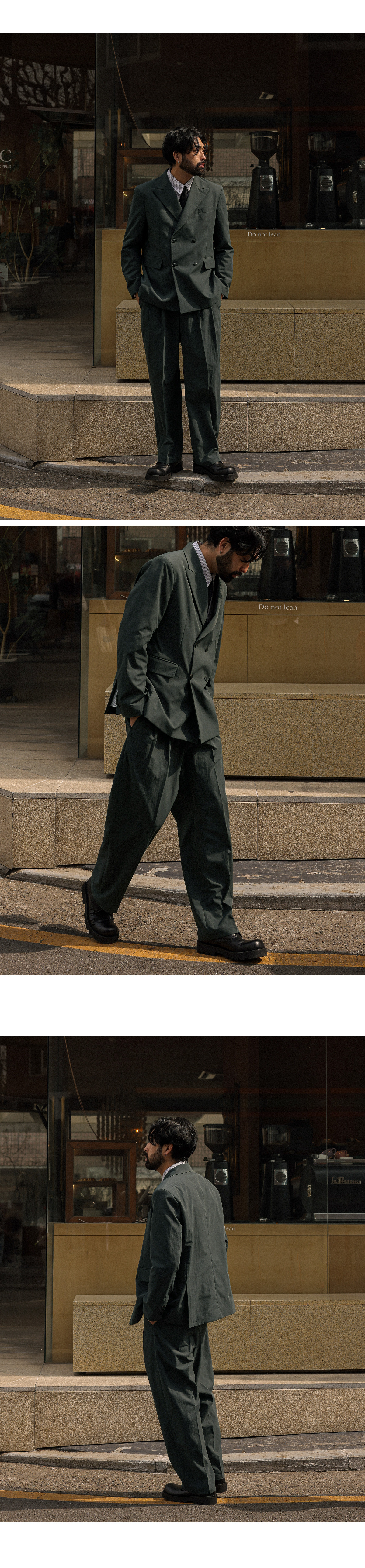 셋업 더블 자켓과 매치하면 트렌디한 수트 스타일을 연출할 수 있으며