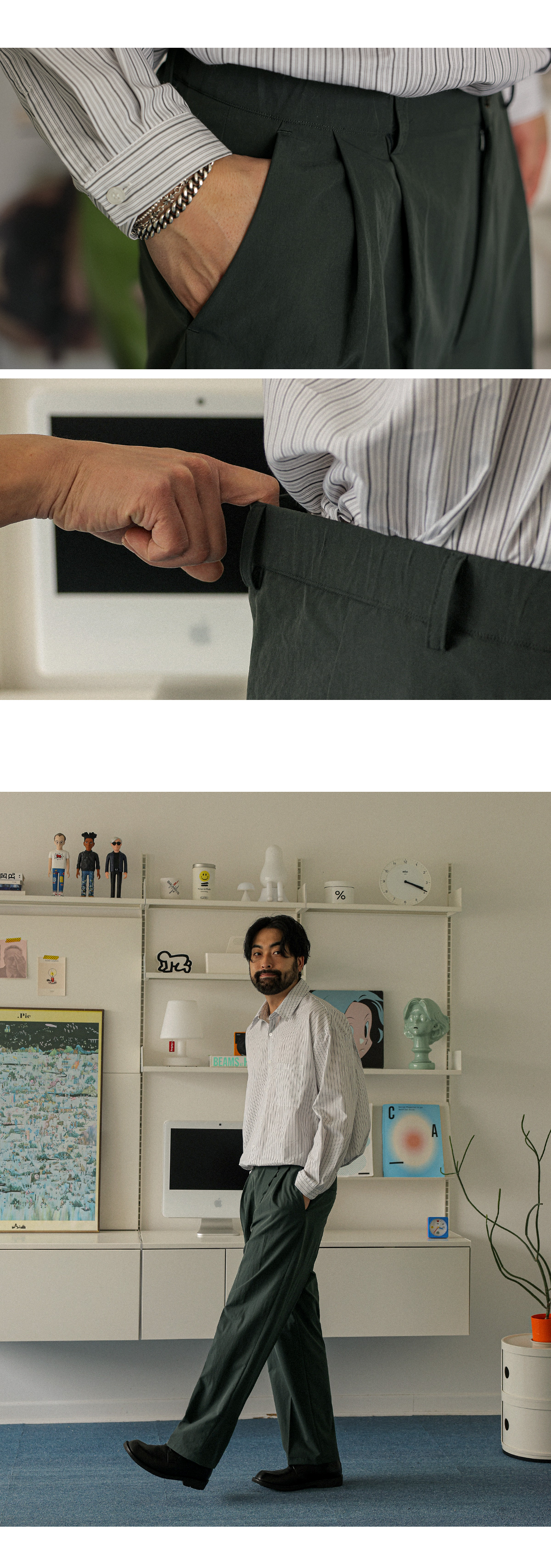 오까네에서 제작한 뒷밴딩 투턱 슬랙스입니다.