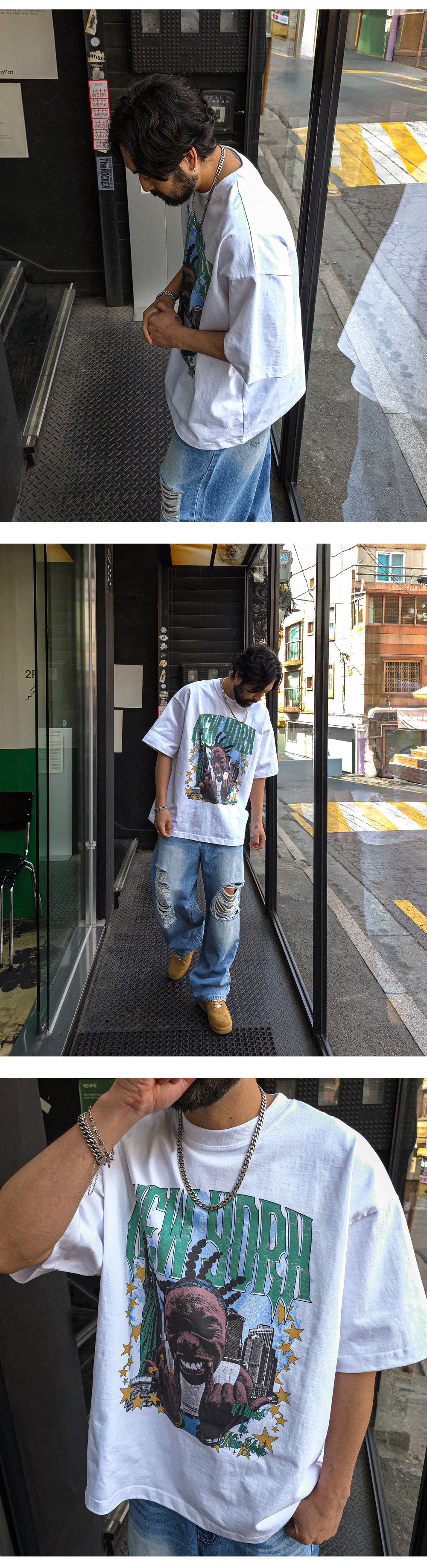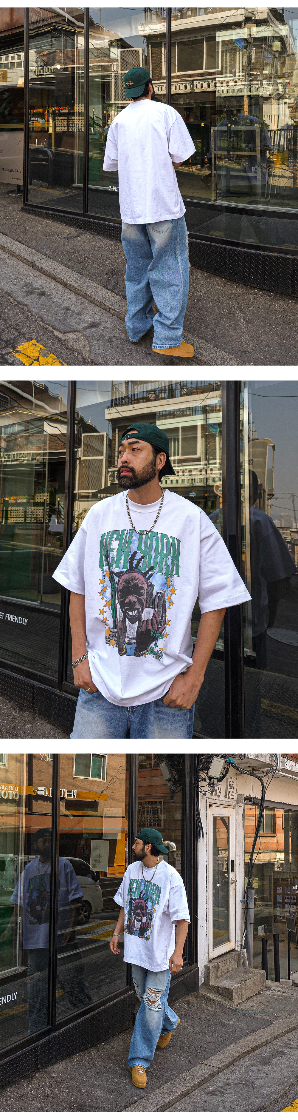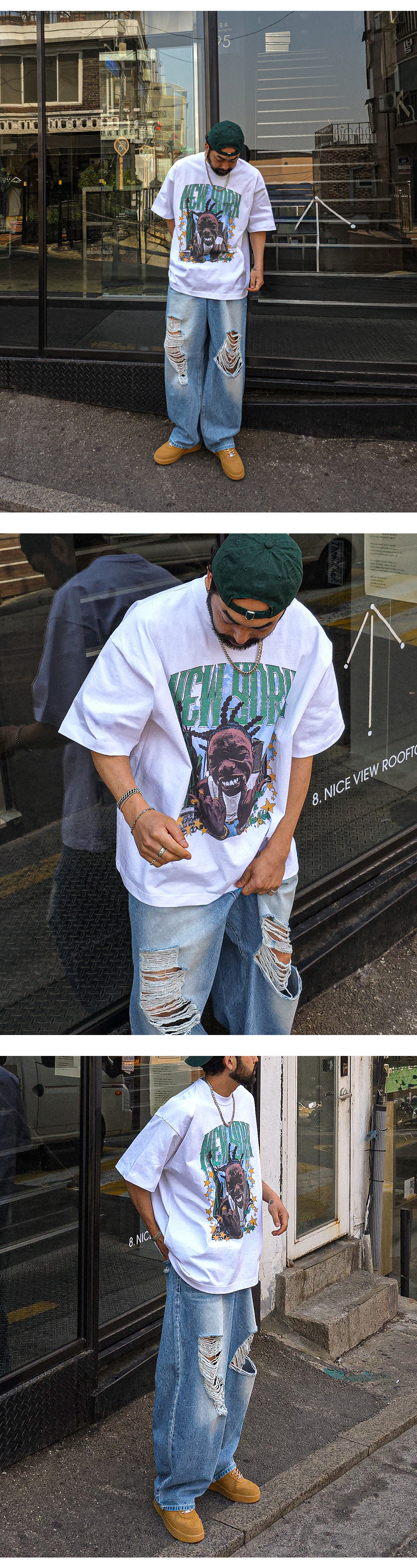 힙한 느낌을 주는 반팔 티셔츠입니다. 유니크한 느낌을 주는 나염으로 포인트를 주었습니다. 사이즈 또한 넉넉한 오버핏으로 제작되었으며 탄탄한 원단감으로 오래도록 입을 수 있어 여름에는 단품으로 봄, 가을에는 점퍼 안에 코디하기에도 좋은 반팔 티셔츠입니다. COLOR 화이트,그레이,브라운,블랙 SIZE XL-2XL(1번),3XL-4XL(2번) 모델착용 [KIHOON]색상 : 화이트 / 사이즈 : 3XL-4XL(2번) ![]() ![]() ![]() ![]() ![]() ![]() ![]() ![]()