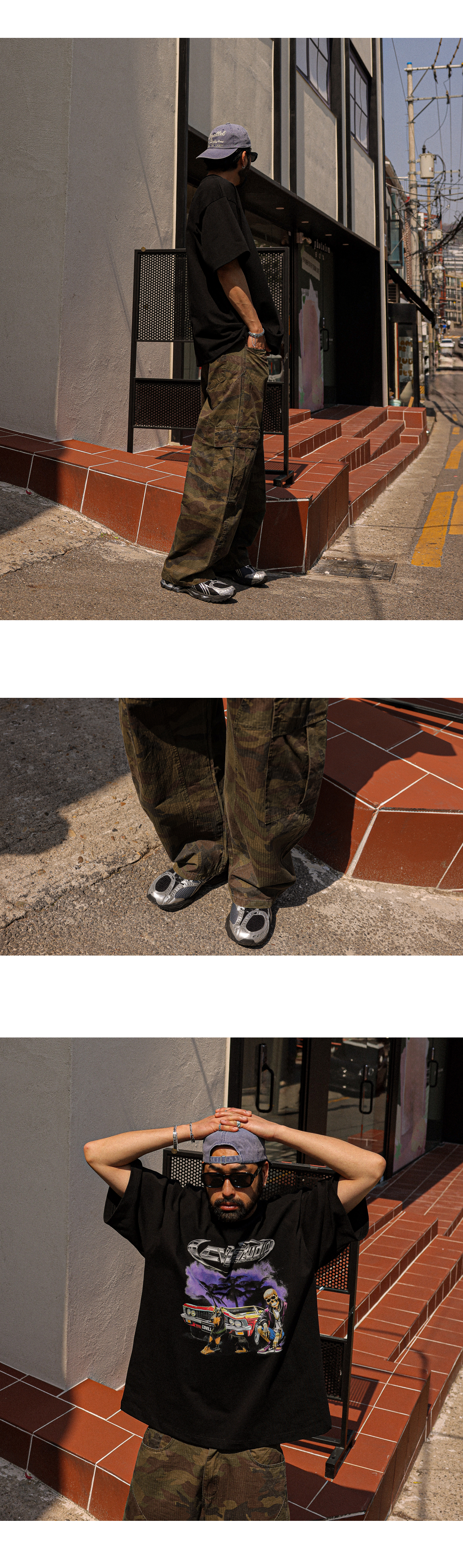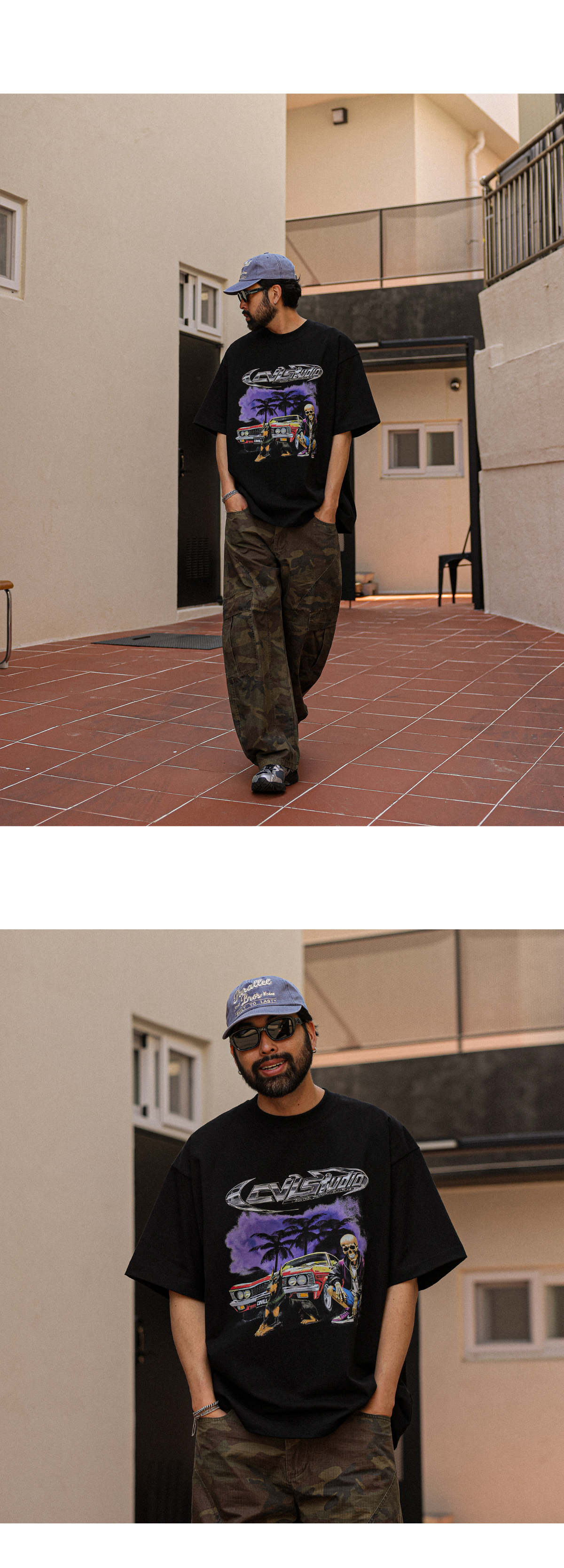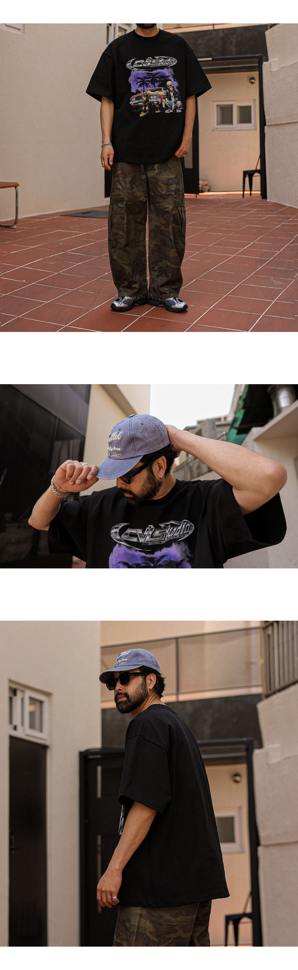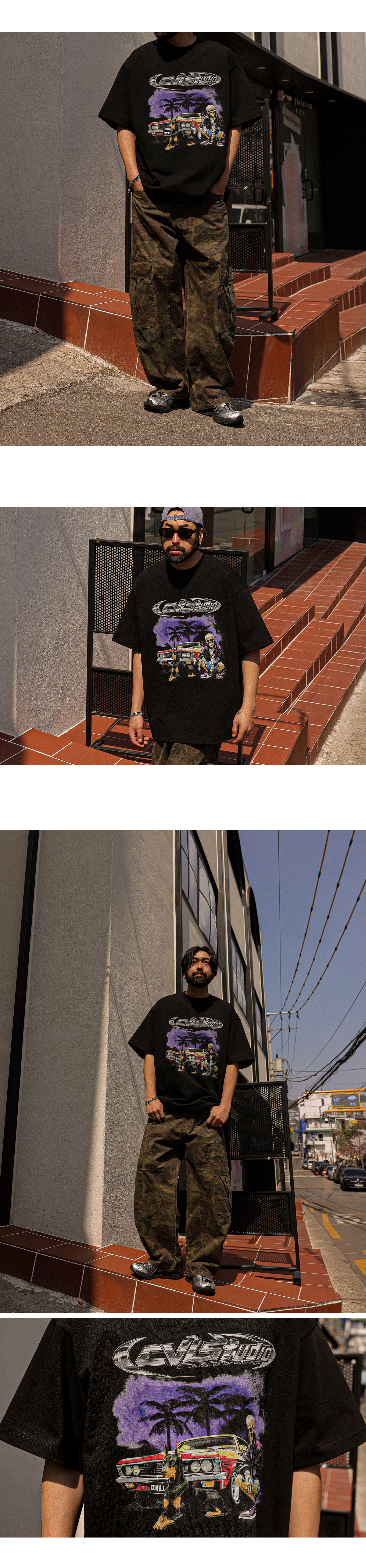 멋스러운 나염이 포인트인 반팔 티셔츠 입니다. 보기만해도 힙한 느낌을 주며 탄탄한 원단감으로 두고두고 입기 좋은 아이템 입니다. 넉넉한 두 사이즈로 제작되어 사이즈 초이스가 편안하며 반팔 자체가 포인트가 되어 데님,면팬츠는 물론 좀더 스트릿한 팬츠와 함께 매치하는걸 추천드립니다. COLOR 블랙,차콜,화이트 SIZE XL-2XL(1번),3XL-4XL(2번) 모델착용 [KIHOON]색상 : 블랙 / 사이즈 : 3XL-4XL(2번) ![]() ![]() ![]() ![]() ![]() ![]() ![]() ![]()
