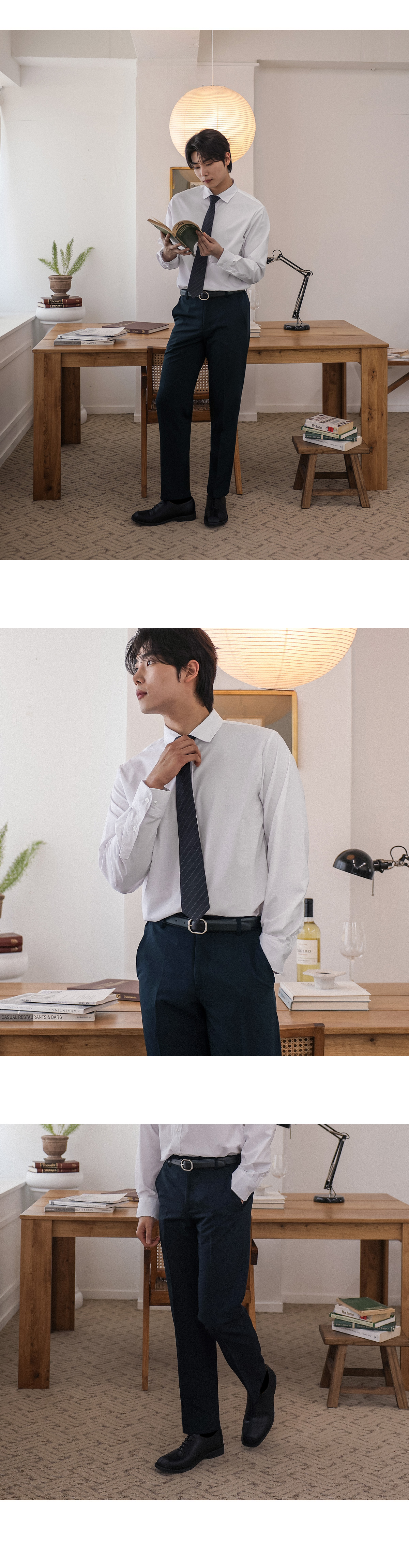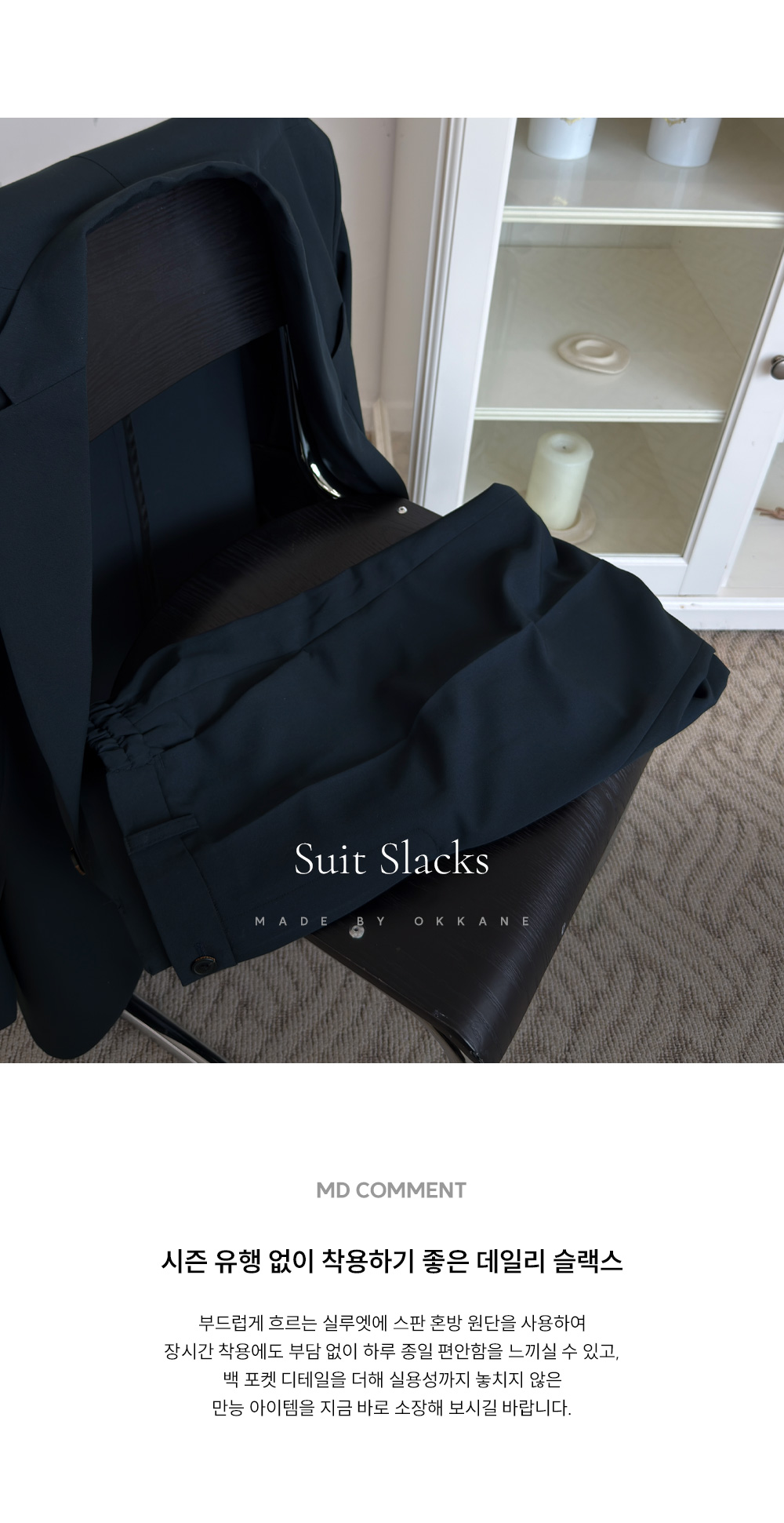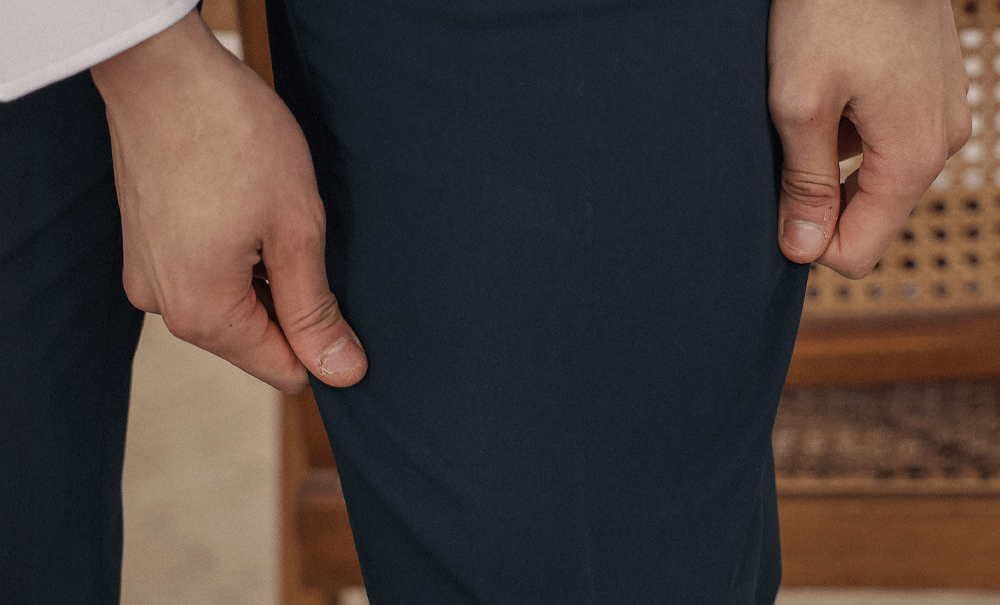 바쁜 아침, 고민 없이 완벽한 룩을 완성해 줄 사이드밴딩 슬랙스를 소개합니다. 부드럽게 흐르는 실루엣에 스판 혼방 원단과 사이드 밴딩으로 제작되어 장시간 착용에도 부담 없이 하루 종일 편안함을 느끼실 수 있고, 백 포켓 디테일을 더해 실용성까지 놓치지 않았습니다. 셋업 상품인 블레이저와 매치해 포멀하게, 때로는 맨투맨이나 니트, 긴팔 티 등과 조합해 캐주얼한룩으로도 안성 맞춤인 아이템 입니다. COLOR 네이비 SIZE M-L,XL,2XL,3XL,4XL,5XL,6XL-7XL 모델착용 [HOYOONG]색상 : 네이비 / 사이즈 : M-L 모델스펙 183cm / 73kg [상의:100(L), 하의:30(L), 270mm]