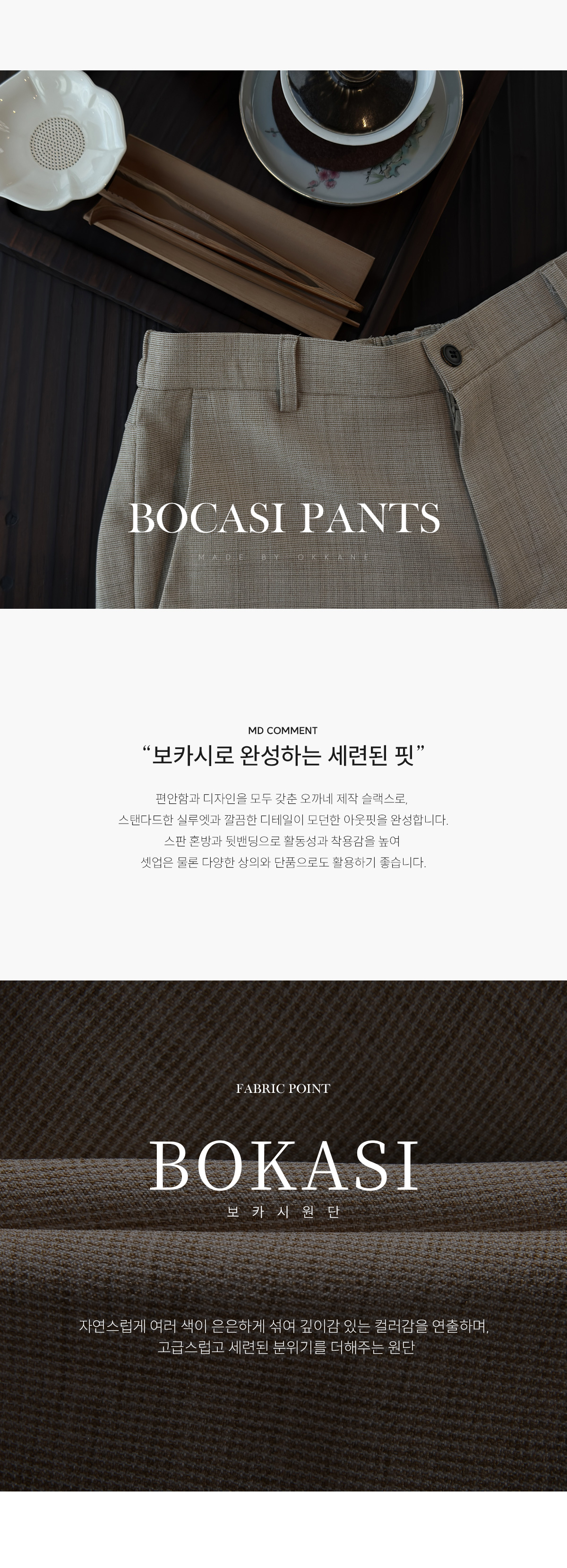 편안함과 디자인 모두 놓치지 않은 오까네 자체 제작 슬랙스입니다. 스탠다드한 실루엣과 깔끔한 사선 포켓으로 모던하고 세련된 아웃핏을 완성해 주고, 움직임이 불편한 타 슬랙스와는 달리 스판 혼방 소재를 사용하여 높은 활동성을 선사합니다. 군더더기 없는 허리 라인에 뒷밴딩 처리를 하여 장시간 활동에도 부담이 없습니다. 베이직한 컬러로 준비했으니 하나쯤 소장하셔서 자켓과 매치해 셋업으로도, 맨투맨, 셔츠, 티셔츠 등 단품으로도 즐겨보시길 바랍니다. COLOR 베이지 SIZE M-L,XL,2XL,3XL,4XL,5XL,6XL-7XL 모델착용 [NAMJONG]색상 : 베이지 / 사이즈 : M-L 모델스펙 180cm / 65kg [상의:100(L), 하의:30(L), 270mm]