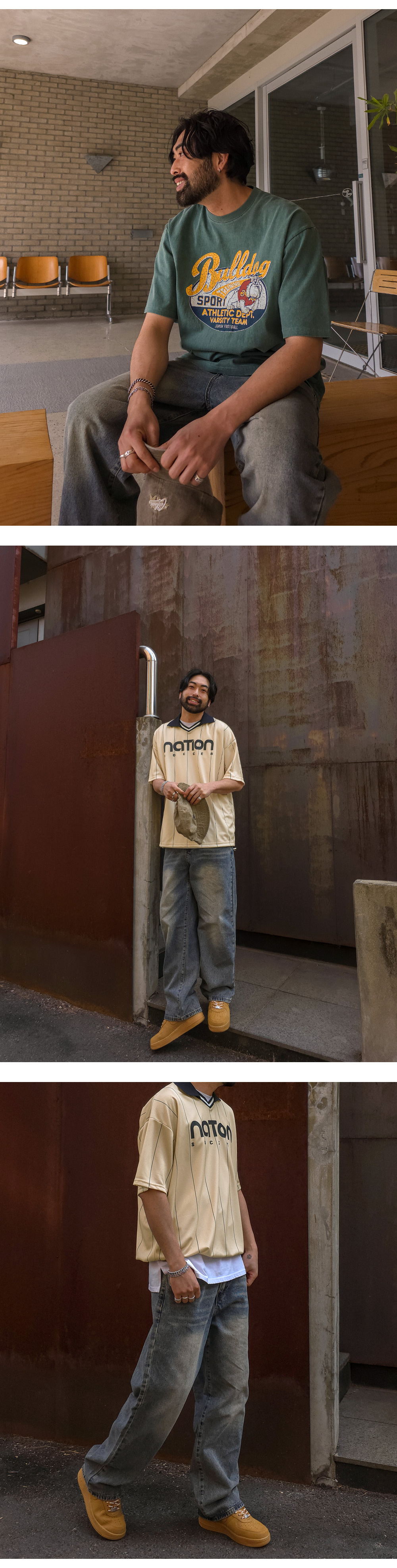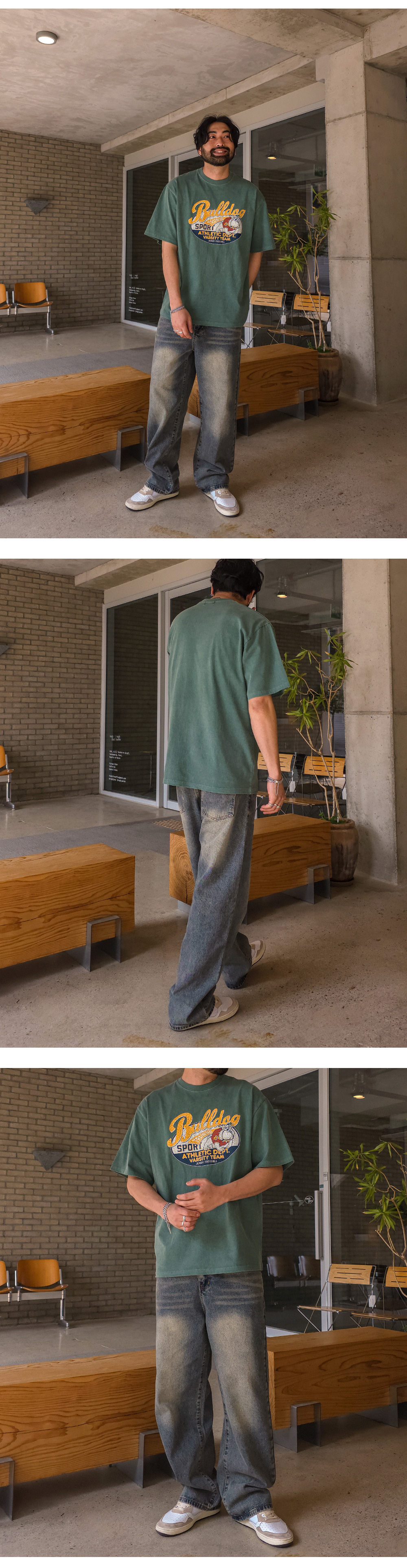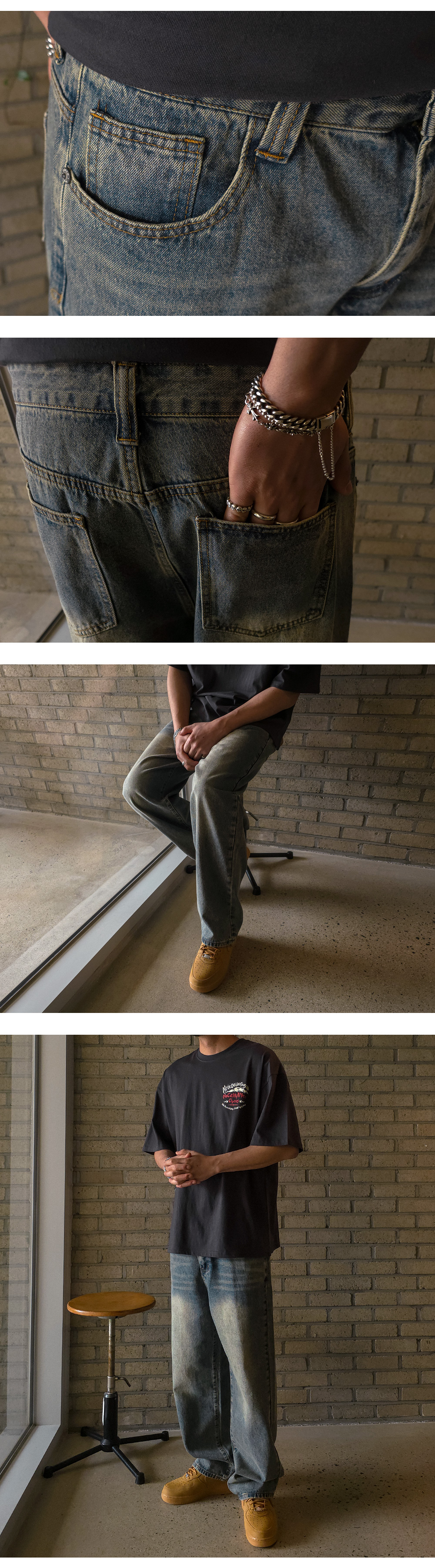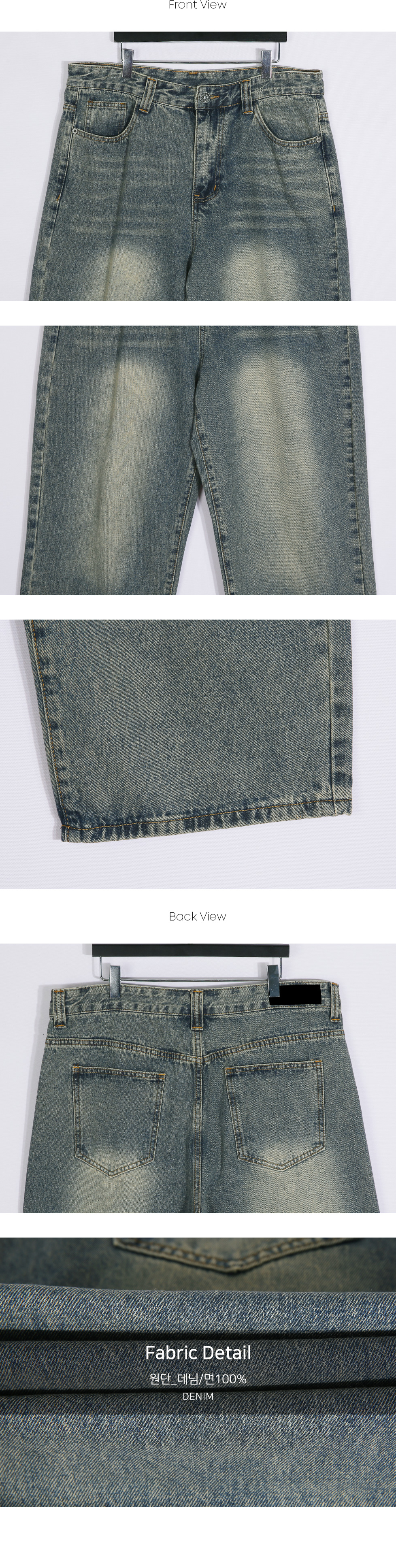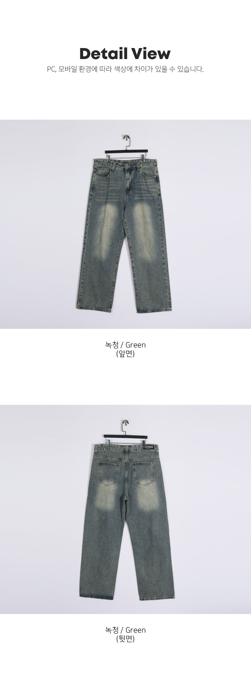 특유의 워싱으로 포인트를 살린 데님 팬츠입니다. 밀도 높은 데님 소재로 원단 고유의 텍스처가 살아 있어 입는 순간 견고함을 느끼실 수 있고, 핏을 깔끔하게 잡아 주며, 잦은 착용에도 형태 변형이 적습니다. 은은한 워싱이 스타일리시한 디테일을 더해 단조로운 일상 룩에 확실한 존재감을 드러내 줍니다. 이지하게 떨어지는 세미 와이드 핏으로 체형을 자연스럽게 커버해 주면서도, 깔끔한 무드를 유지해 데일리부터 캐주얼까지 활용도 높습니다. COLOR 녹청 SIZE 30,32,34,36,38,40,42,44,46 모델착용 [KIHOON]색상 : 녹청 / 사이즈 : 36 ![]() ![]() ![]() ![]() ![]() ![]() ![]() ![]() ![]() ![]()