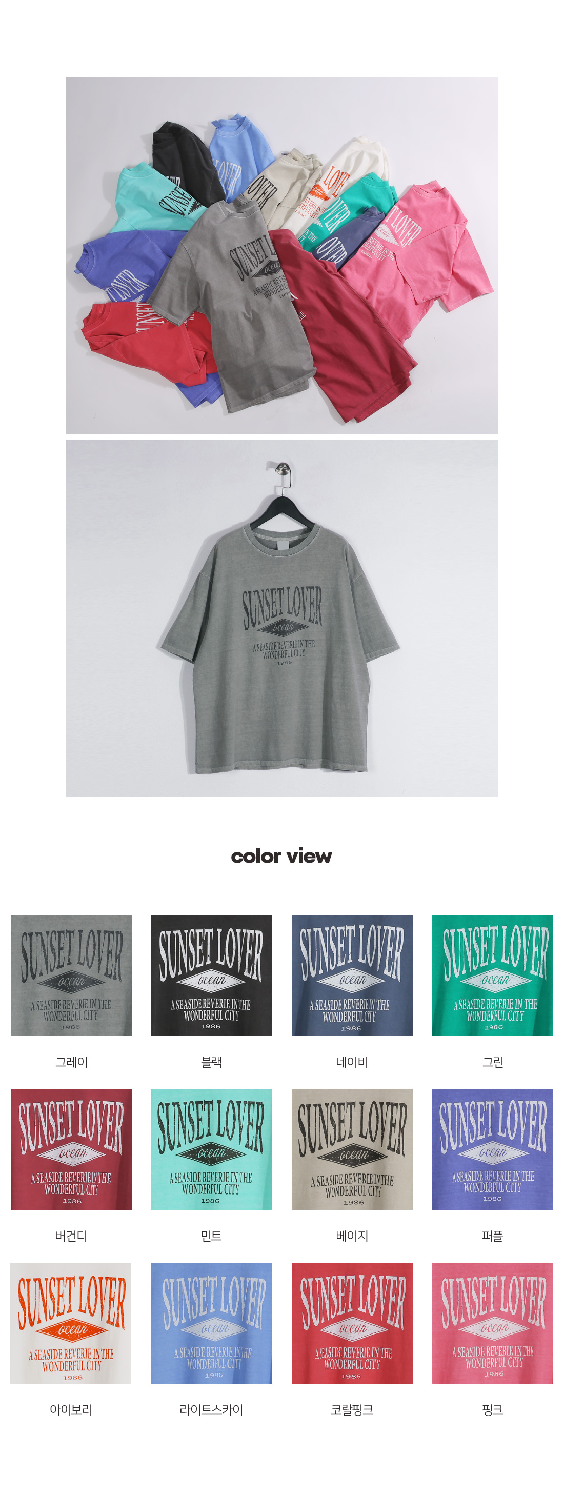 빈티지함과 깔끔함이 공존하는 피그먼트 반팔 티셔츠 입니다. 전체적인 피그먼트 워싱에 배색 레터링으로 포인트를 주었습니다. 루즈핏으로 여유로운 착용감은 물론 팬츠에 따라 다른 느낌을 주어 컬러별로 소장 하기에도 좋고 커플룩으로도 추천 드리는 반팔 티셔츠 입니다. COLOR 그레이,블랙,네이비,그린,버건디,민트,베이지,퍼플,아이보리,라이트스카이,코랄핑크,핑크 SIZE M-L,XL,2XL-3XL,4XL-5XL 모델착용 [KIHOON]색상 : 그레이 / 사이즈 : 2XL-3XL ![]() ![]() ![]() ![]() ![]() ![]() ![]() ![]() ![]()