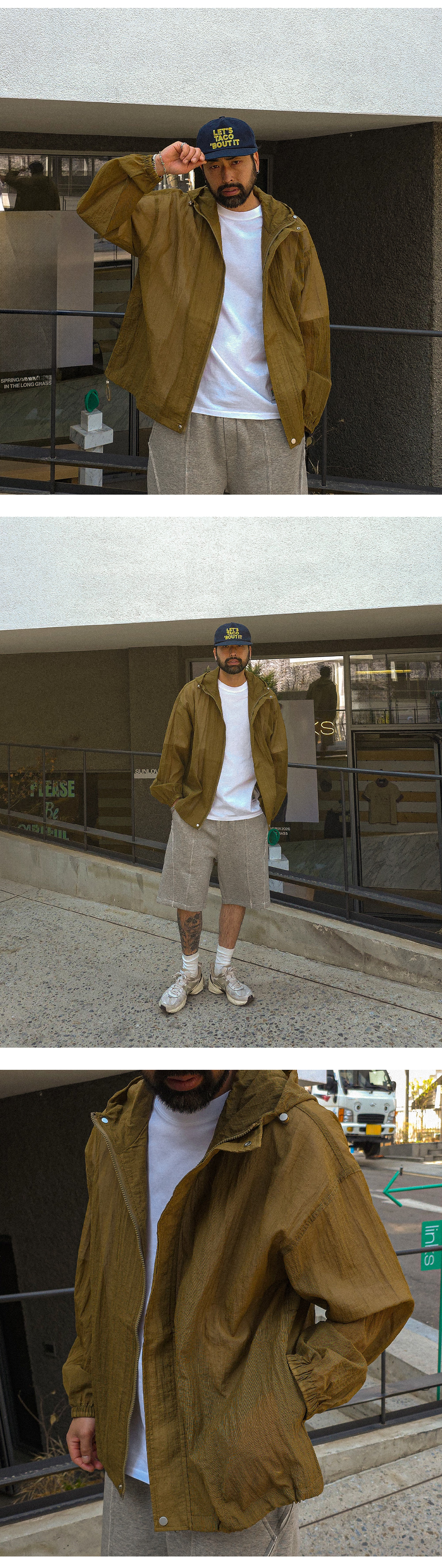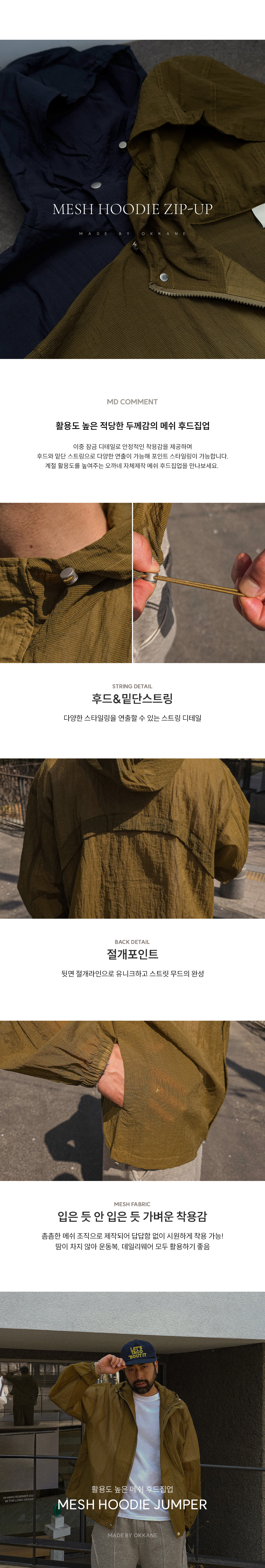 흔한 후드집업과 차별화된 메쉬 후드 집업입니다. 초가을까지 활용 가능한 적당한 두께감으로 제작되어 계절 활용도가 높습니다. 이중 잠금 디테일로 안정적인 착용감을 제공하며 후드와 밑단 스트링으로 다양한 연출이 가능해 포인트 스타일링이 가능합니다. 오버사이즈 핏으로 넉넉한 착용감을 자랑하며 애슬레저룩, 휴양지룩, 스트릿룩 등 다양한 스타일에 활용하기 좋은 아이템 입니다. COLOR 카키,네이비 SIZE L-2XL,3XL-4XL 모델착용 [KIHOON]색상 : 카키 / 사이즈 : 3XL-4XL ![]() ![]() ![]() ![]() ![]() ![]() ![]() ![]()