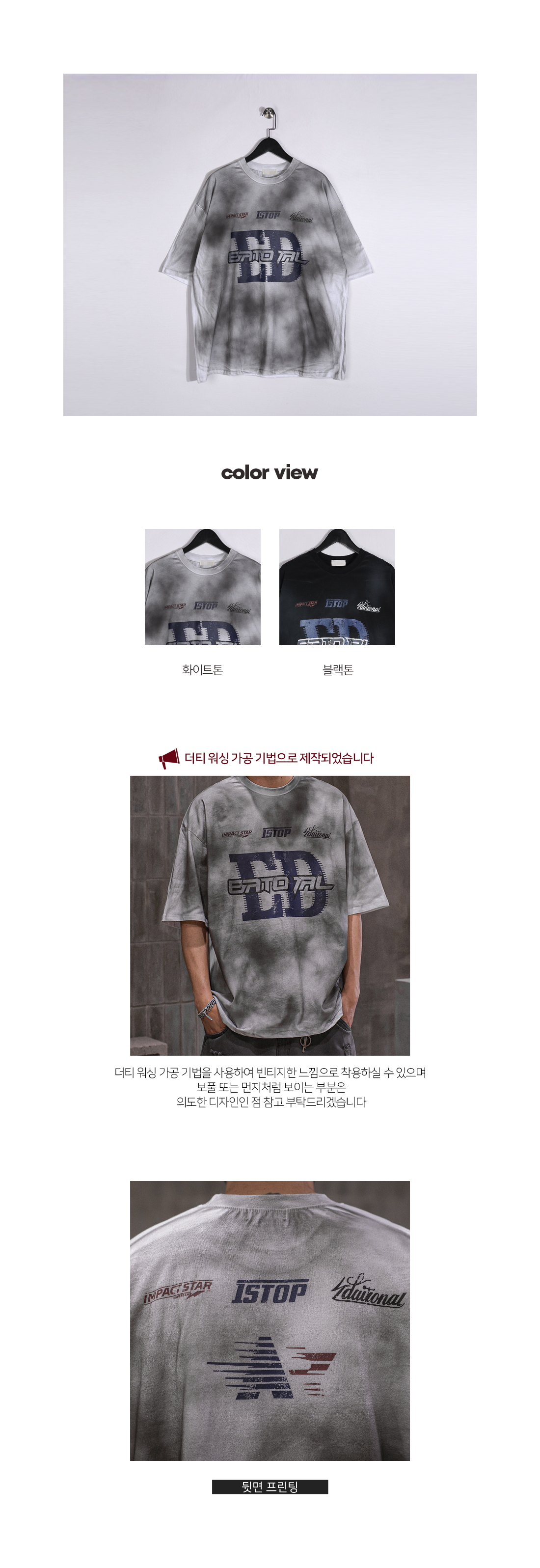 감각적인 분위기를 완성해 줄 반팔 티입니다. 트렌디한 더티 워싱이 스트릿한 무드를 완성해 주고, 전면과 후면의 레터링 및 로고 디자인이 매력적인 포인트를 선사합니다. 맨살에 닿아도 부담 없는 부드러운 면 100% 소재로 잦은 세탁에도 변형이 적어 오랫동안 관리하기 용이합니다. 여유 있는 아웃핏으로 단독 착용은 물론, 레이어드로 코디하셔도 멋스러운 스타일링이 가능합니다. COLOR 화이트톤,블랙톤 SIZE FREE 모델착용 [KIHOON]색상 : 화이트톤 / 사이즈 : FREE ![]() ![]() ![]() ![]() ![]() ![]() ![]() ![]()