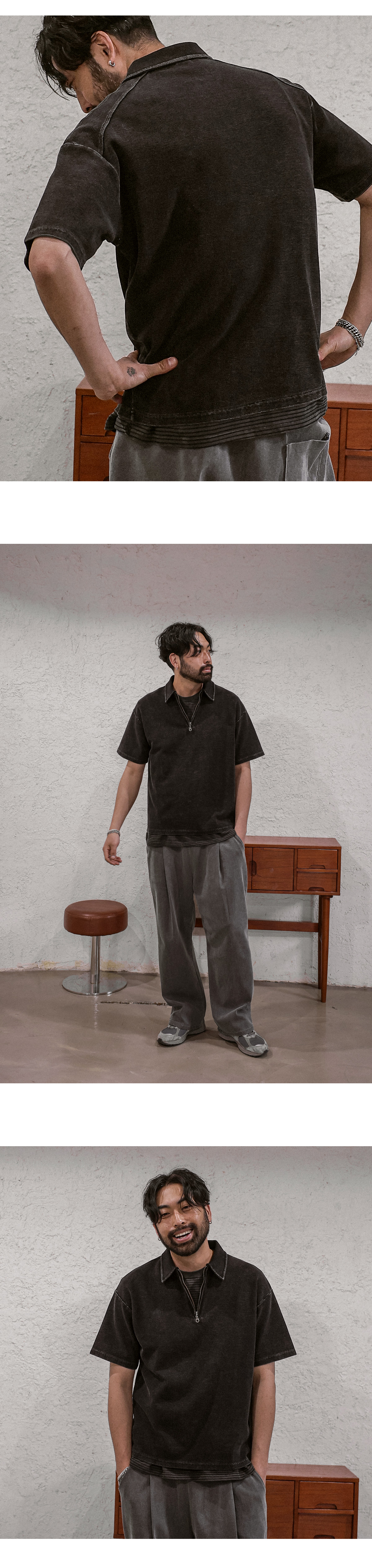 모던한 디자인으로 즐기기 좋은 반팔 티입니다. 코튼 100 소재로 부드러워 맨 살에 닿아도 부담 없이 즐기실 수 있고, 얇고 찰랑이는 텍스처로 무더운 여름철에도 시원하고 쾌적한 착용감을 자랑합니다. 소매, 밑단 데끼 처리하여 트렌디한 스타일을 연출해주며 단독으로 착용해도 레이어드 된 듯한 코디가 완성되는 아이템입니다. 데일리부터 캐주얼, 꾸안꾸 등 폭 넓게 활용 가능한 티셔츠이니 놓치지 마시고 소장해보시길 바랍니다. COLOR 차콜,베이지,와인,카키,그레이 SIZE FREE 모델착용 [KIHOON]색상 : 차콜 / 사이즈 : FREE ![]() ![]() ![]() ![]() ![]() ![]() ![]() ![]() ![]()