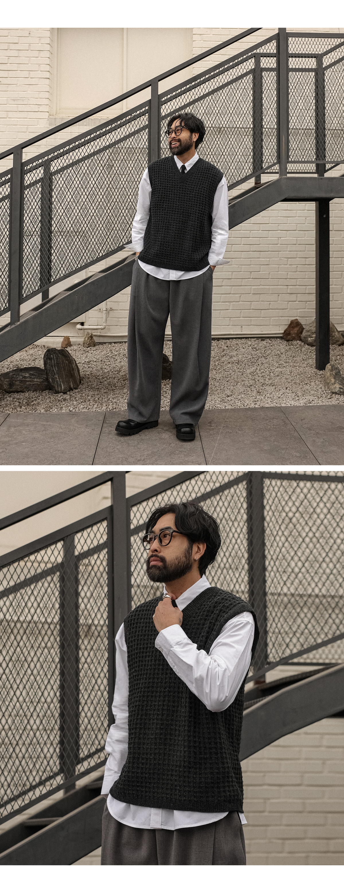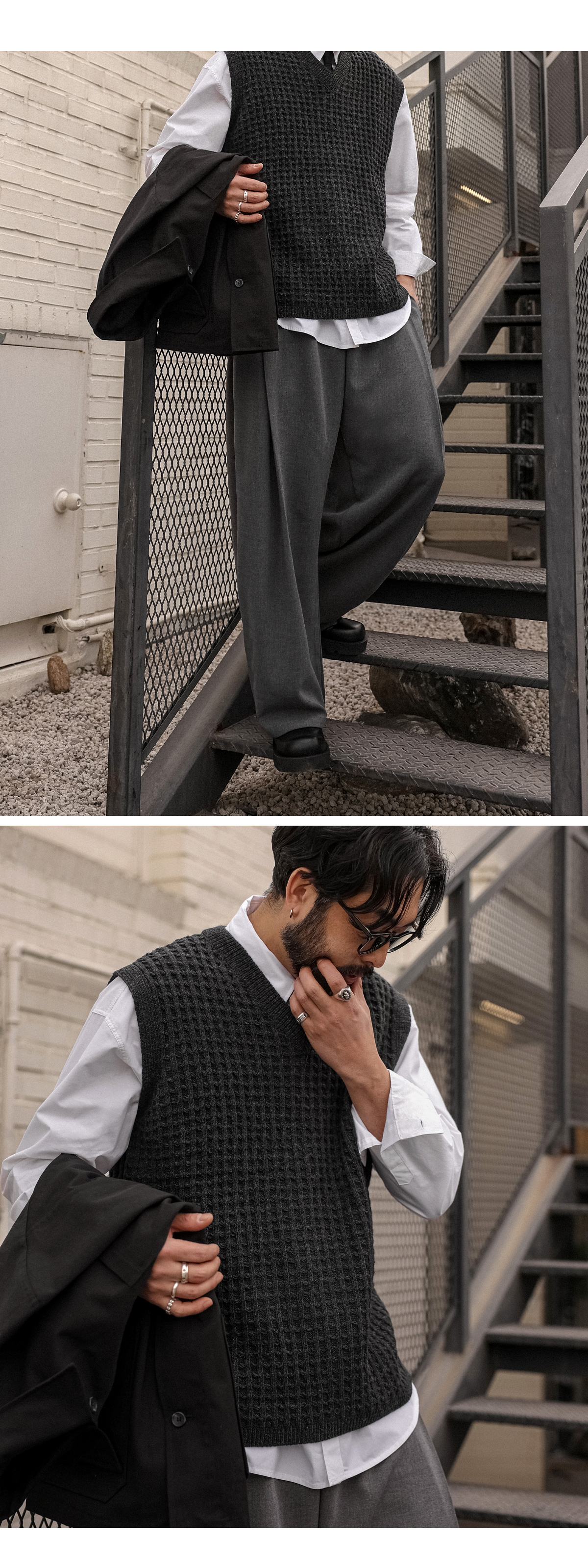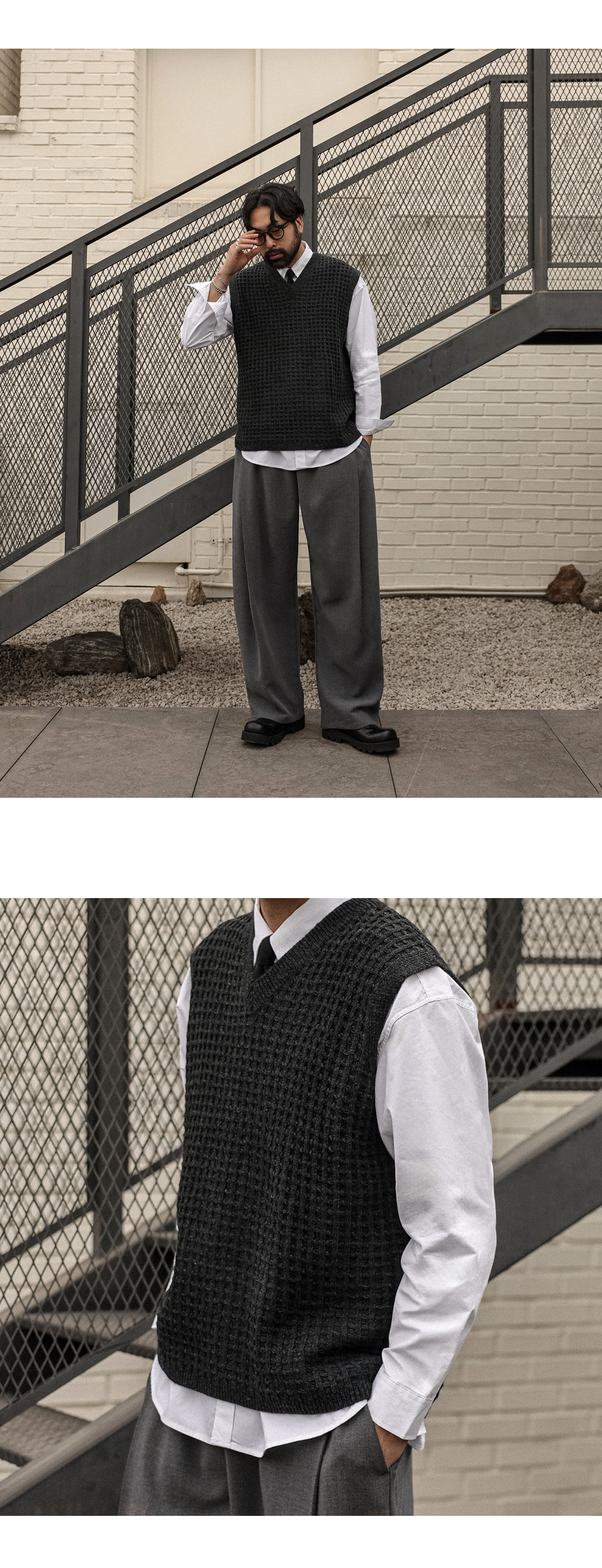 오까네에서 선보이는 조끼입니다. 지금부터 초봄까지 착용하기 좋은 두께감은 물론 울 50%함유로 보온성이 좋고 베이직한 디자인에 와플 패턴으로 셔츠, 니트 등 위에 가볍게 착용하거나 슬랙스, 면팬츠 등 매치해 남친룩, 꾸안꾸룩 등 코디 연출하기 좋고 핏 또한 오버핏이지만 니트 특성상 늘어남이 있어 좀 더 여유로운 피팅감을 느끼실 수 있습니다. SIZE L-XL,2XL,3XL,4XL-5XL 모델착용 [KIHOON]색상 : 차콜,브라운 / 사이즈 : 2XL,L-XL ![]() ![]()