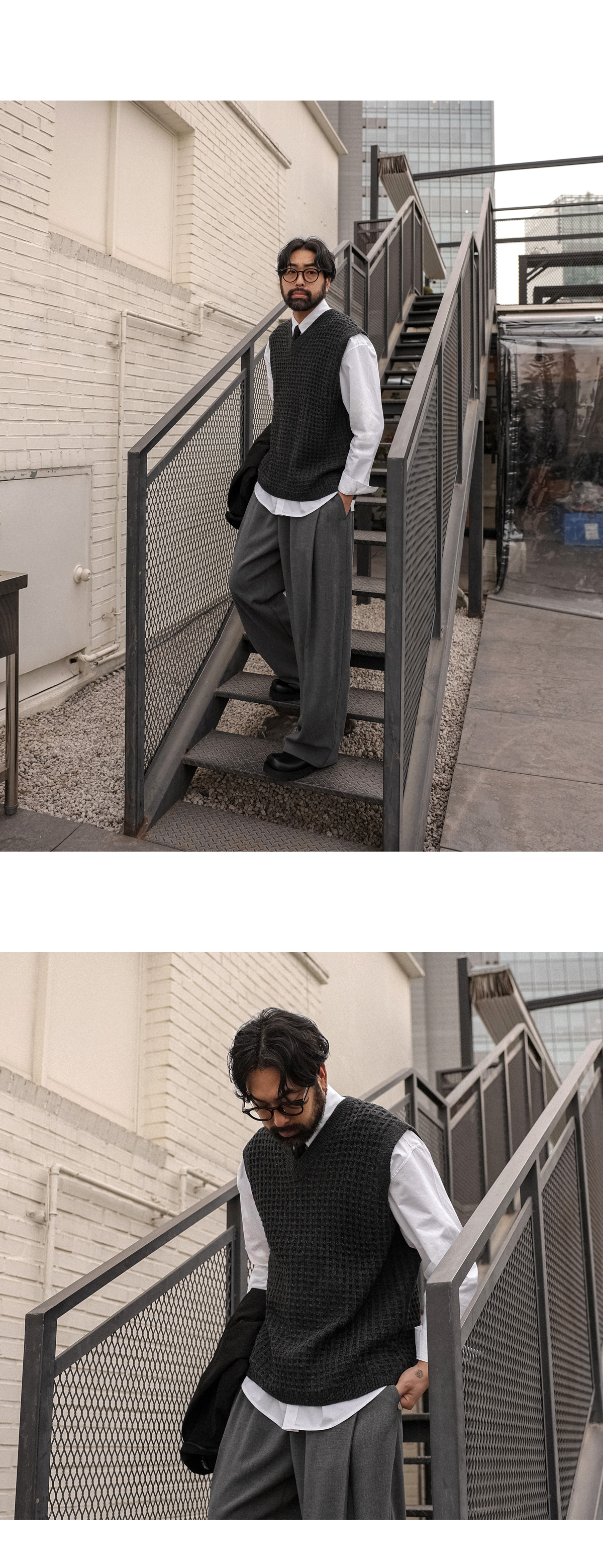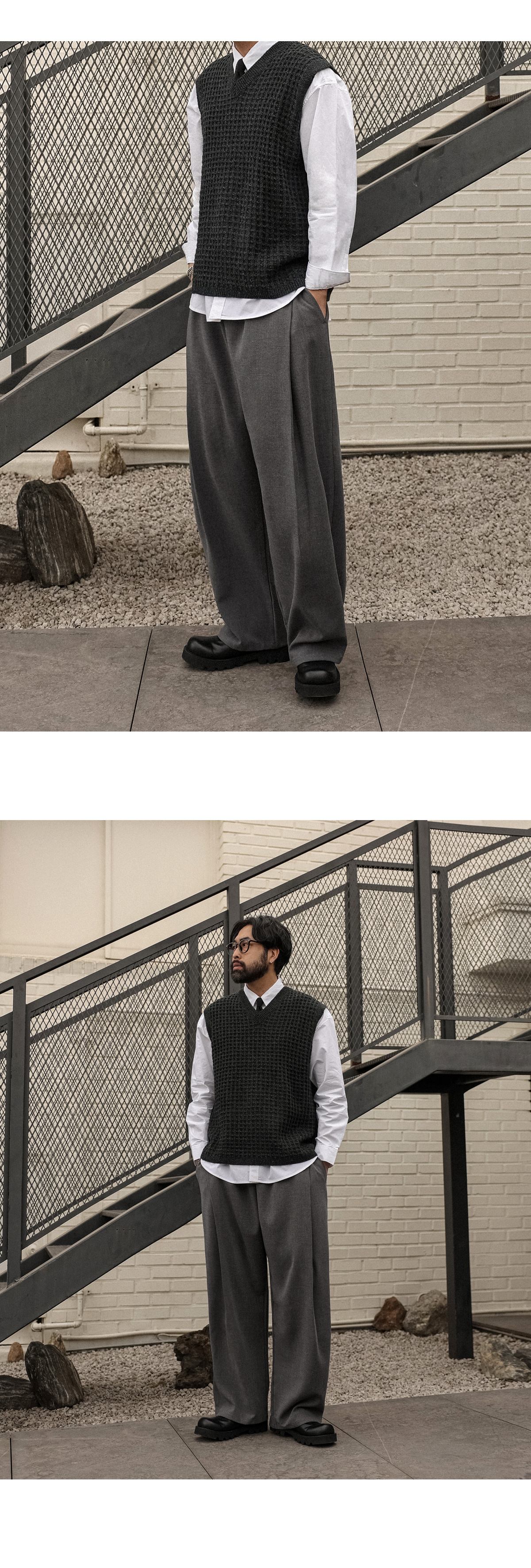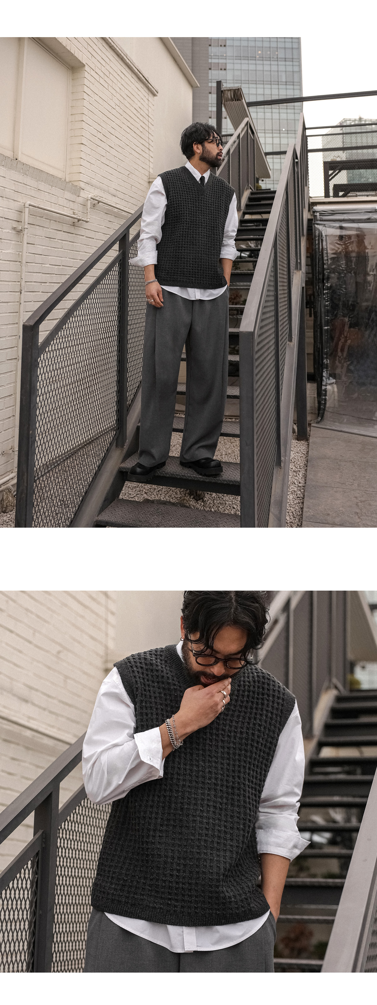 오까네에서 선보이는 조끼입니다. 지금부터 초봄까지 착용하기 좋은 두께감은 물론 울 50%함유로 보온성이 좋고 베이직한 디자인에 와플 패턴으로 셔츠, 니트 등 위에 가볍게 착용하거나 슬랙스, 면팬츠 등 매치해 남친룩, 꾸안꾸룩 등 코디 연출하기 좋고 핏 또한 오버핏이지만 니트 특성상 늘어남이 있어 좀 더 여유로운 피팅감을 느끼실 수 있습니다. SIZE L-XL,2XL,3XL,4XL-5XL 모델착용 [KIHOON]색상 : 차콜,브라운 / 사이즈 : 2XL,L-XL ![]() ![]()